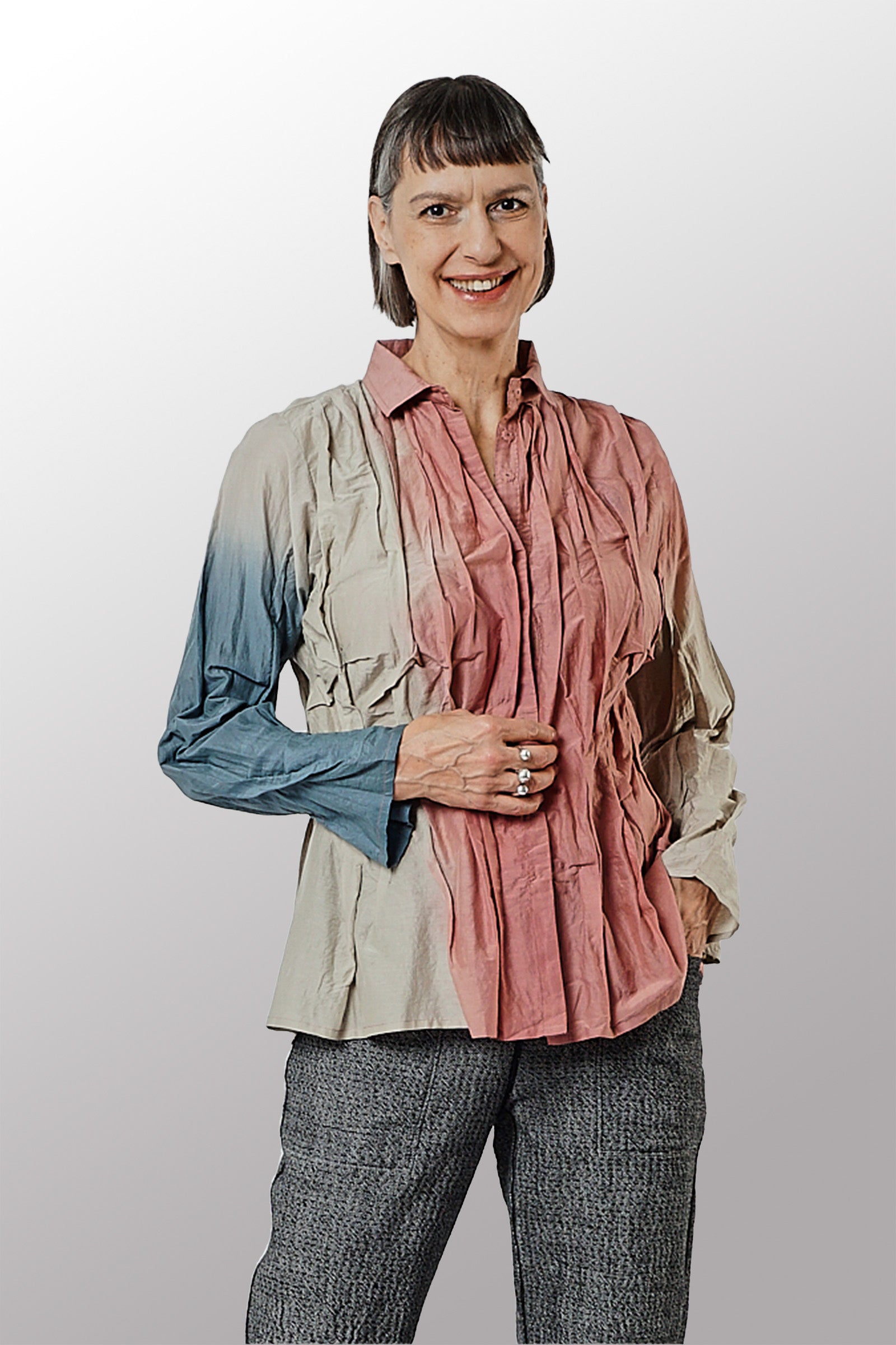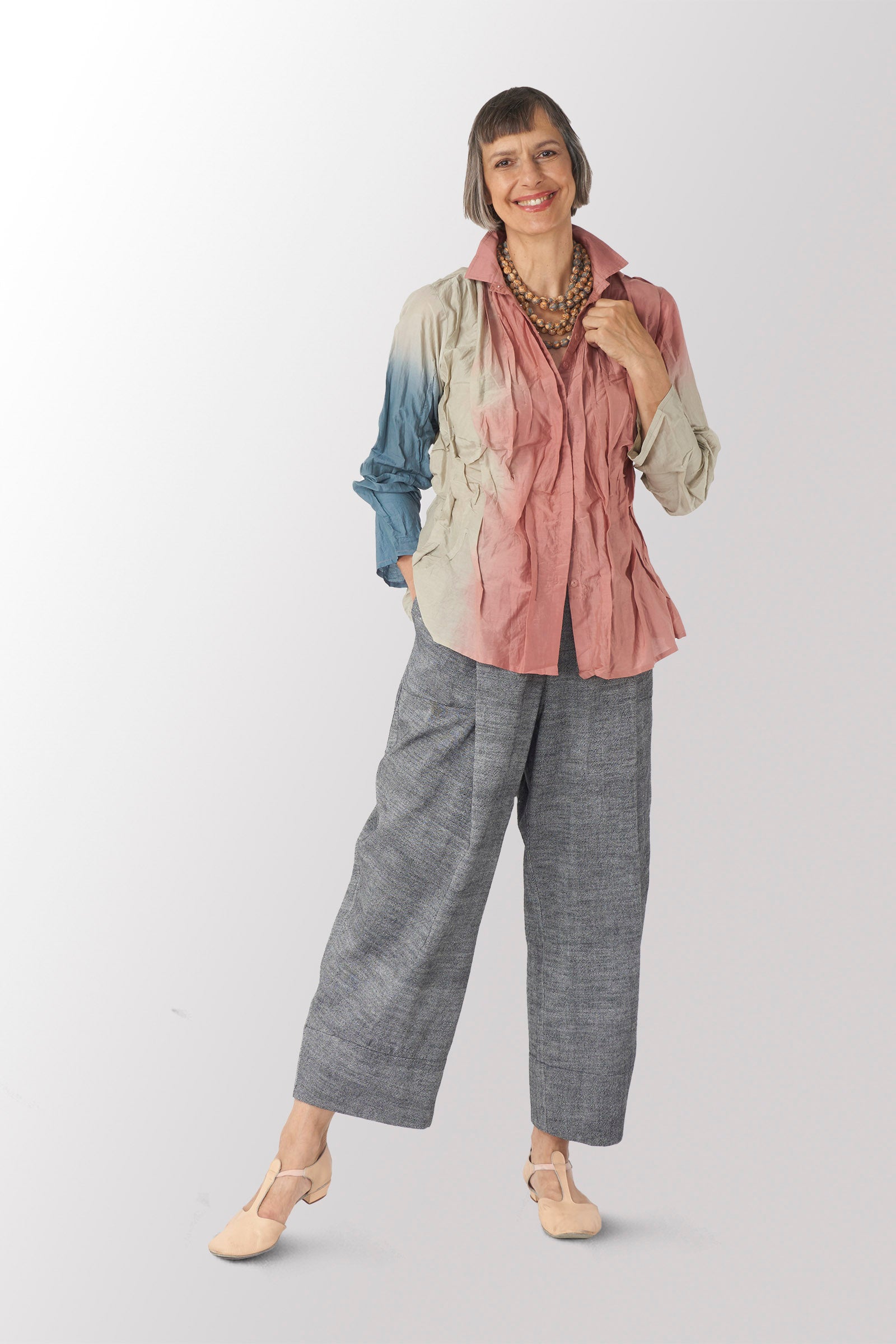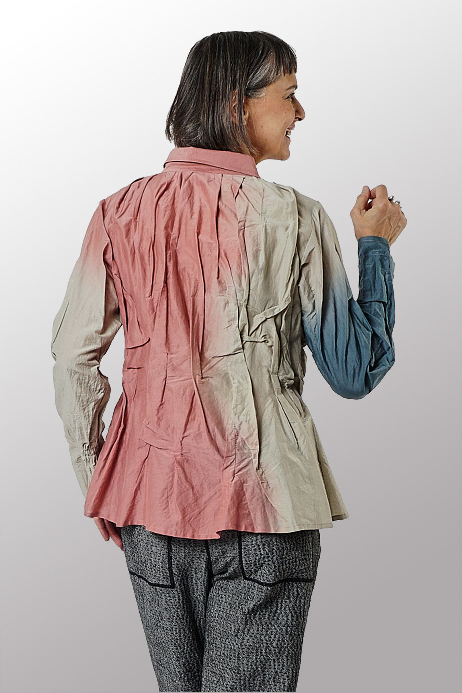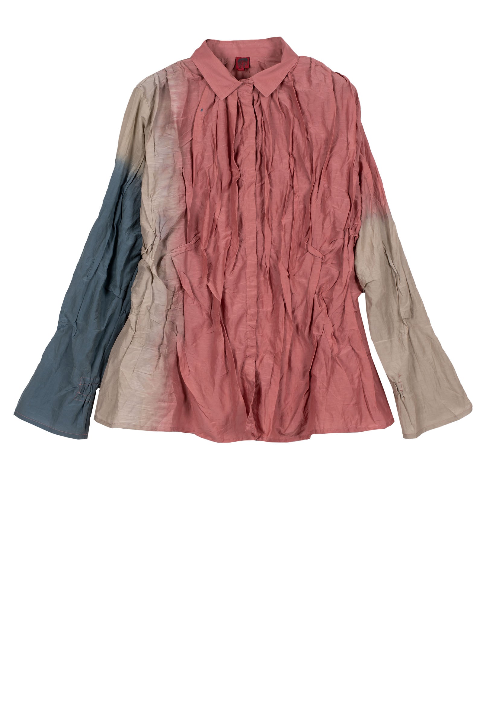DYED COTTON SILK VOILE WAVY TUCKED SHIRT - dc1541-opi -