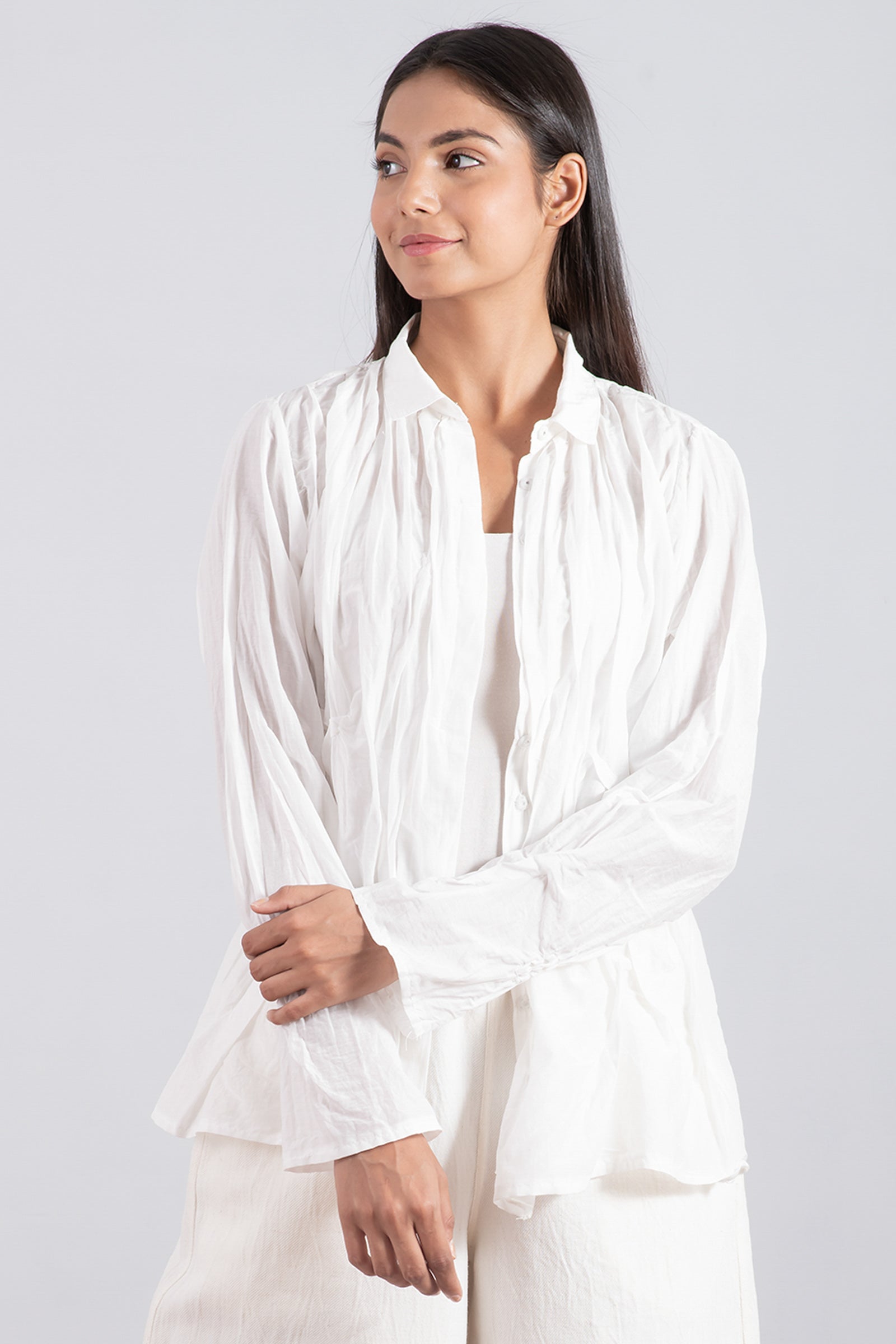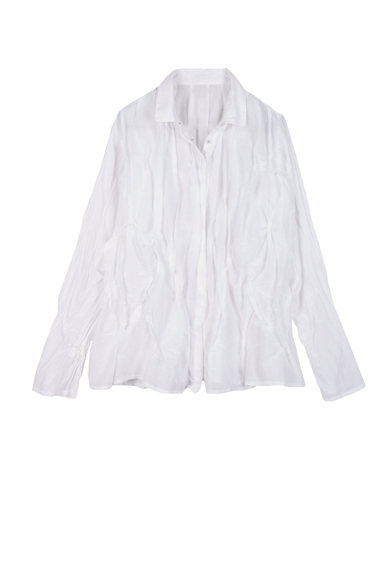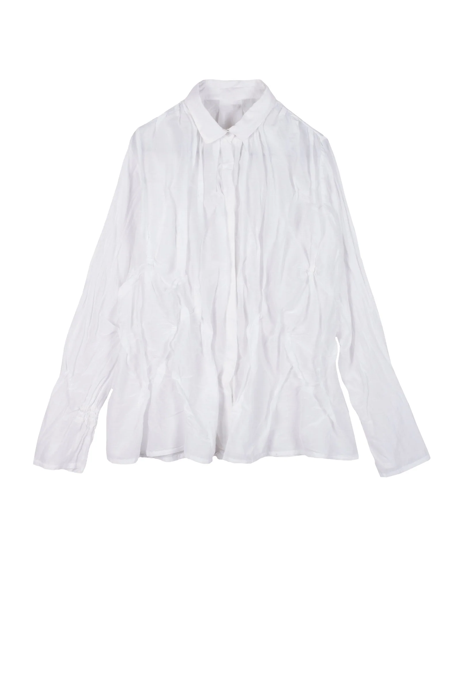 DYED COTTON SILK VOILE WAVY TUCKED SHIRT - dc1541-wht -