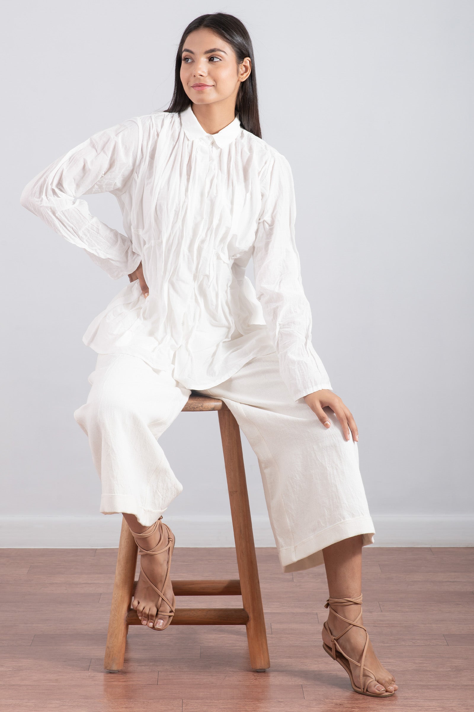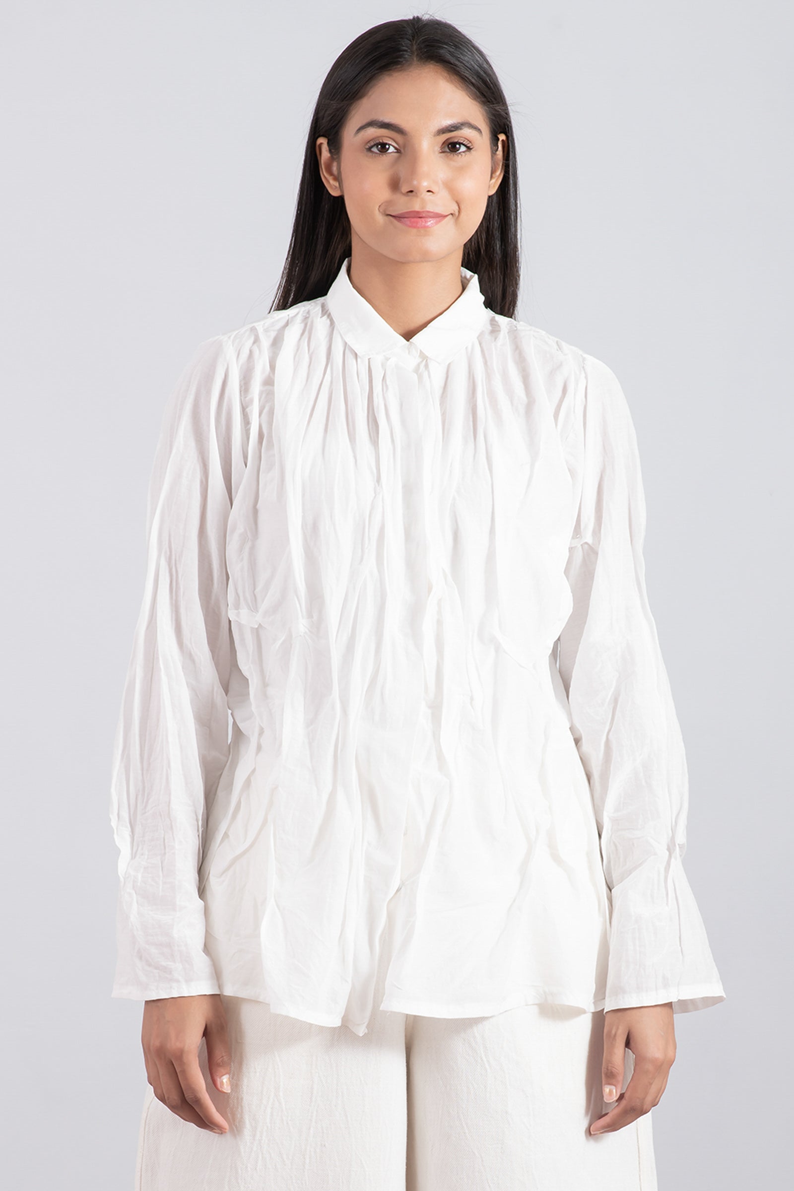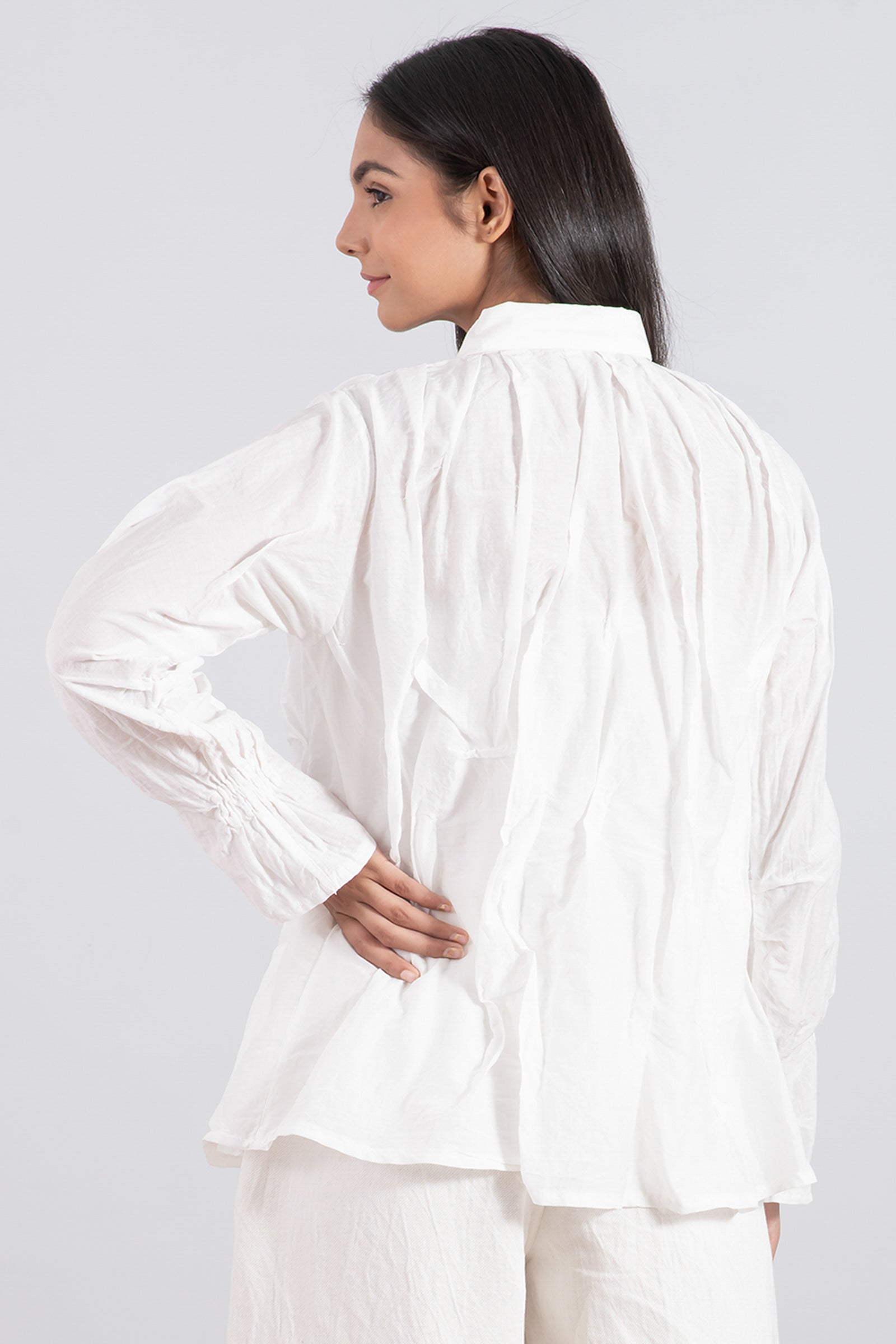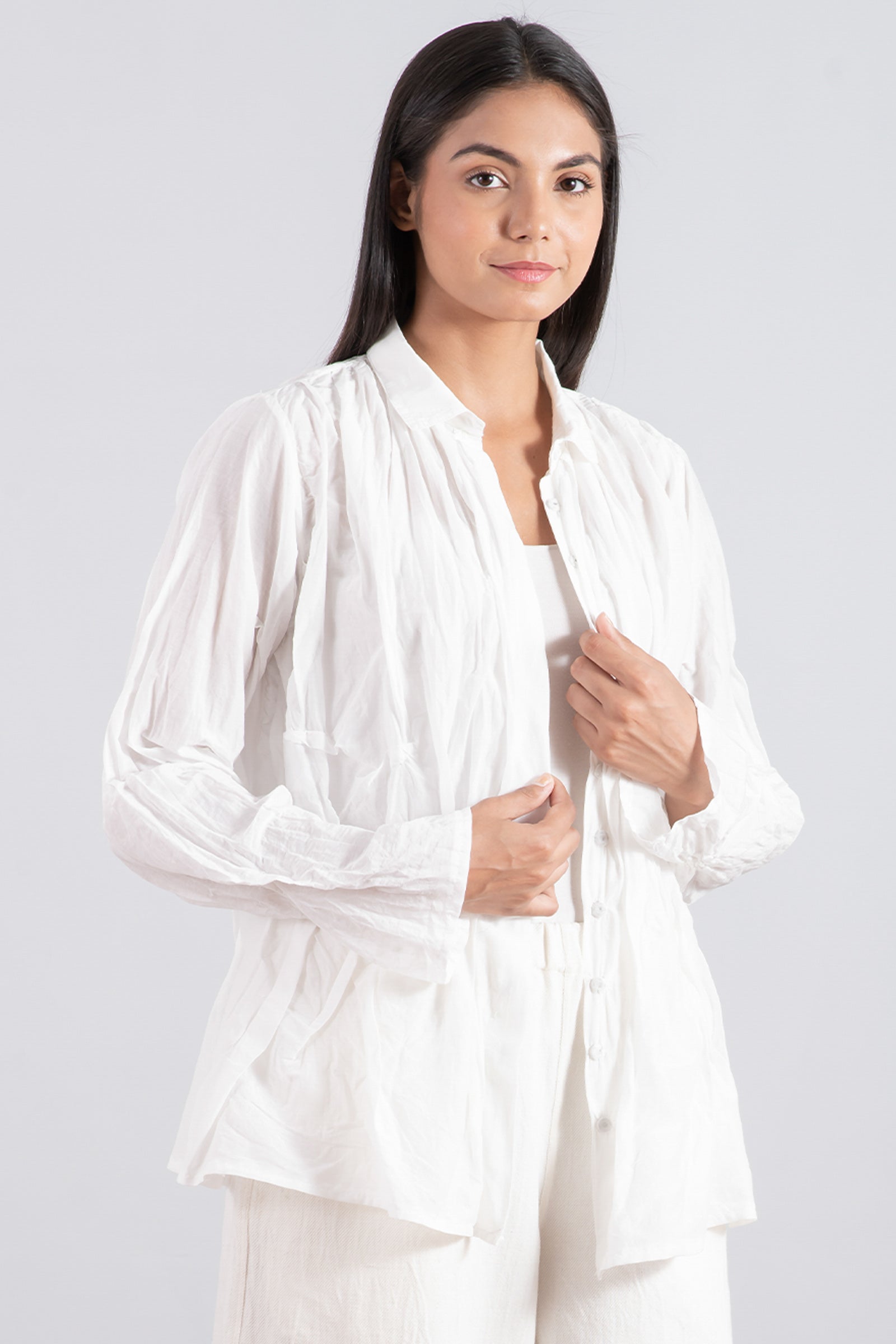 DYED COTTON SILK VOILE WAVY TUCKED SHIRT - dc1541-wht -