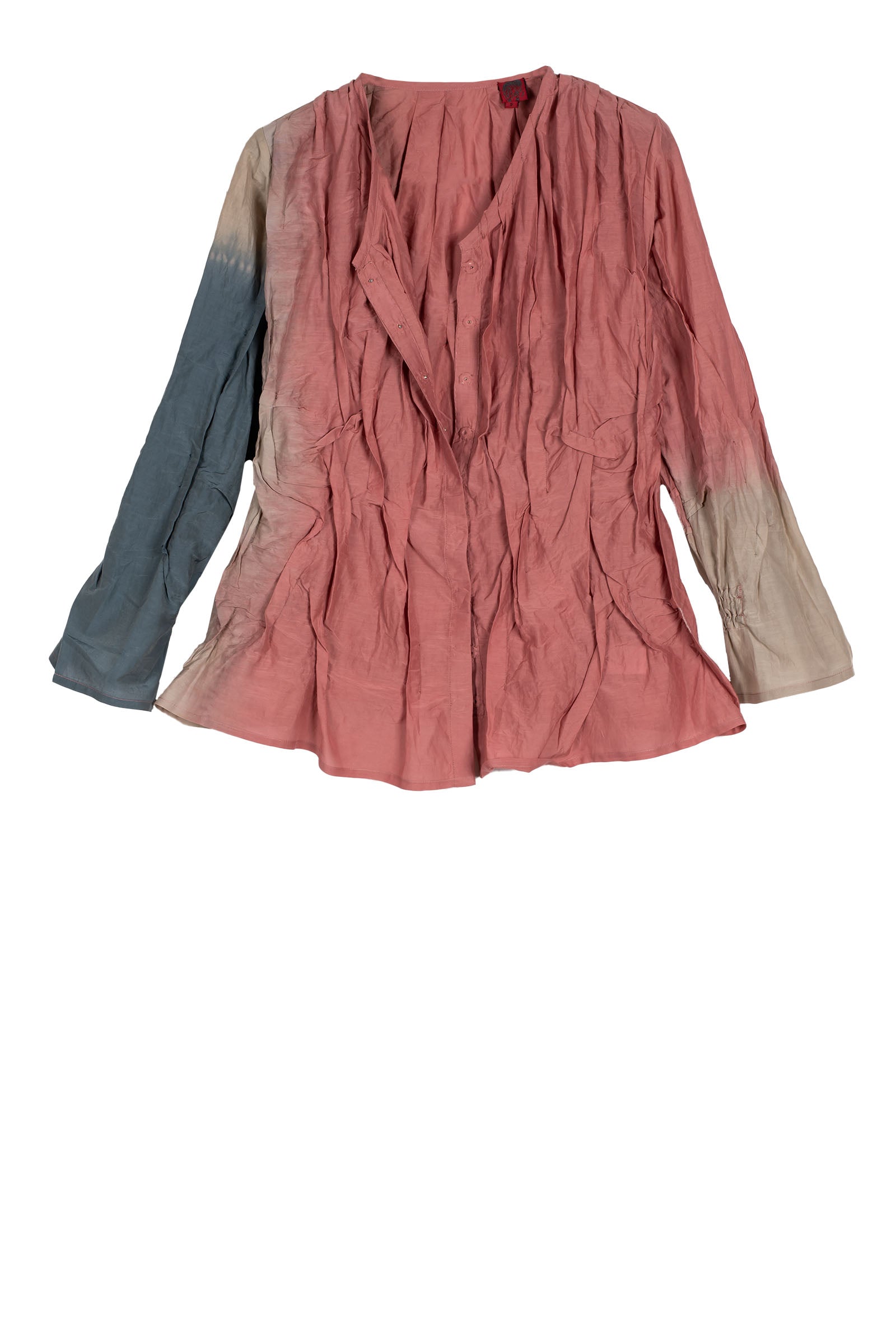 DYED COTTON SILK VOILE WAVY V-NECK TUCKED BLOUSE - dc1542-opi -