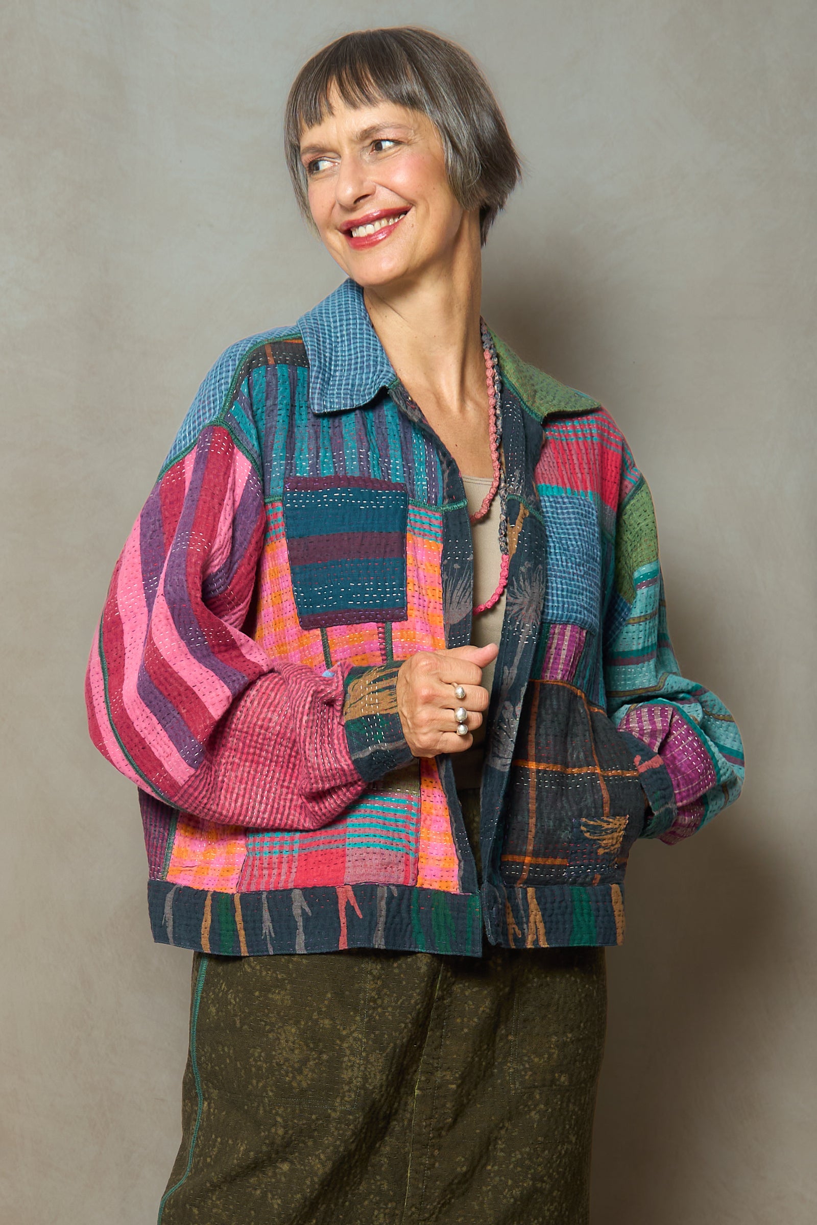 4 Layer Vintage Saris with Hand Stitches on Entire Garment - Reversible