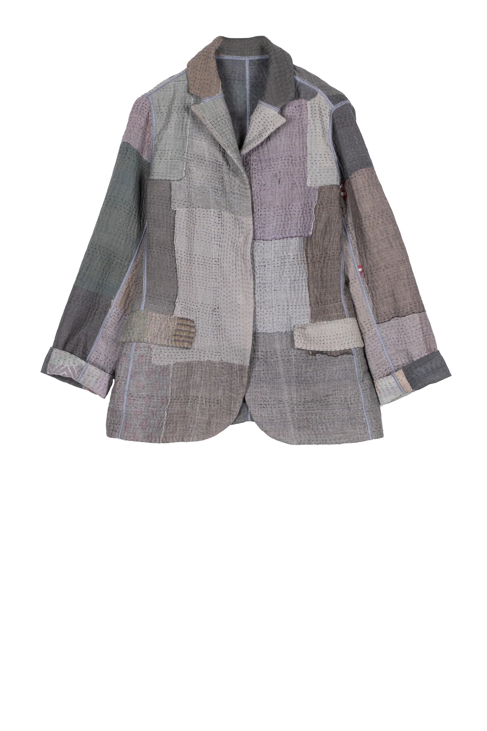 FRAYED PATCH KANTHA BASIC JACKET - fi4052-gry -