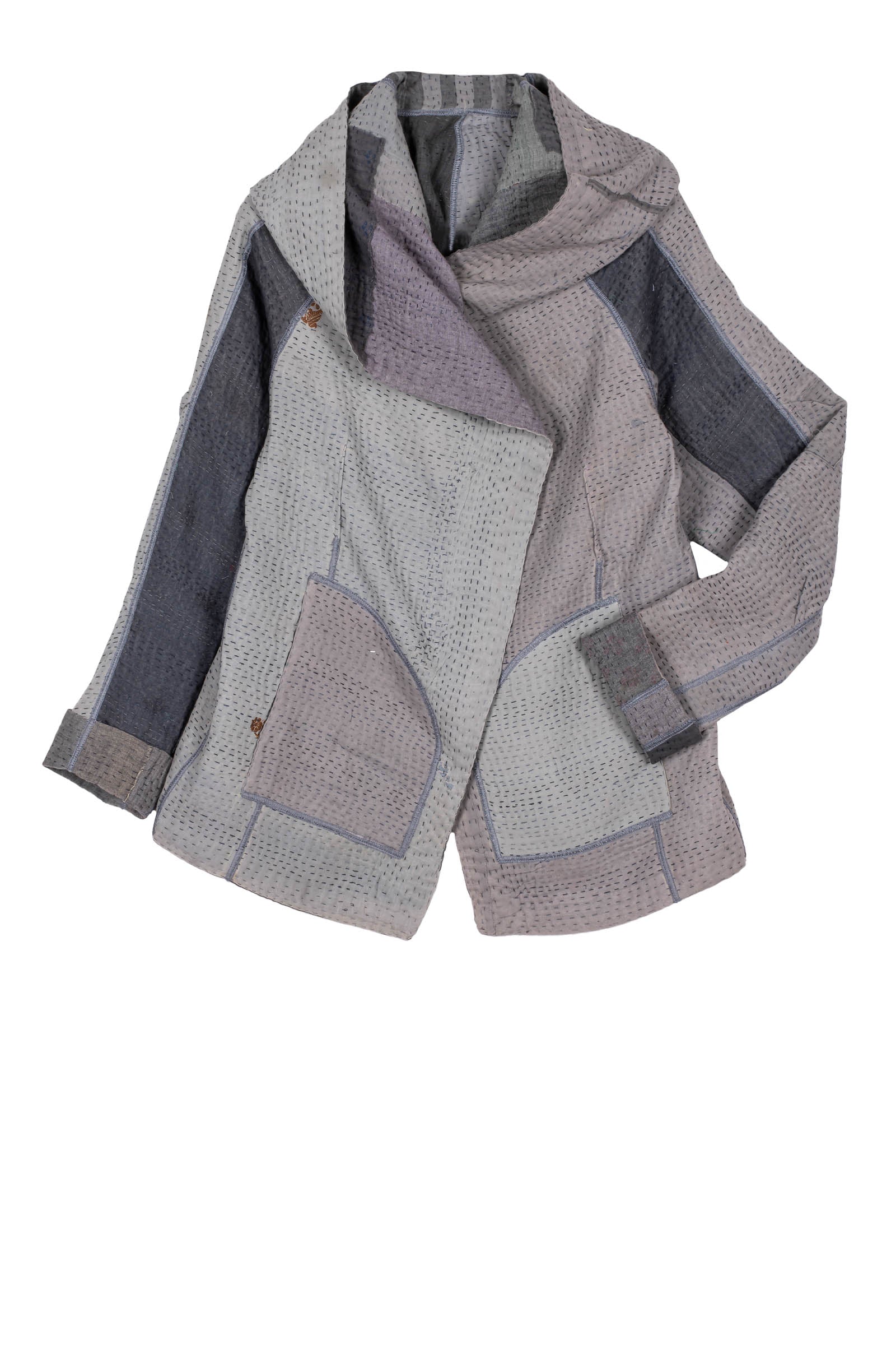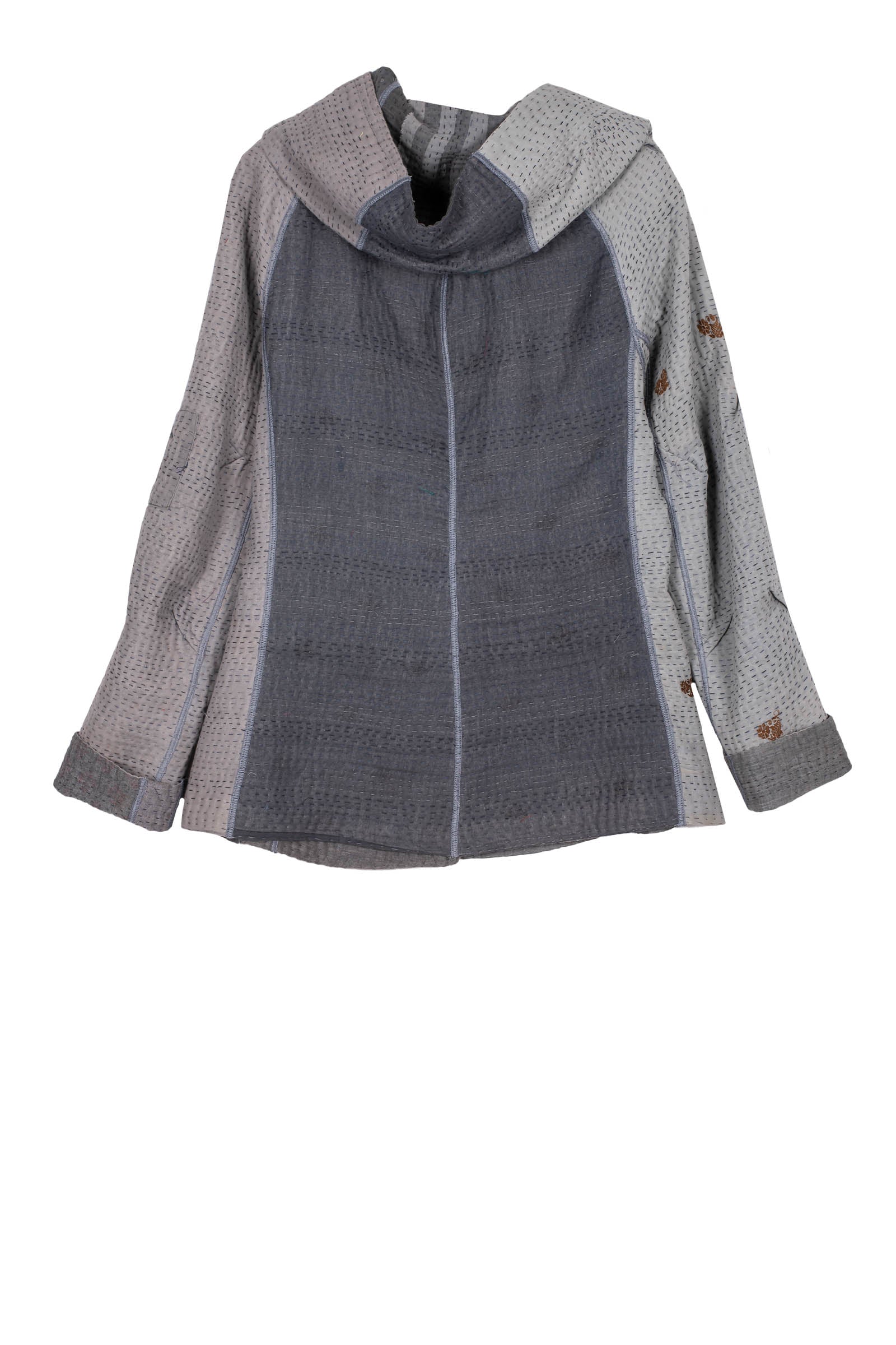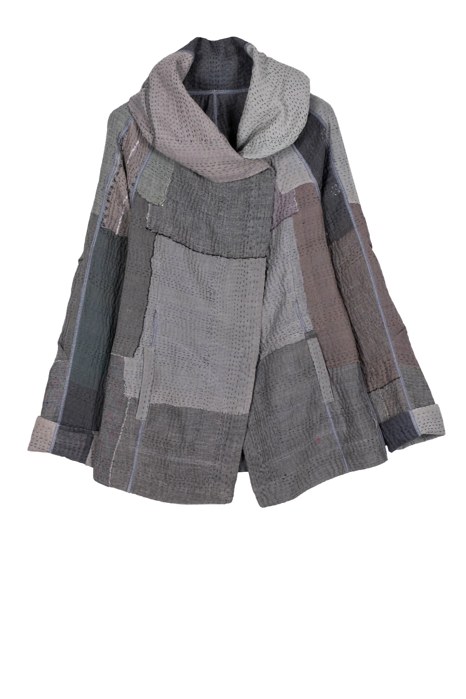 FRAYED PATCH KANTHA HOODIE JKT - fi4036-gry -