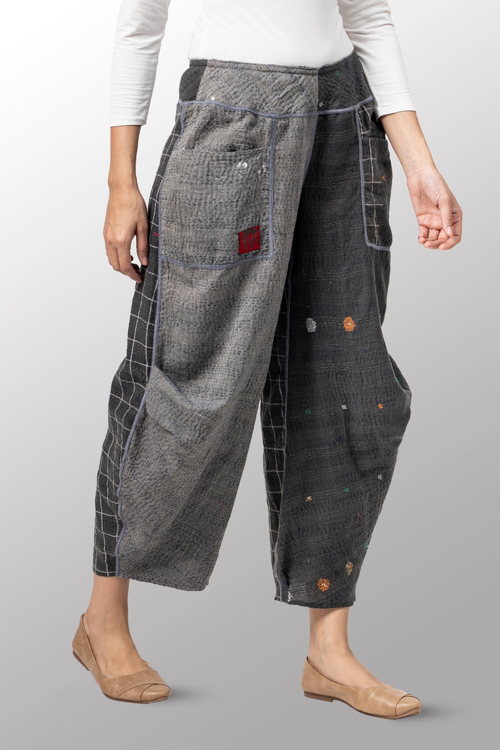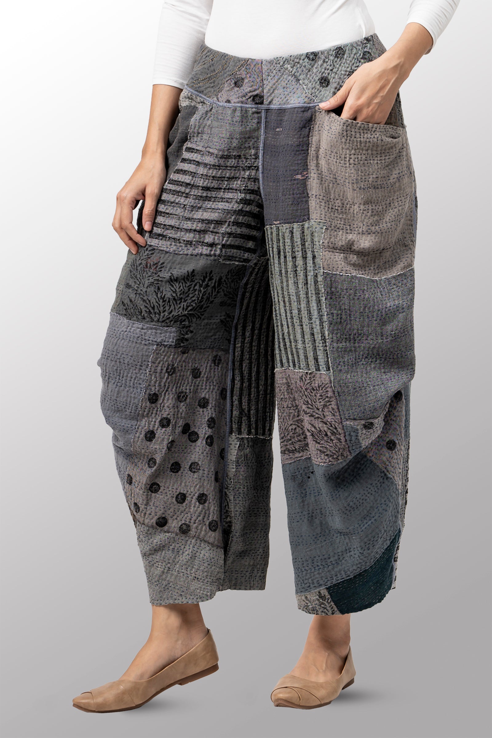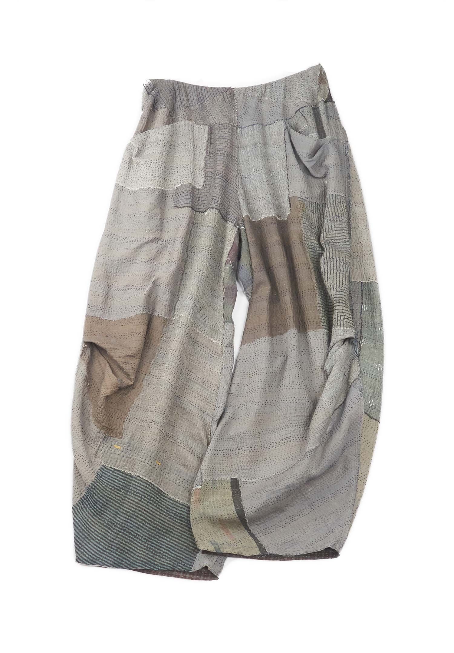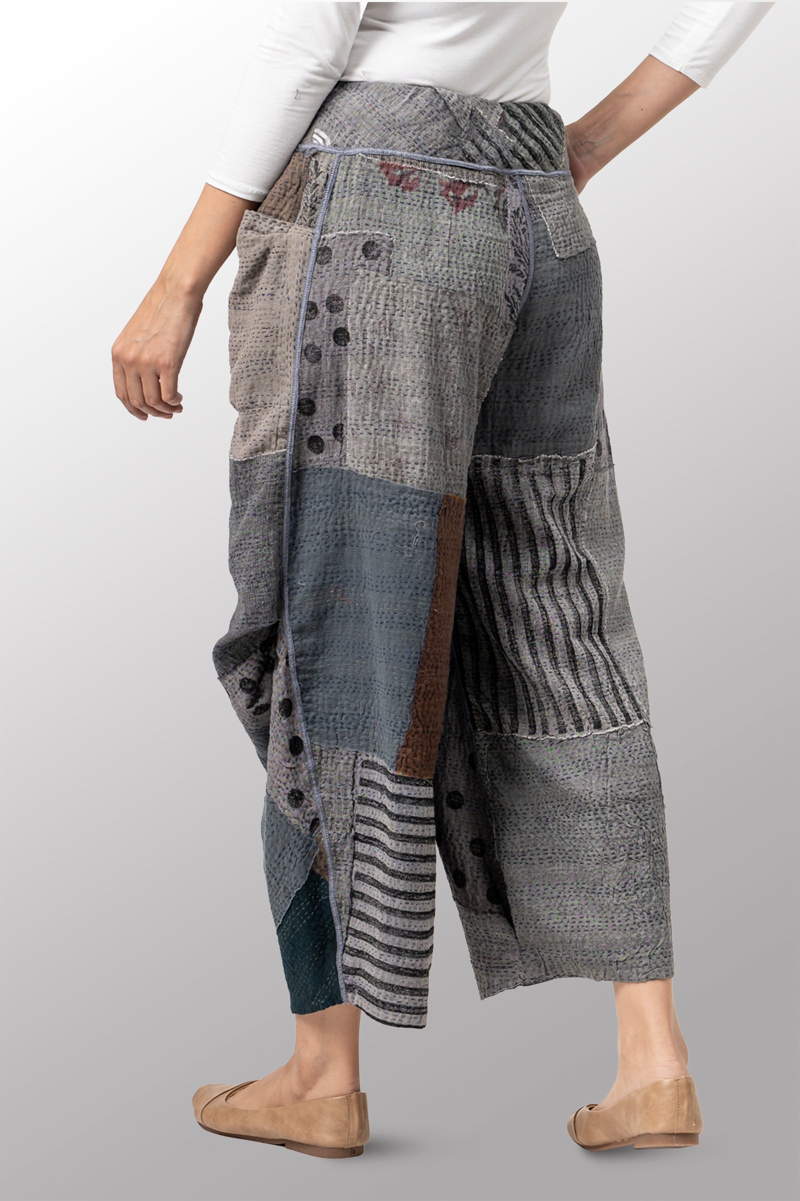 FRAYED PATCH KANTHA KNEE TUCKED PANTS - fi2625-gry -