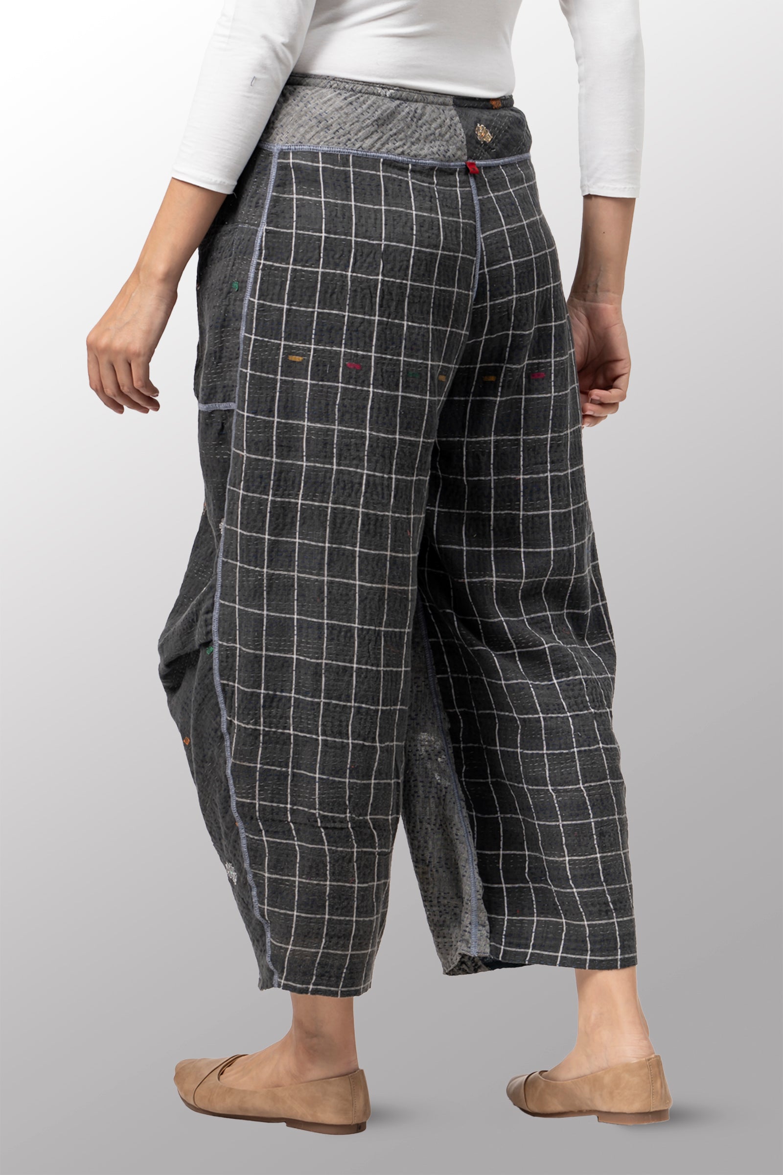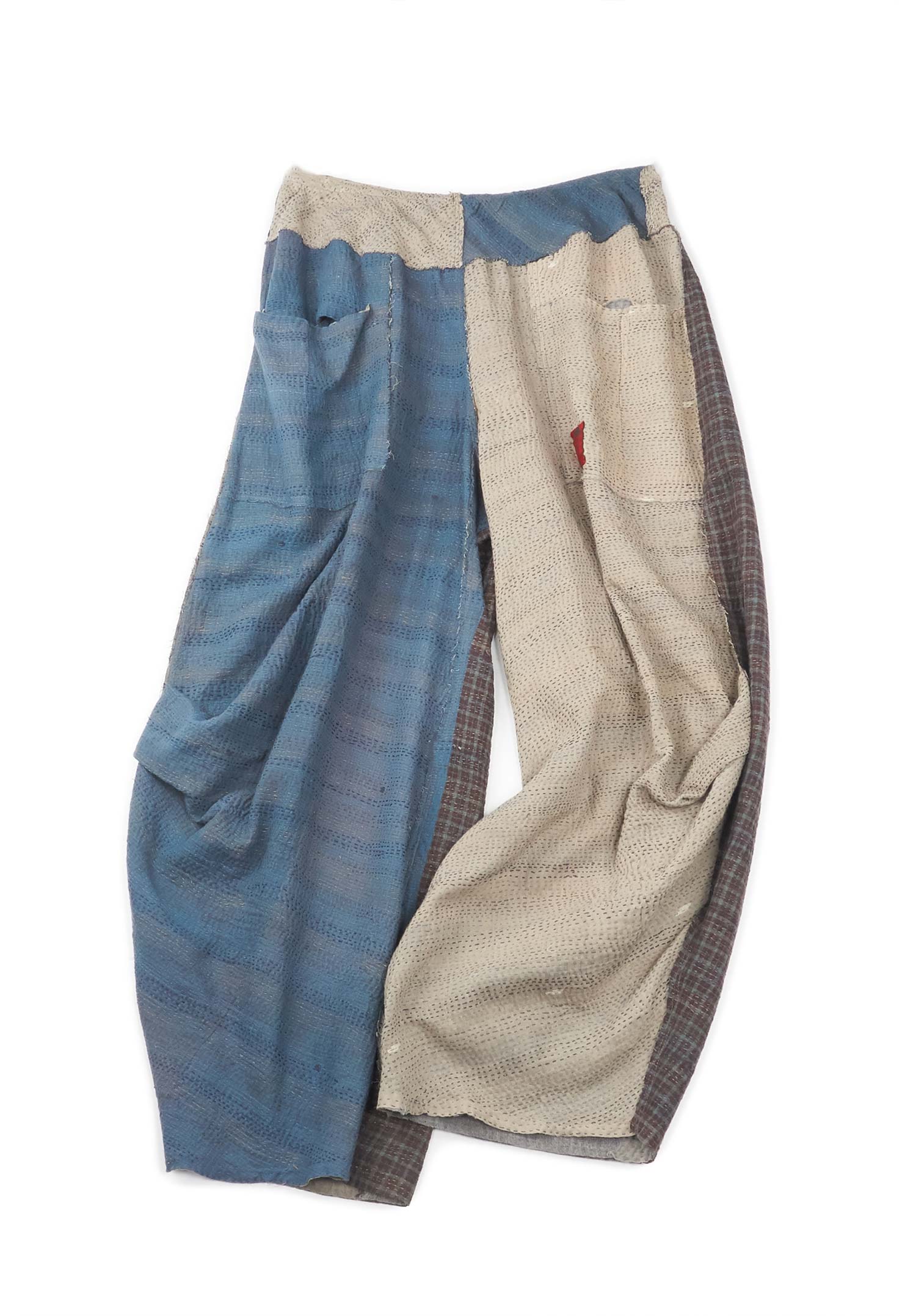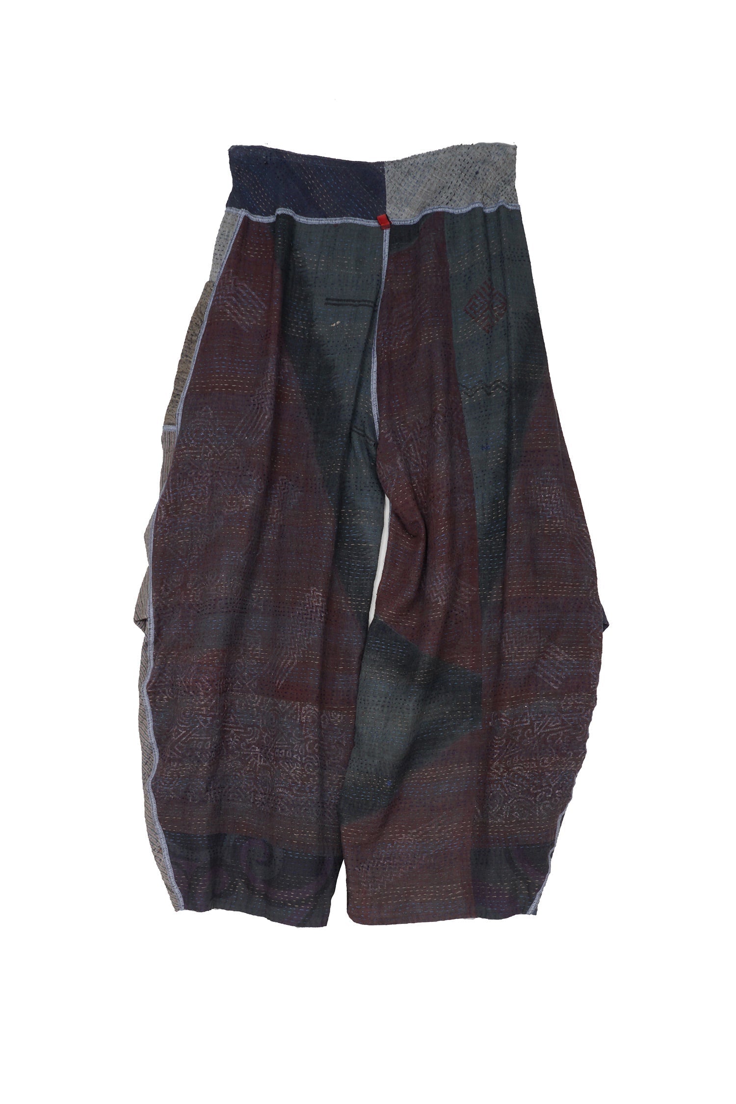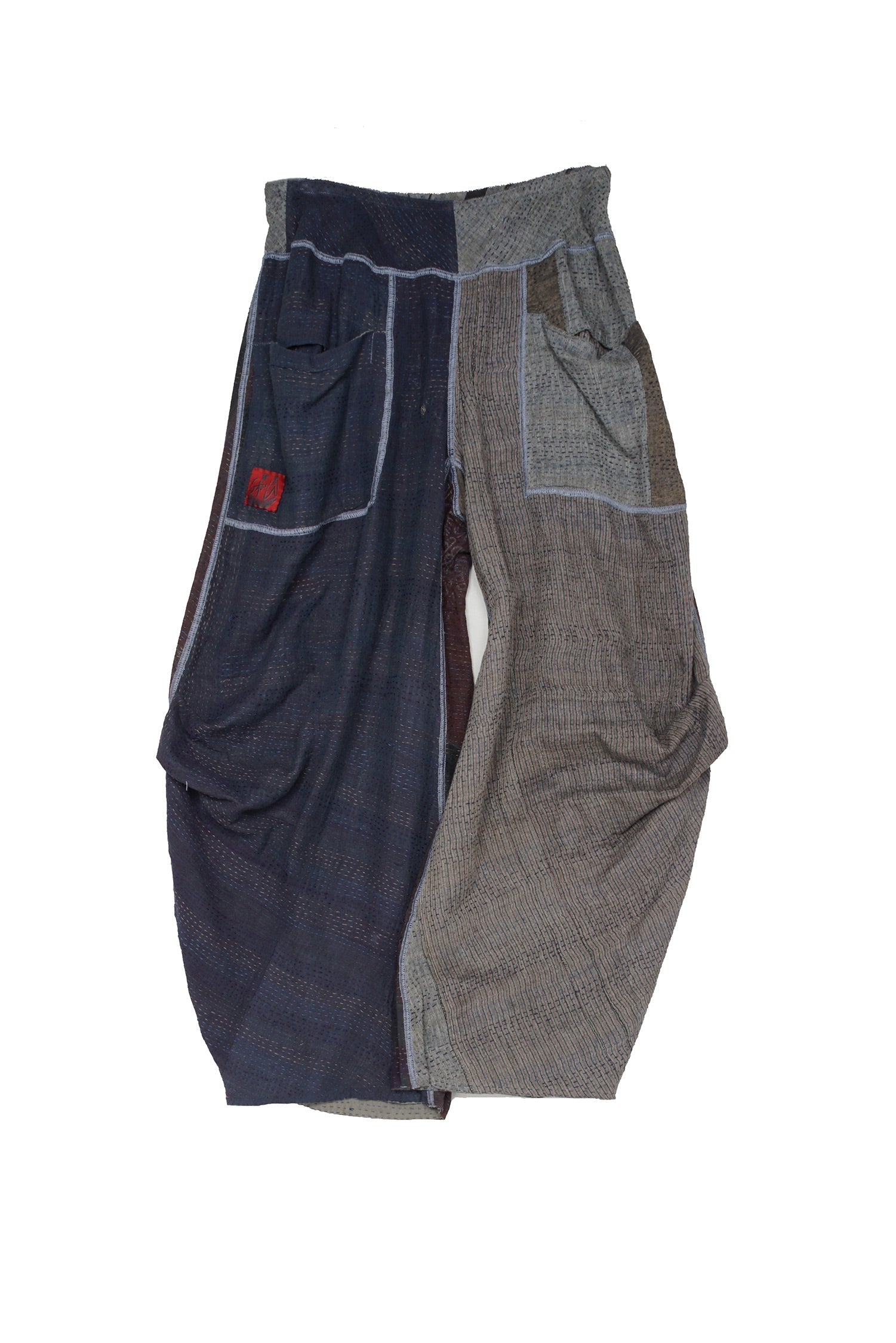FRAYED PATCH KANTHA KNEE TUCKED PANTS - fi2625-gry -