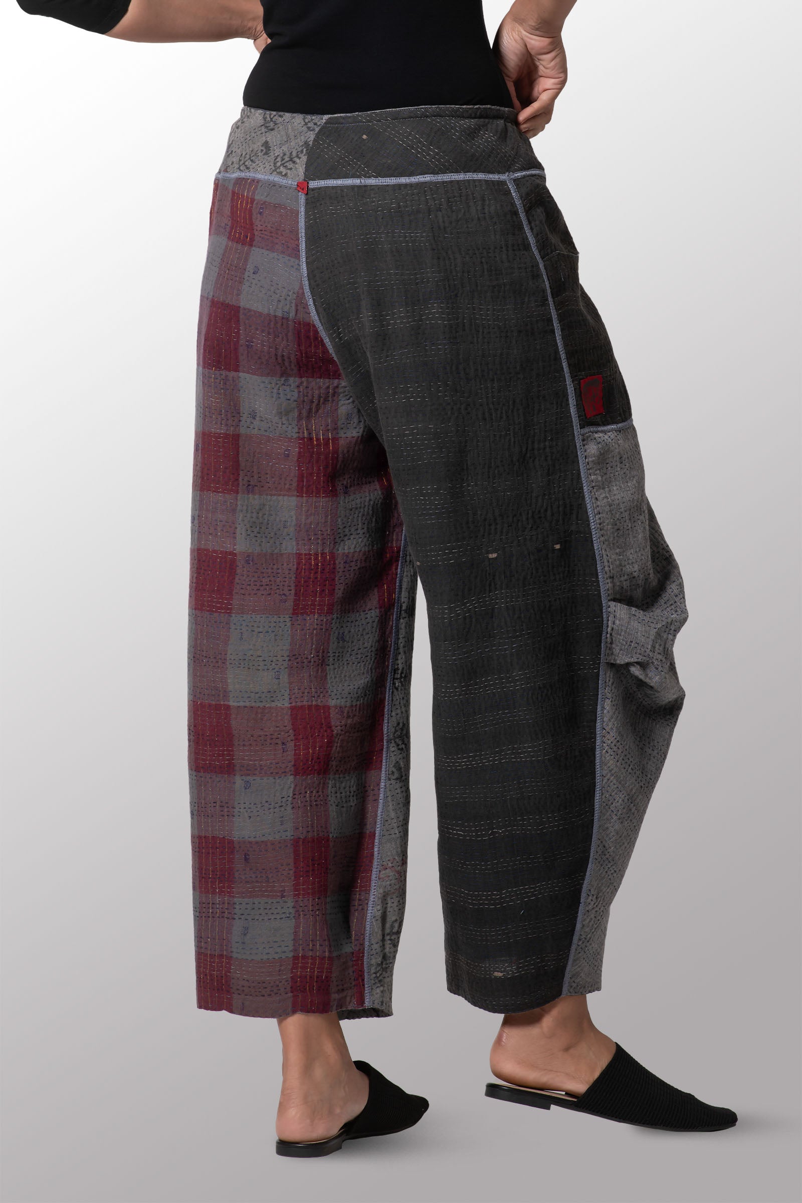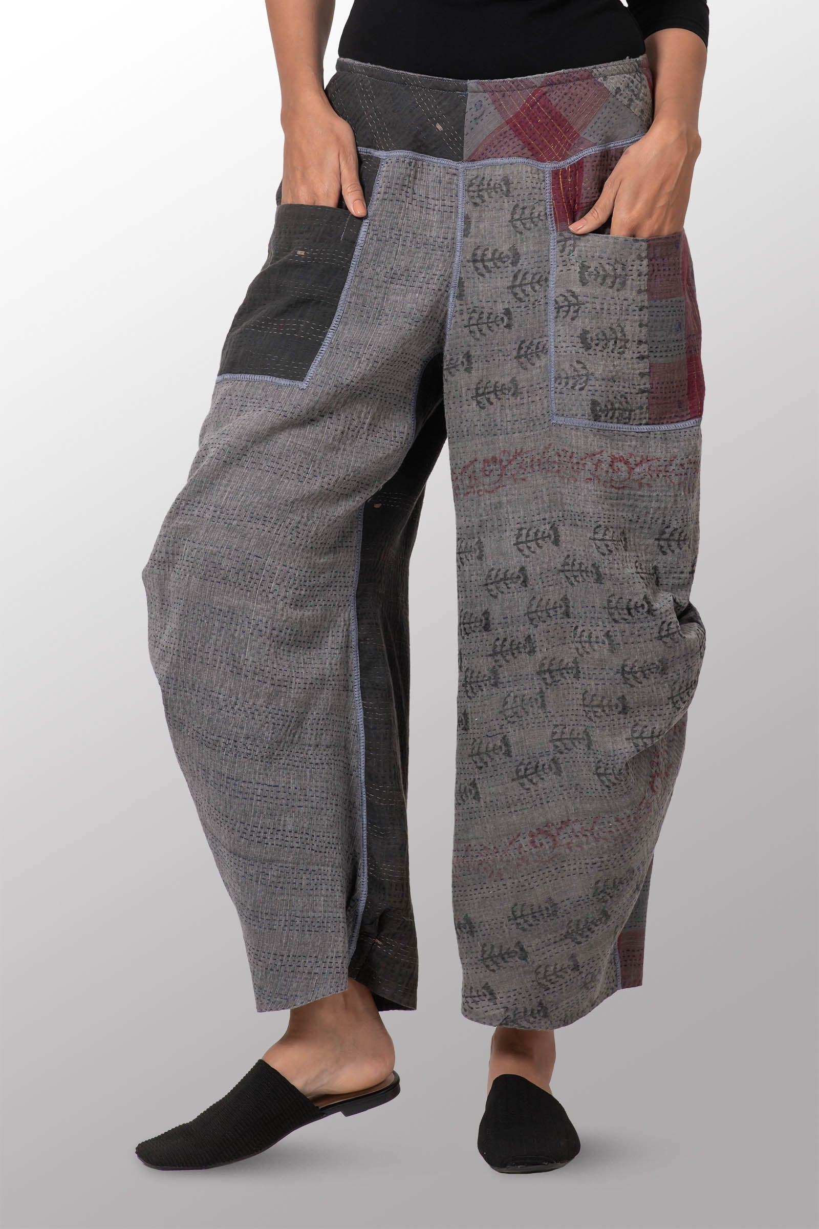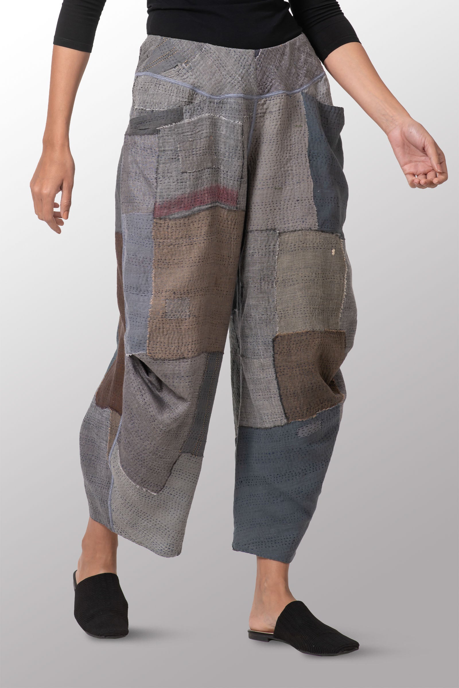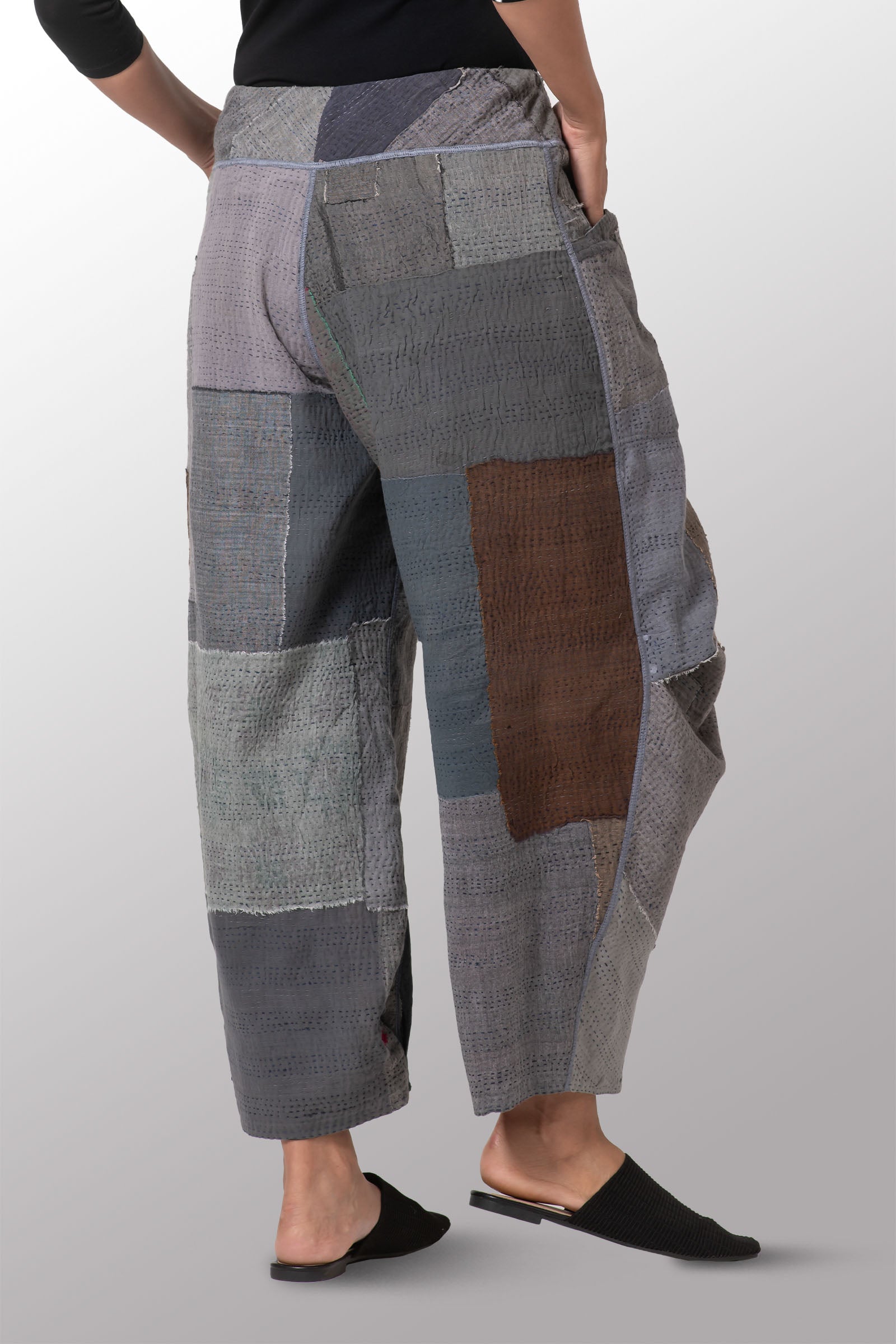 FRAYED PATCH KANTHA KNEE TUCKED PANTS - fi2625-ntl -