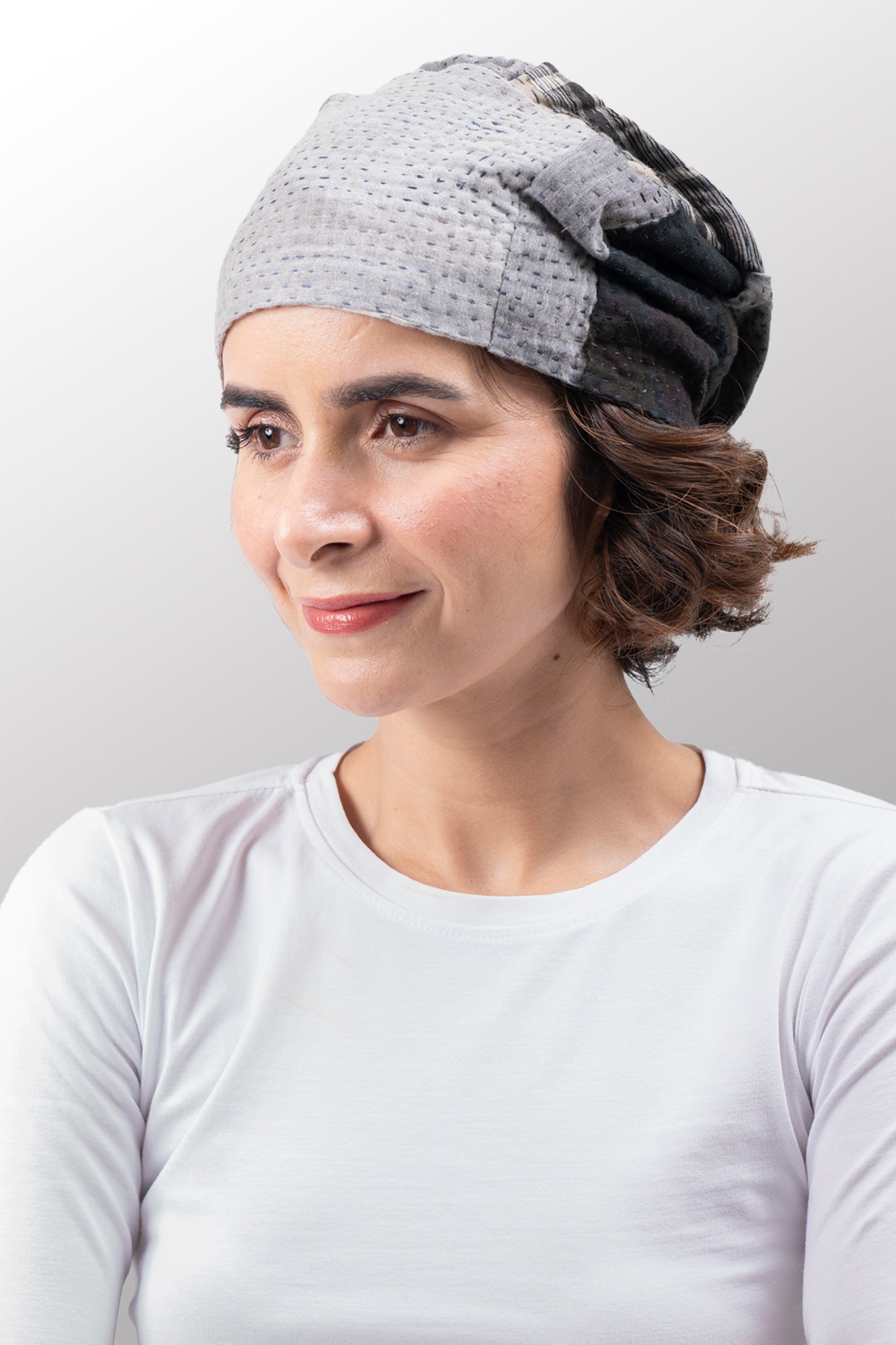 FRAYED PATCH KANTHA PATCHWORK HAT - fi4880-glk -