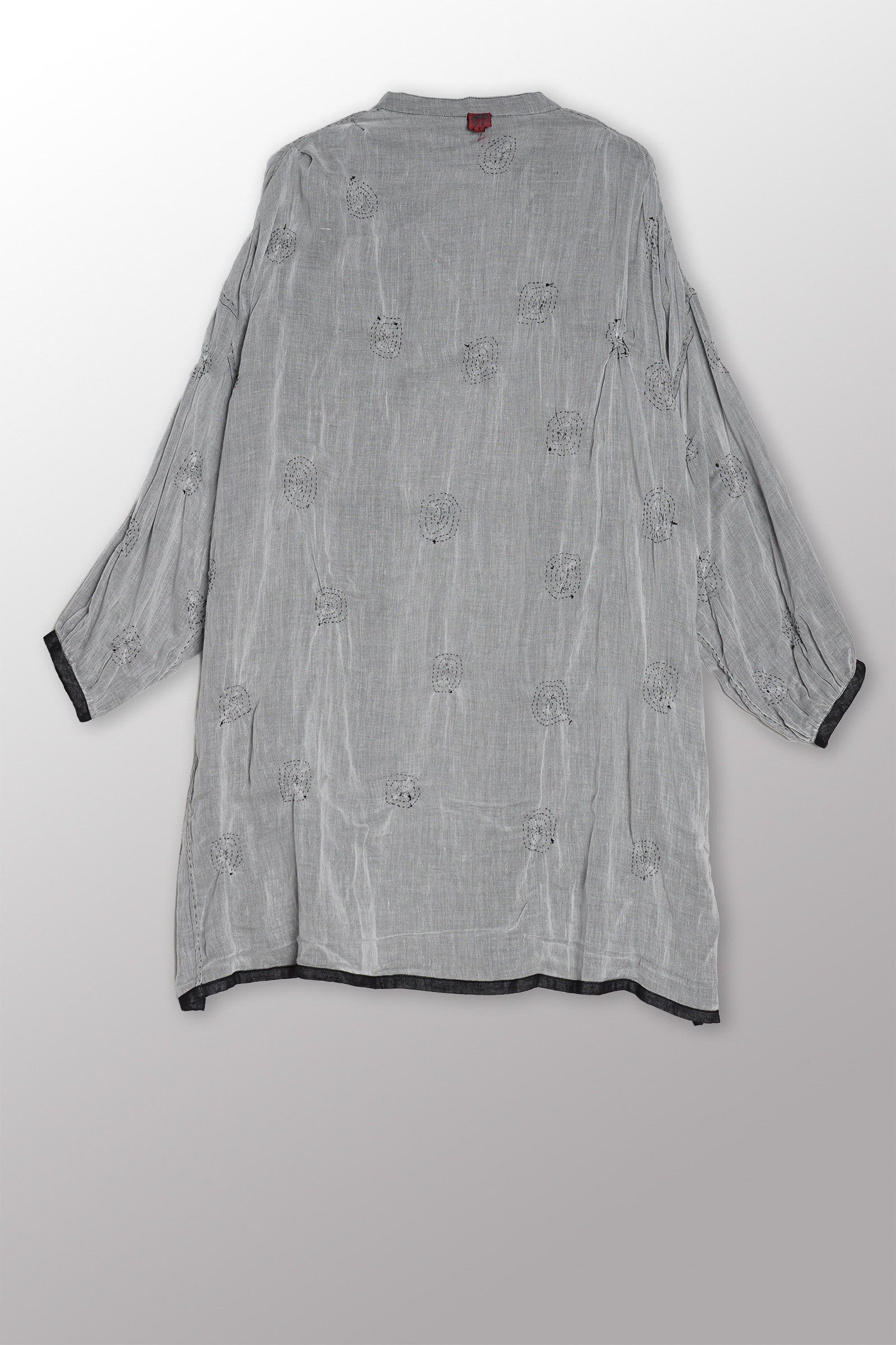 GAUZE SHIBORI GARMENT KANTHA BAND COLLAR OVERSIZED SHIRT - bl-gg2587-blk -
