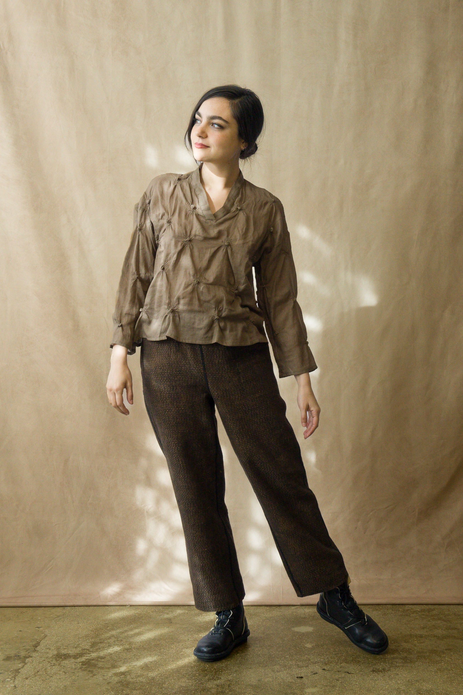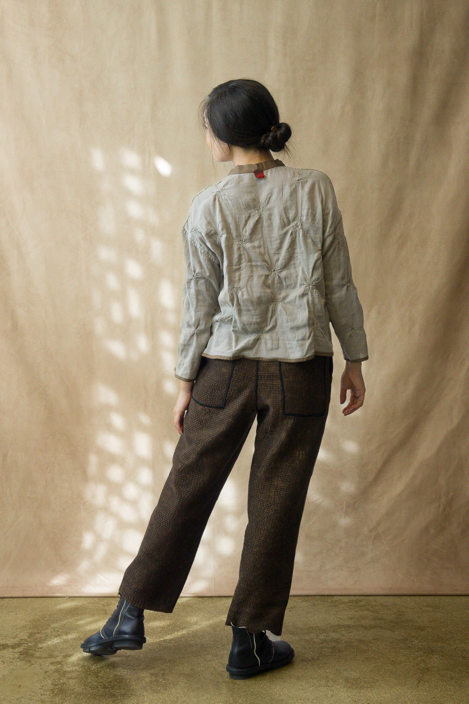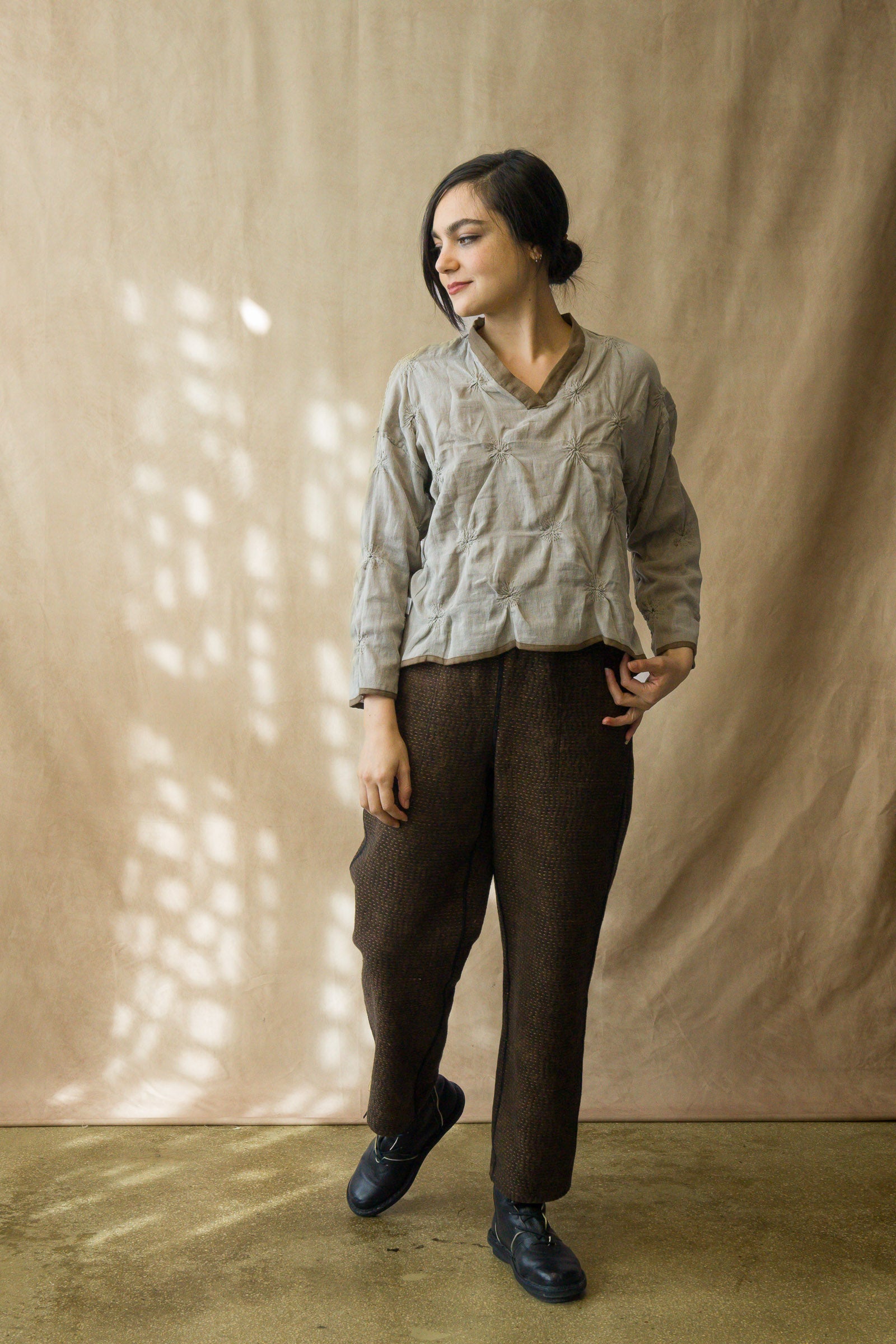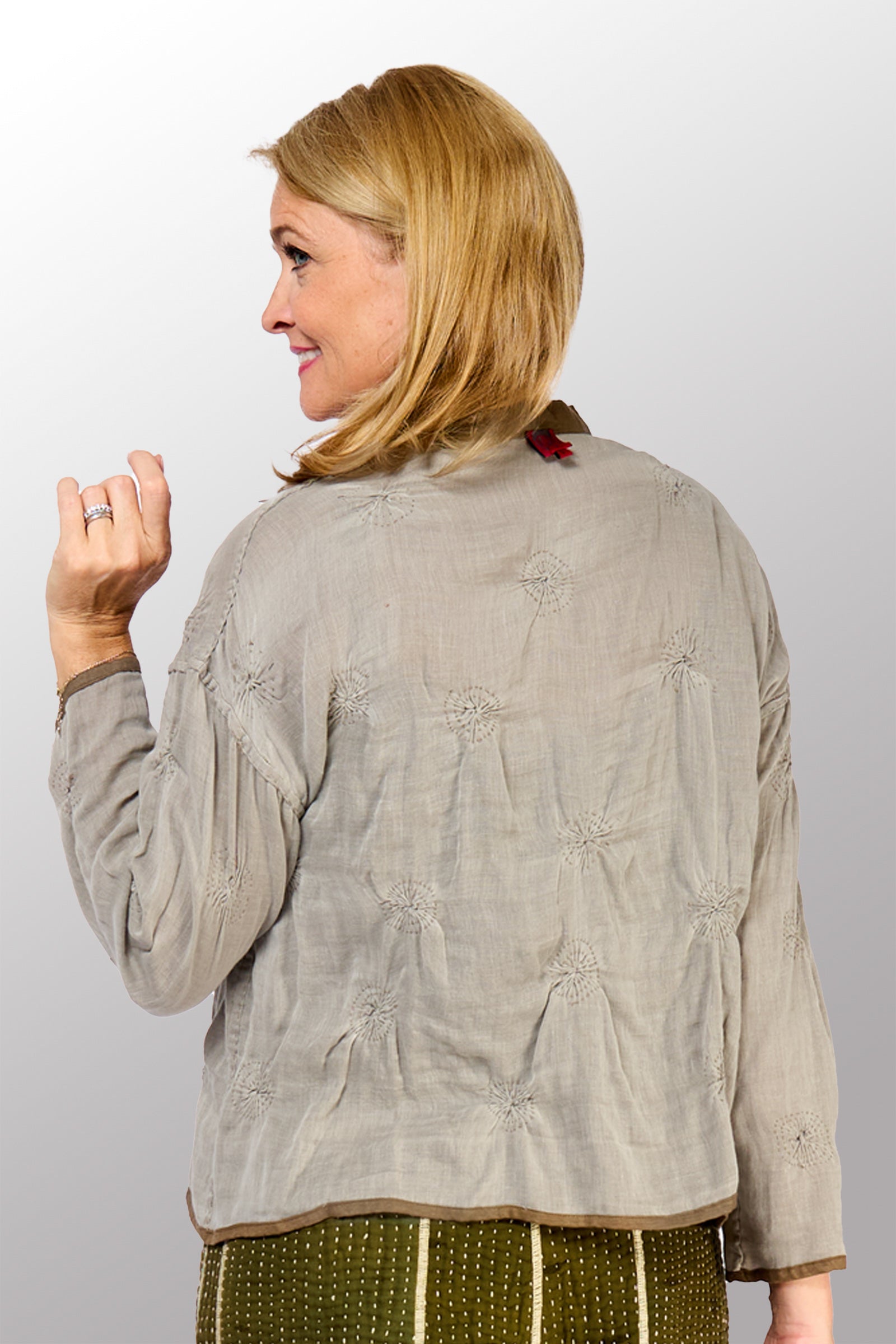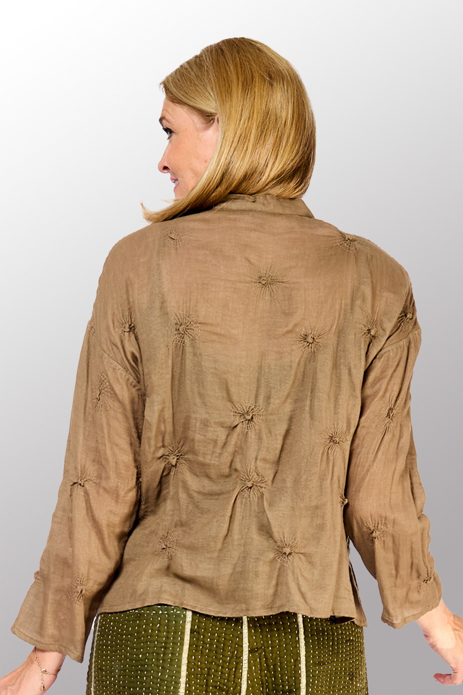 GAUZE SHIBORI GARMENT KANTHA SPIRAL KANTHA V-NECK LONG SLV. TOP - bl-gg2593-ntl -