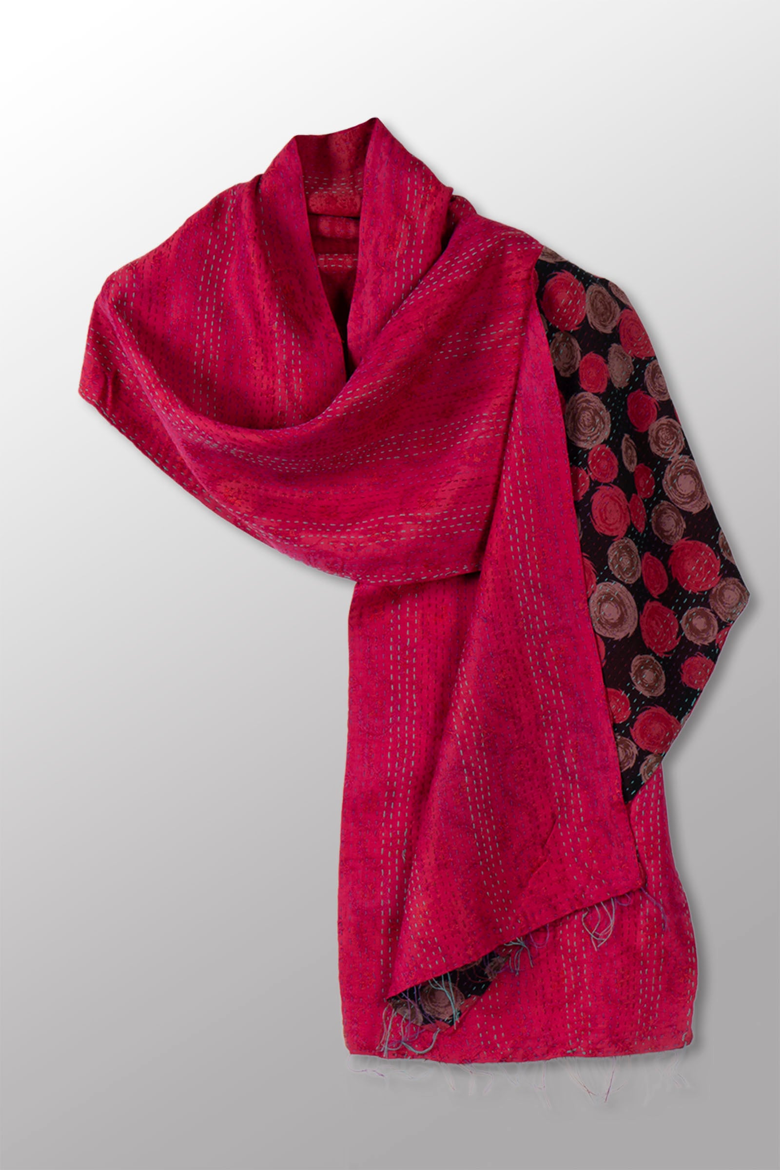 2 Layer Vintage Saris with Hand Stitches on Entire Garment - Reversible