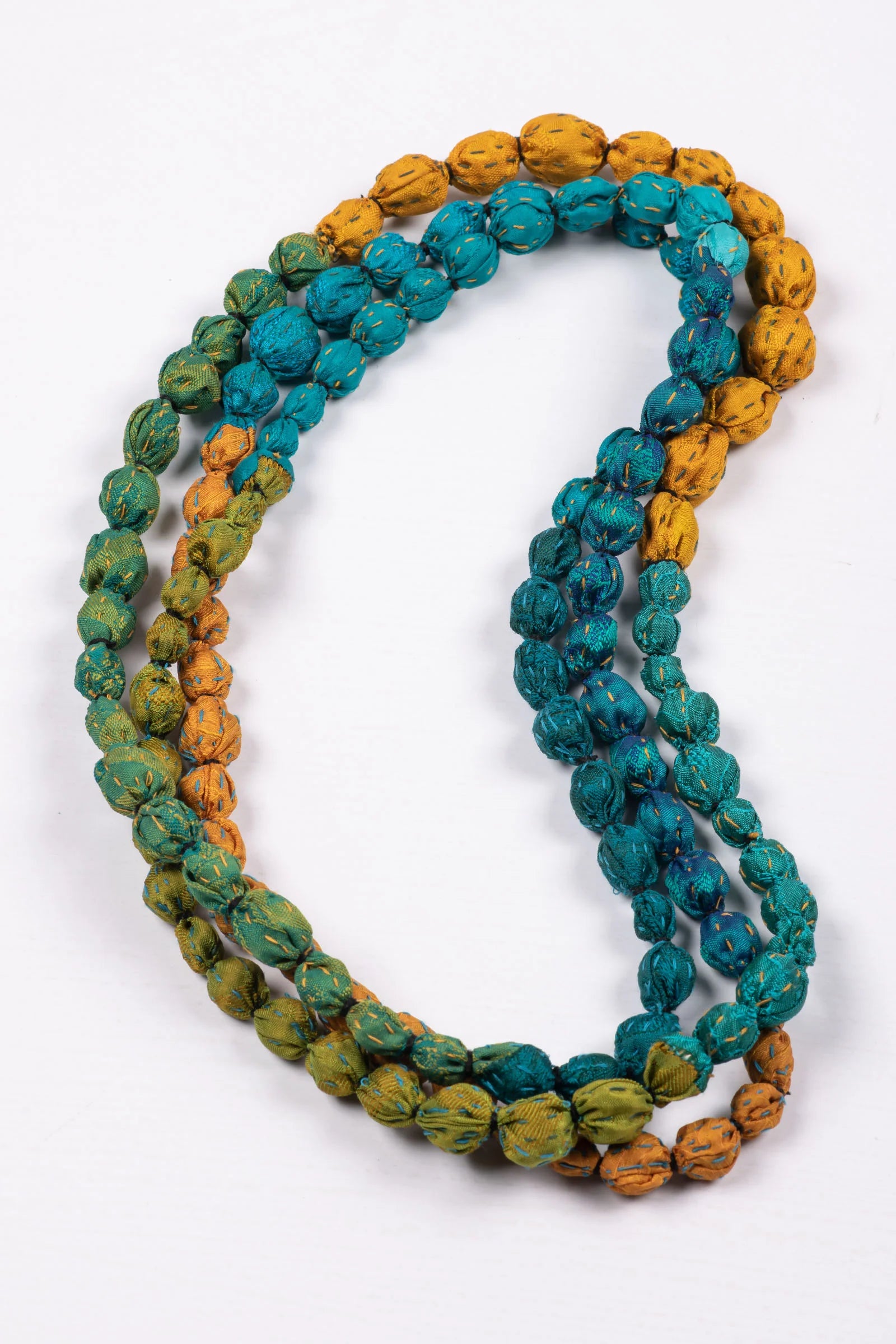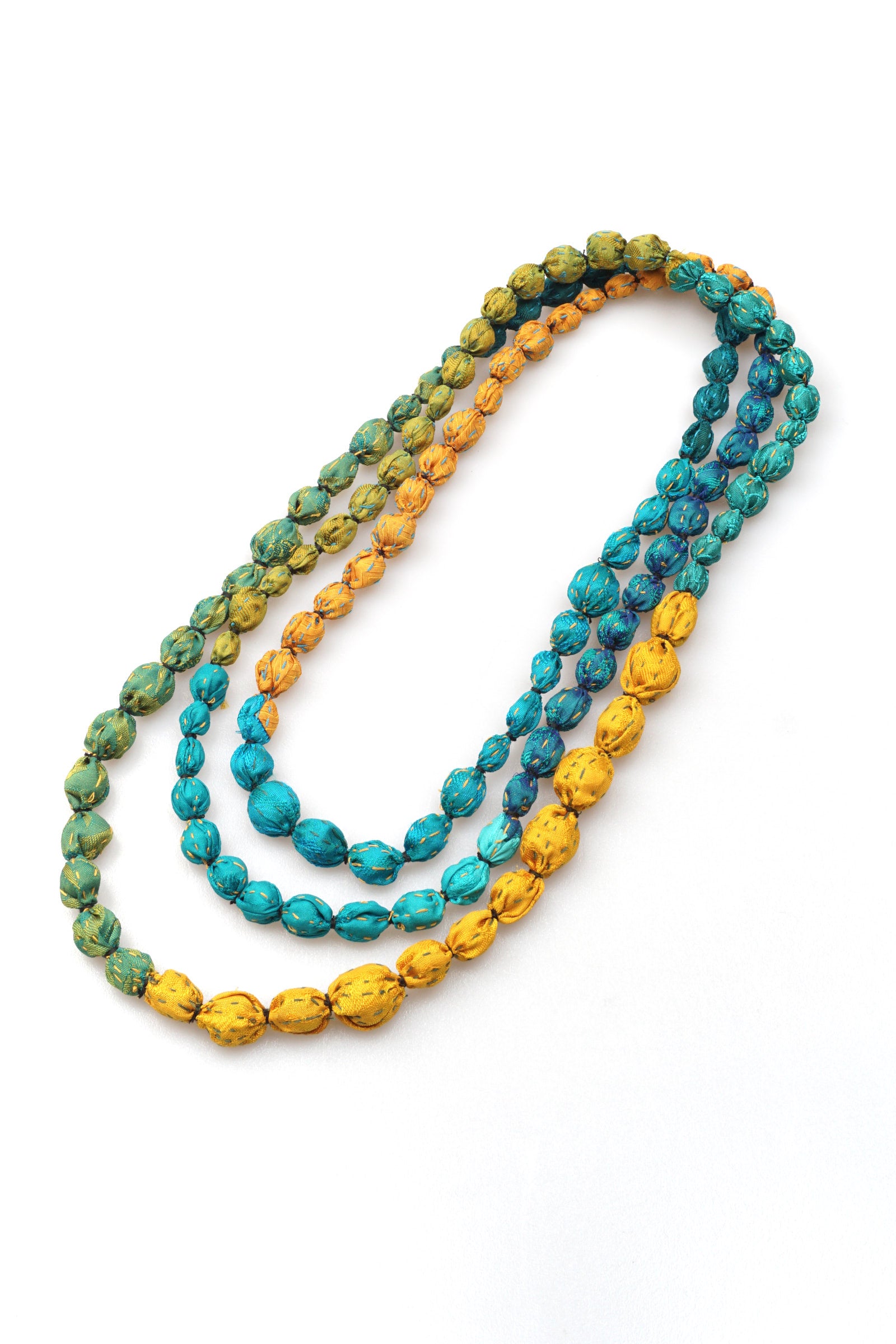 GEORGETTE JACQUARD VINTAGE SILK KANTHA TIE-BEADS LONG NECKLACE - gj2707-ytu -