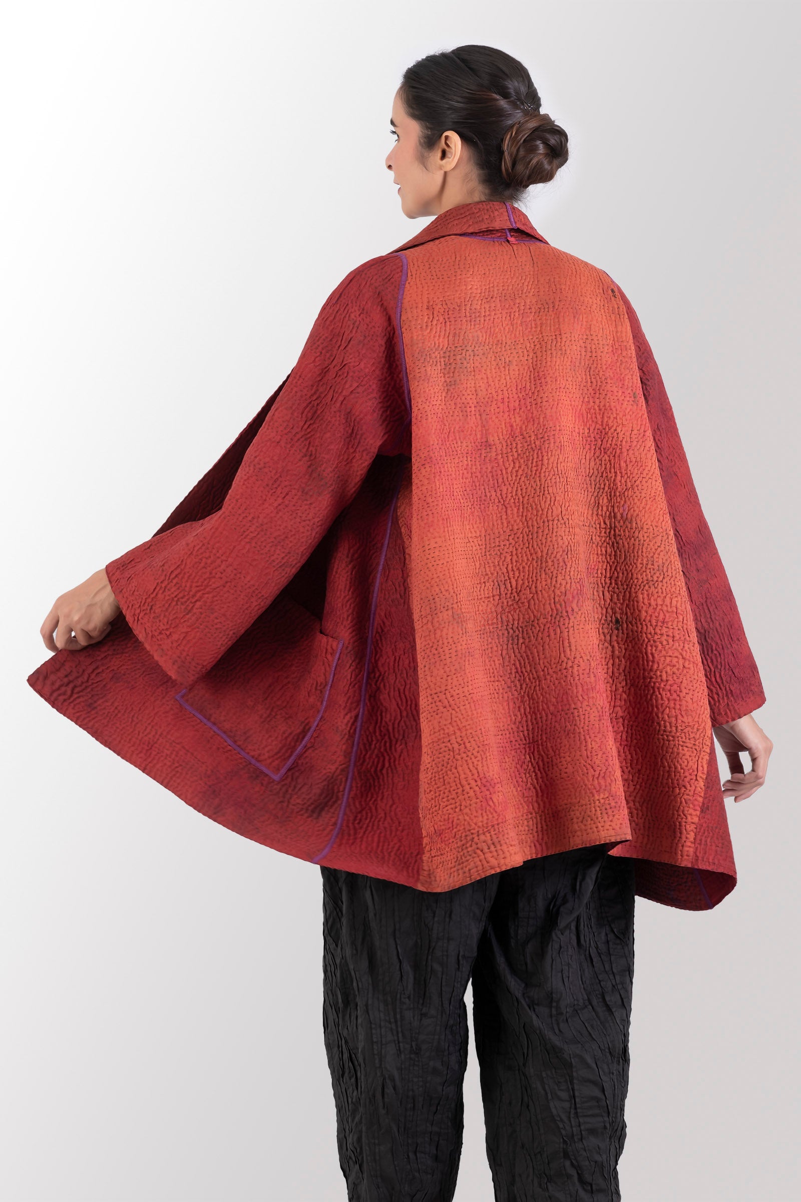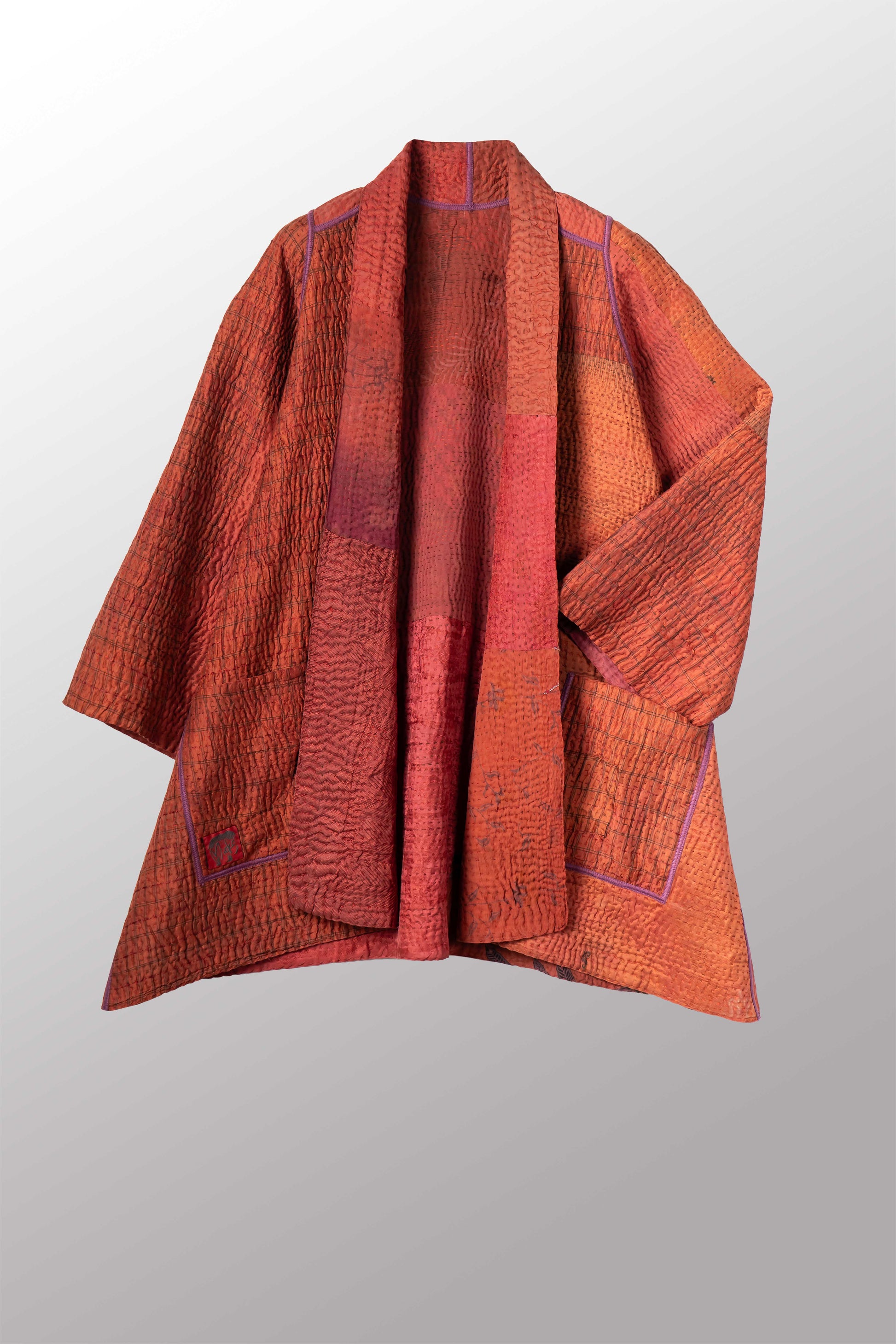GEORGETTE JACQUARD VINTAGE SILK PATCH KANTHA A-LINE JACKET - gj4003-org -