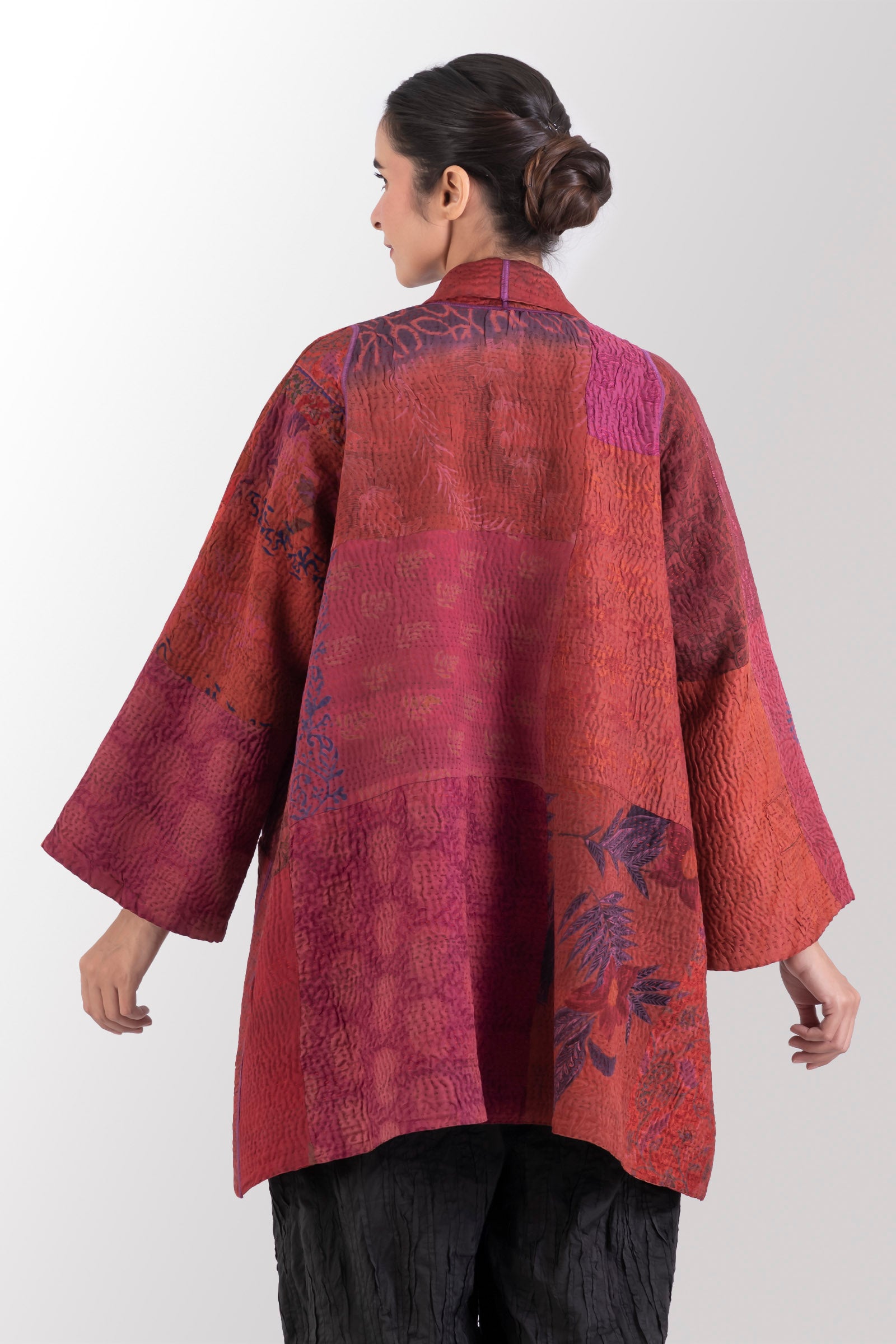 4 Layer Vintage Saris with Hand Stitches on Entire Garment - Reversible