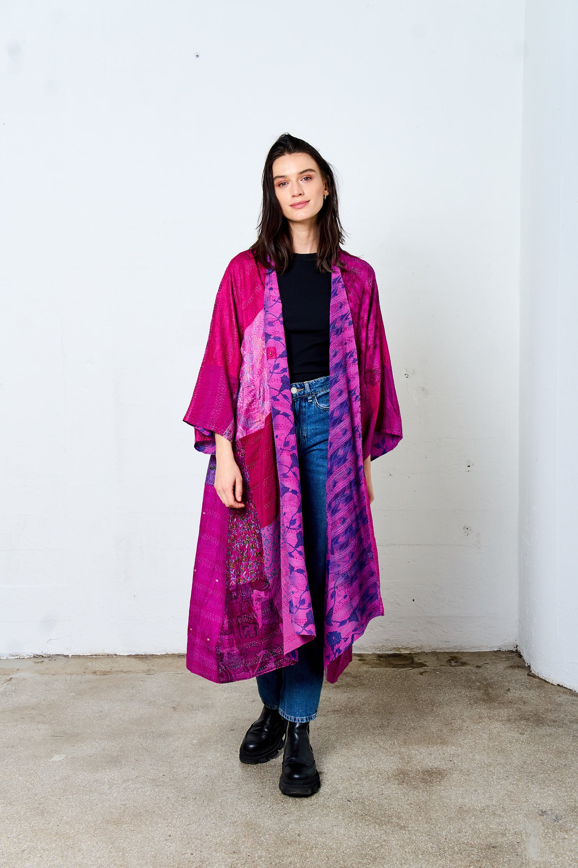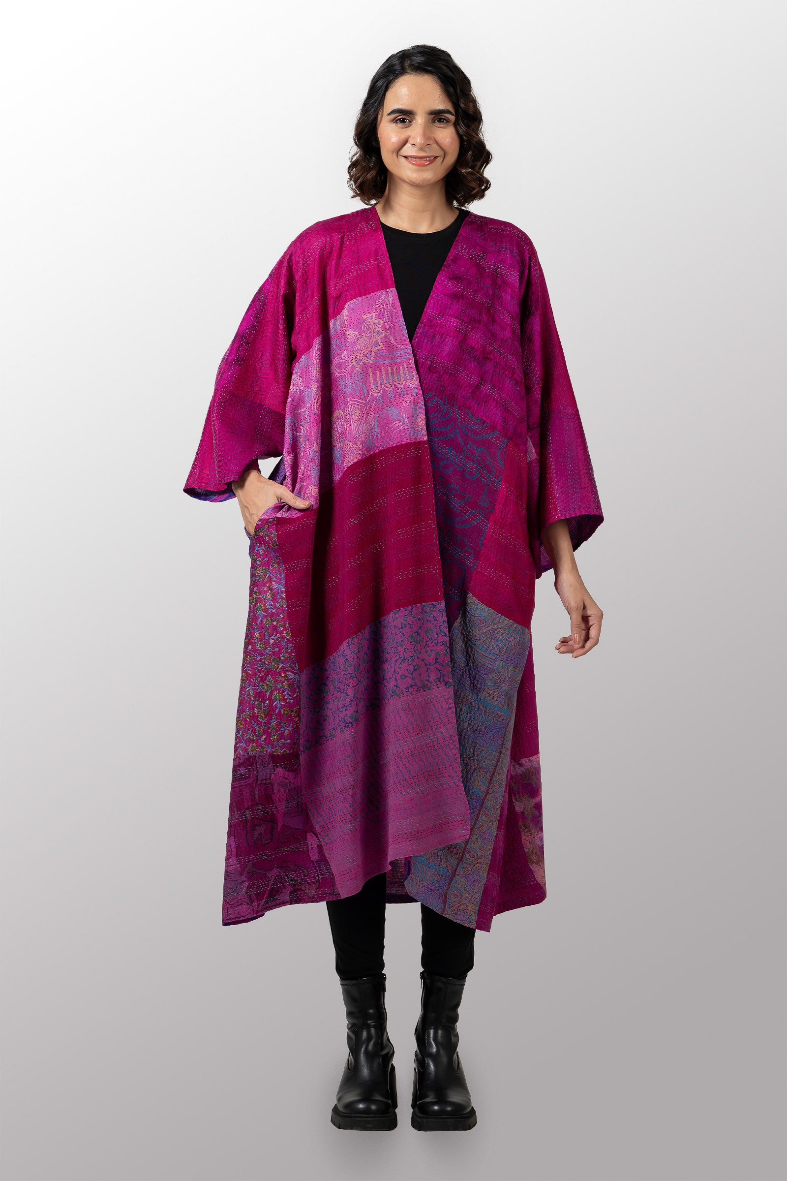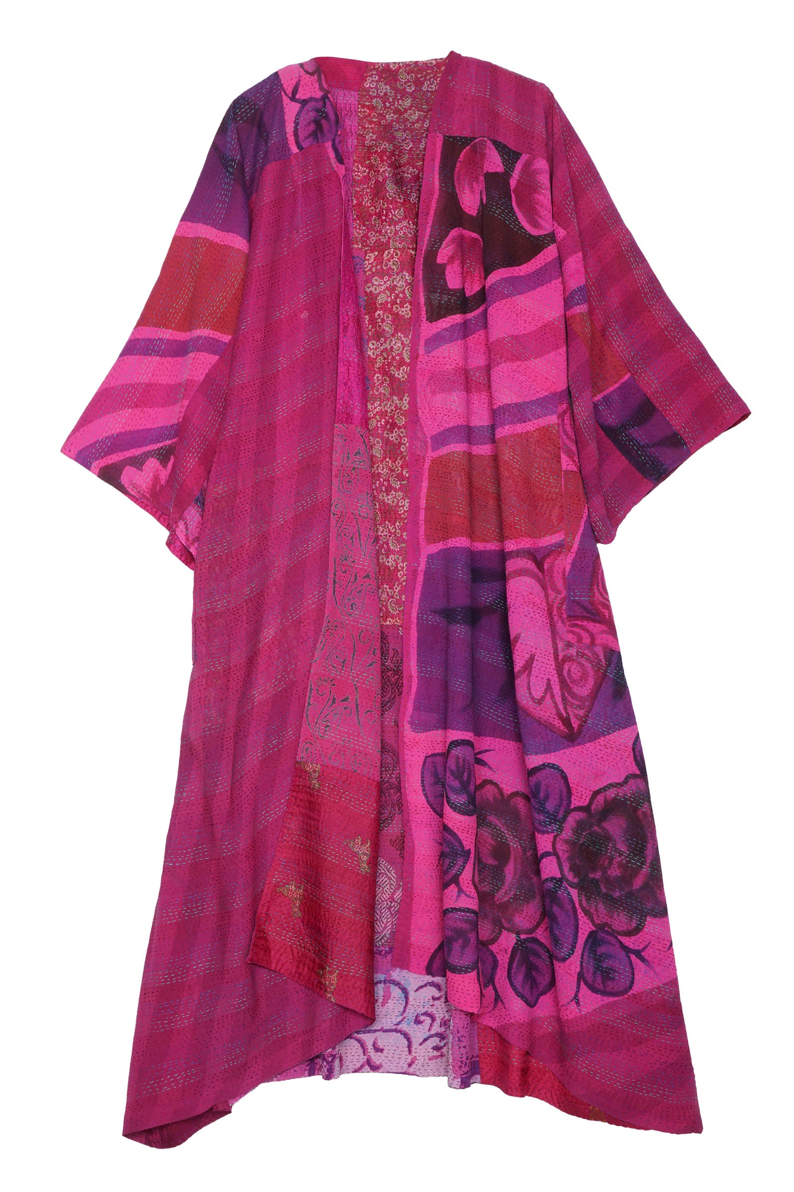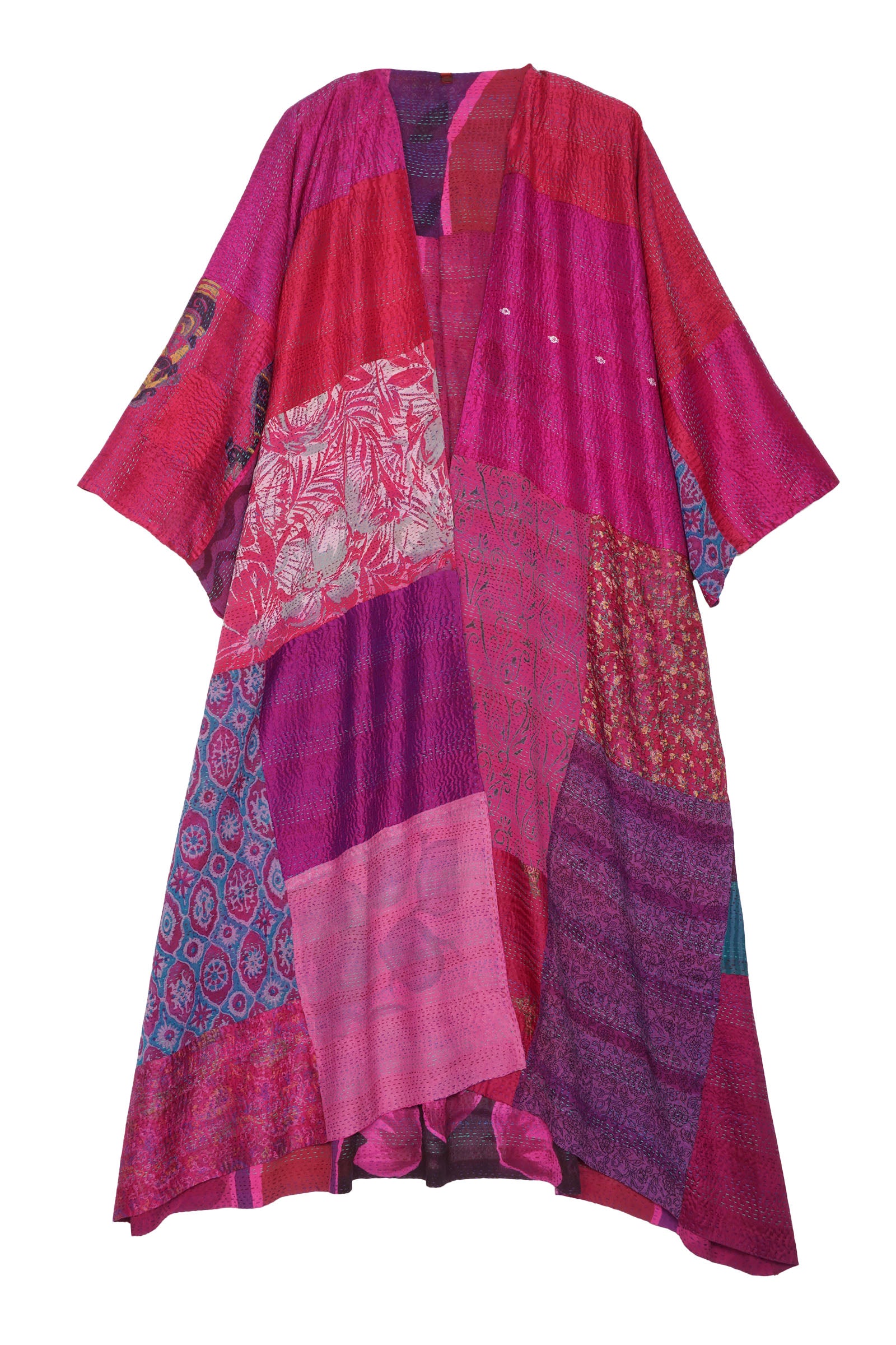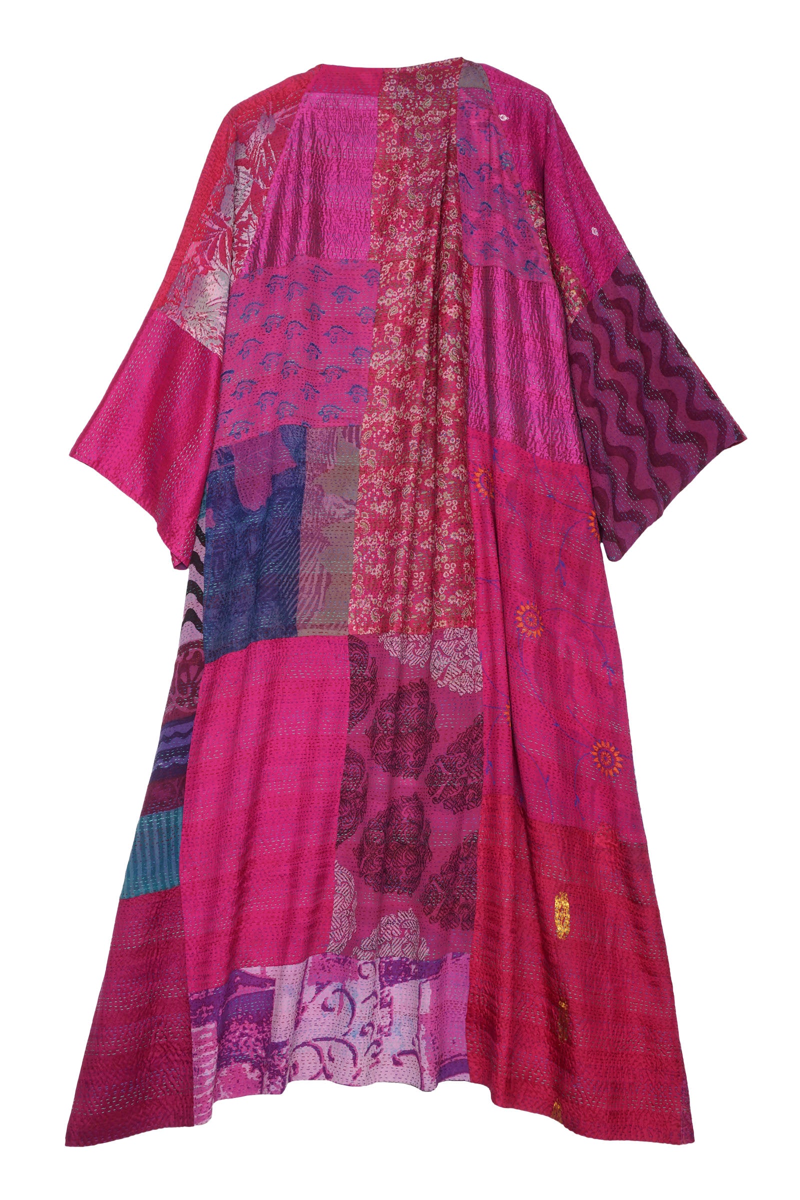GEORGETTE VINTAGE SILK PATCH KANTHA KIMONO MAXI - gs2318-pik -