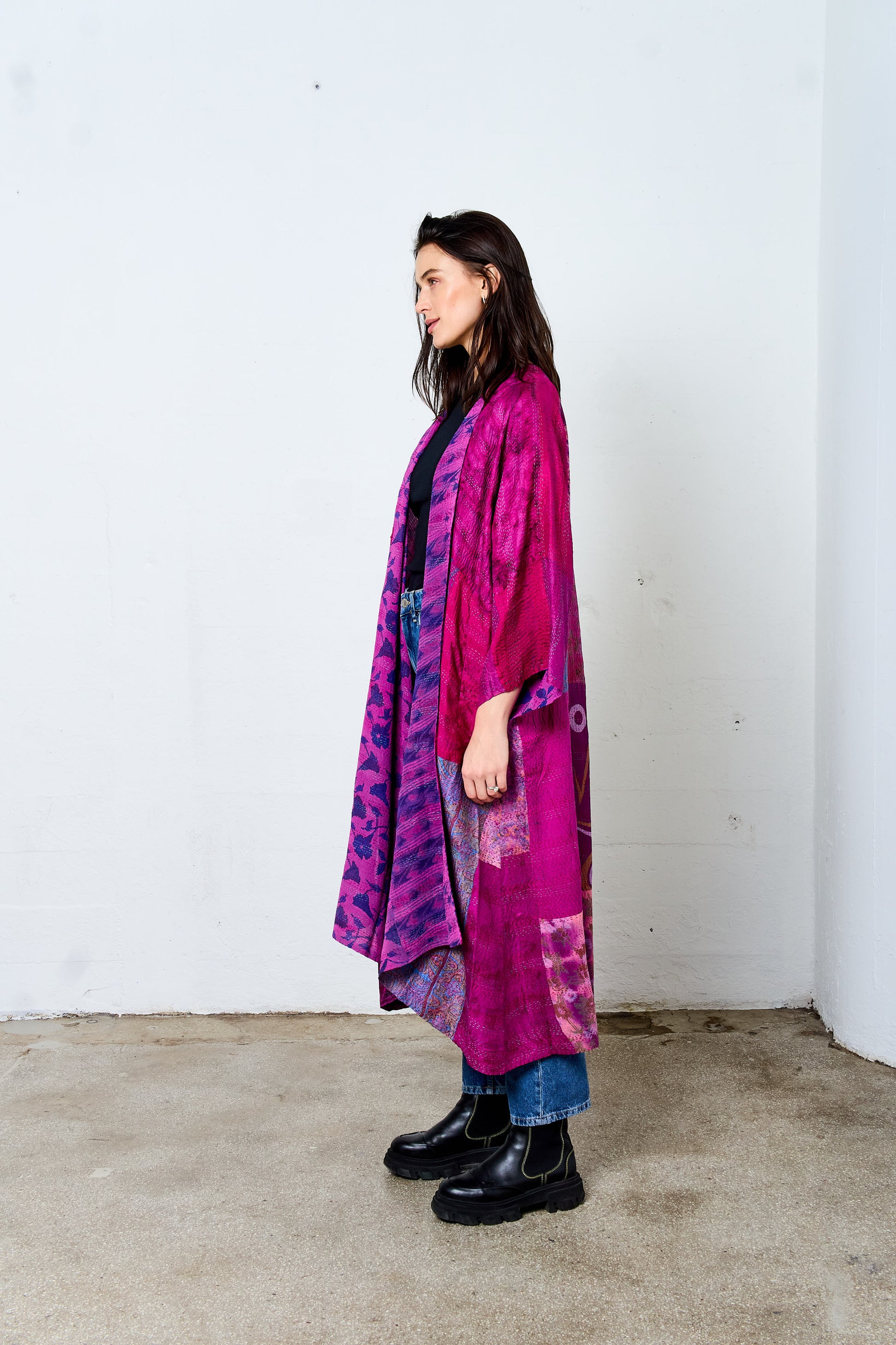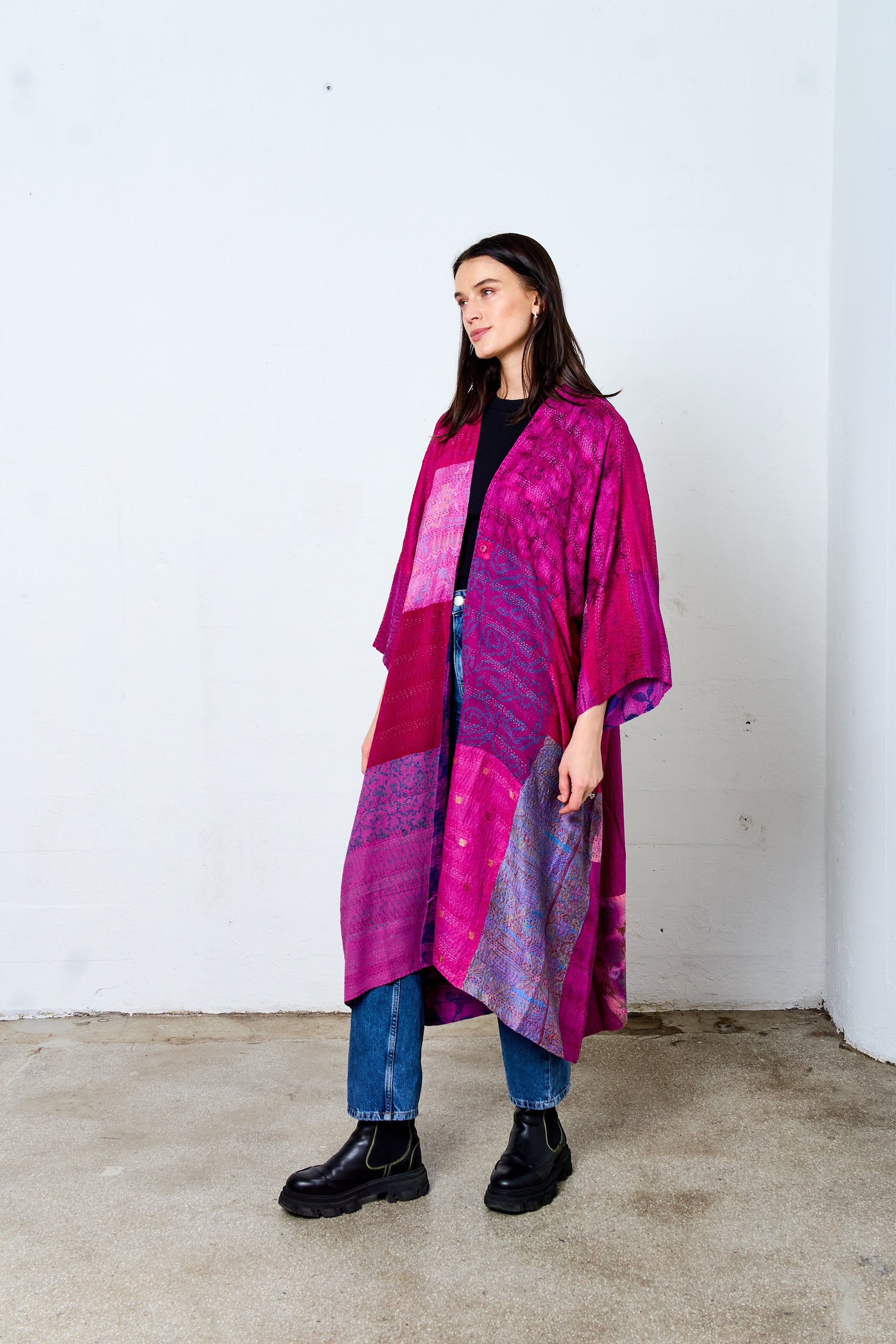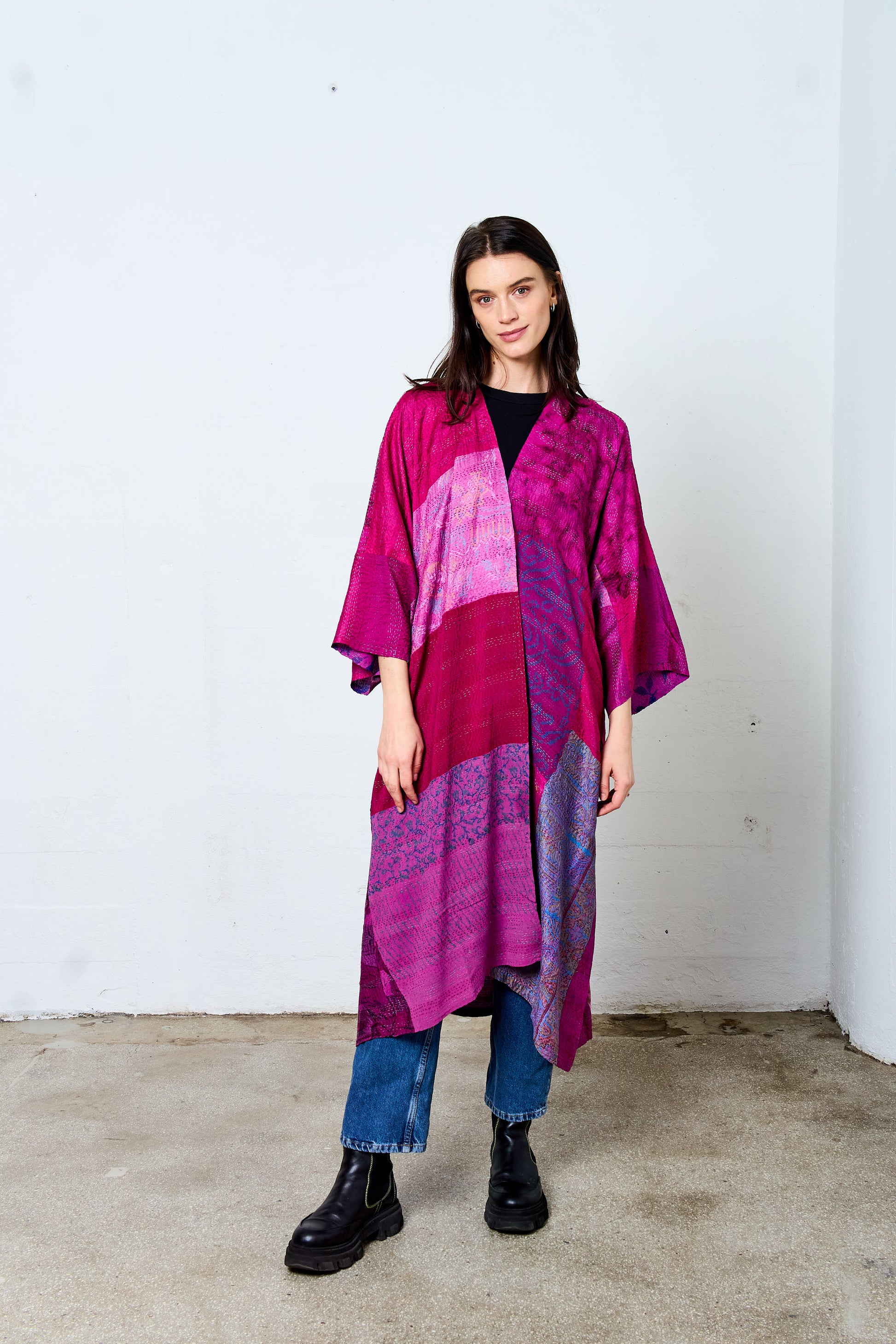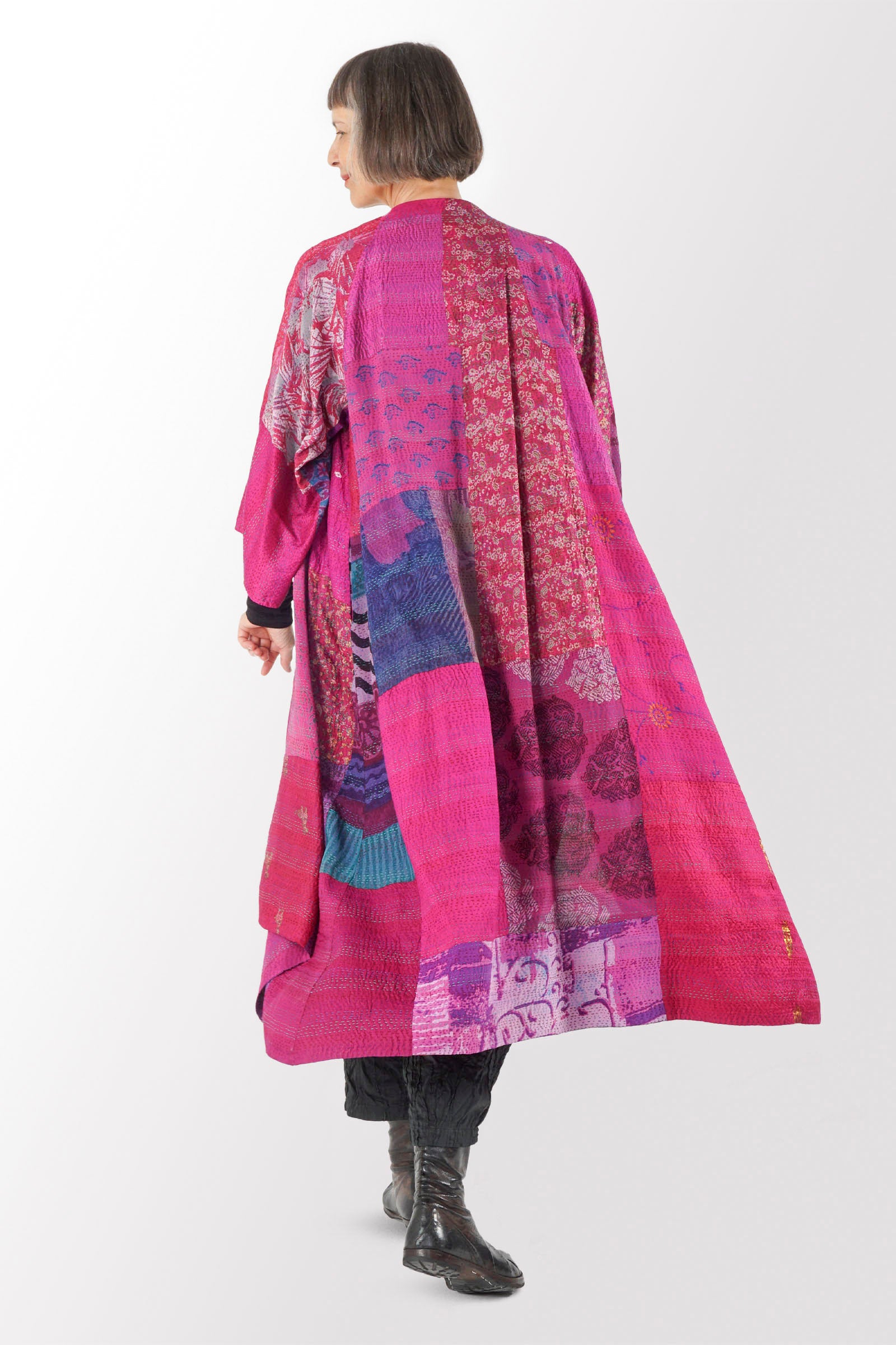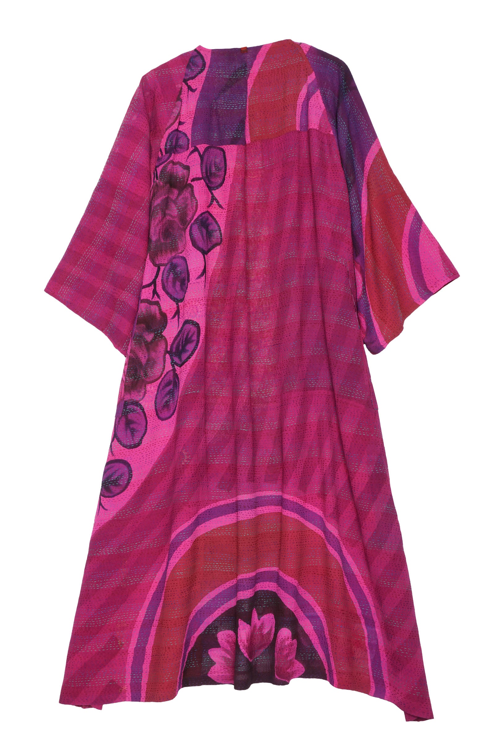 GEORGETTE VINTAGE SILK PATCH KANTHA KIMONO MAXI - gs2318-pik -