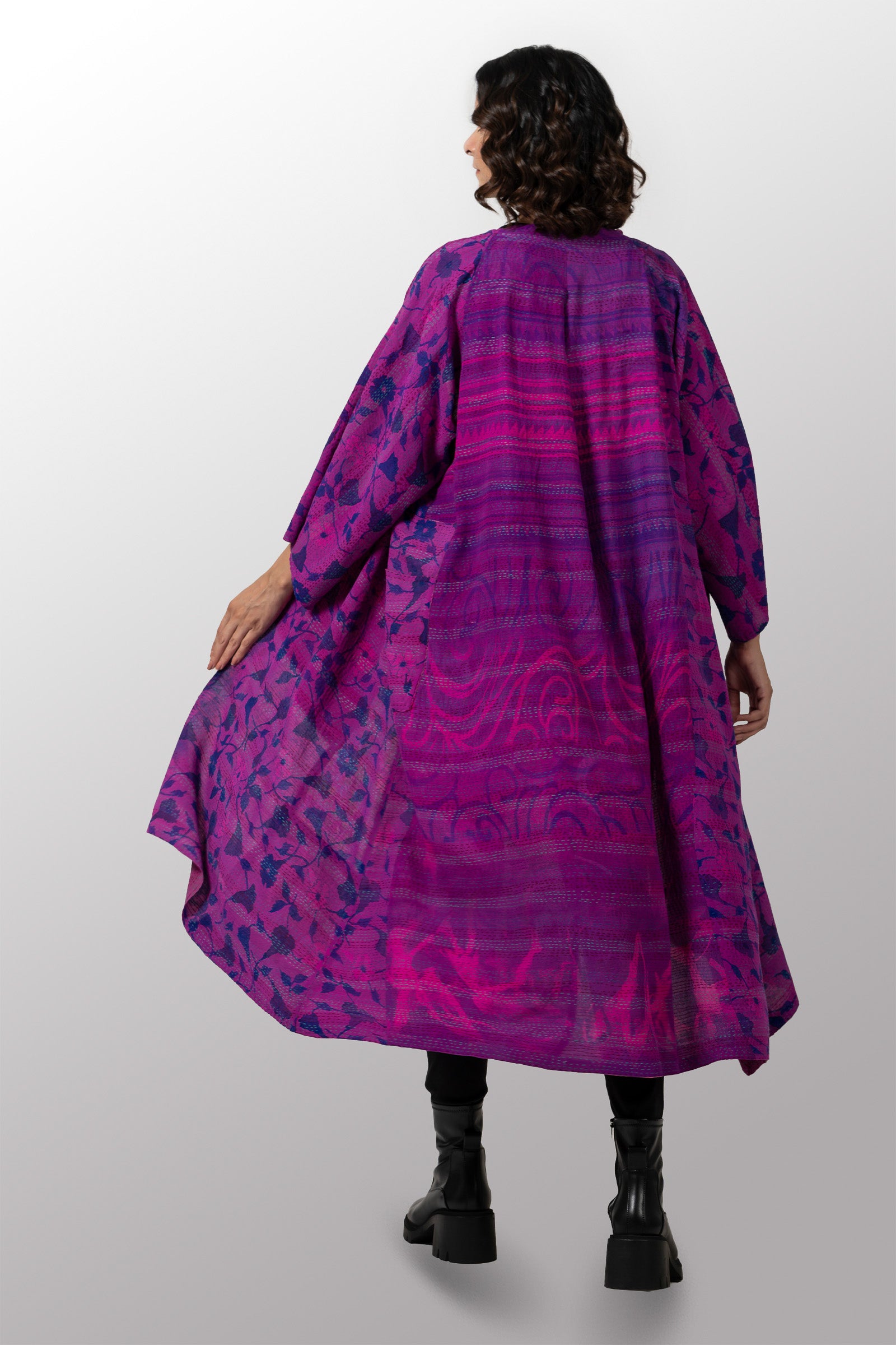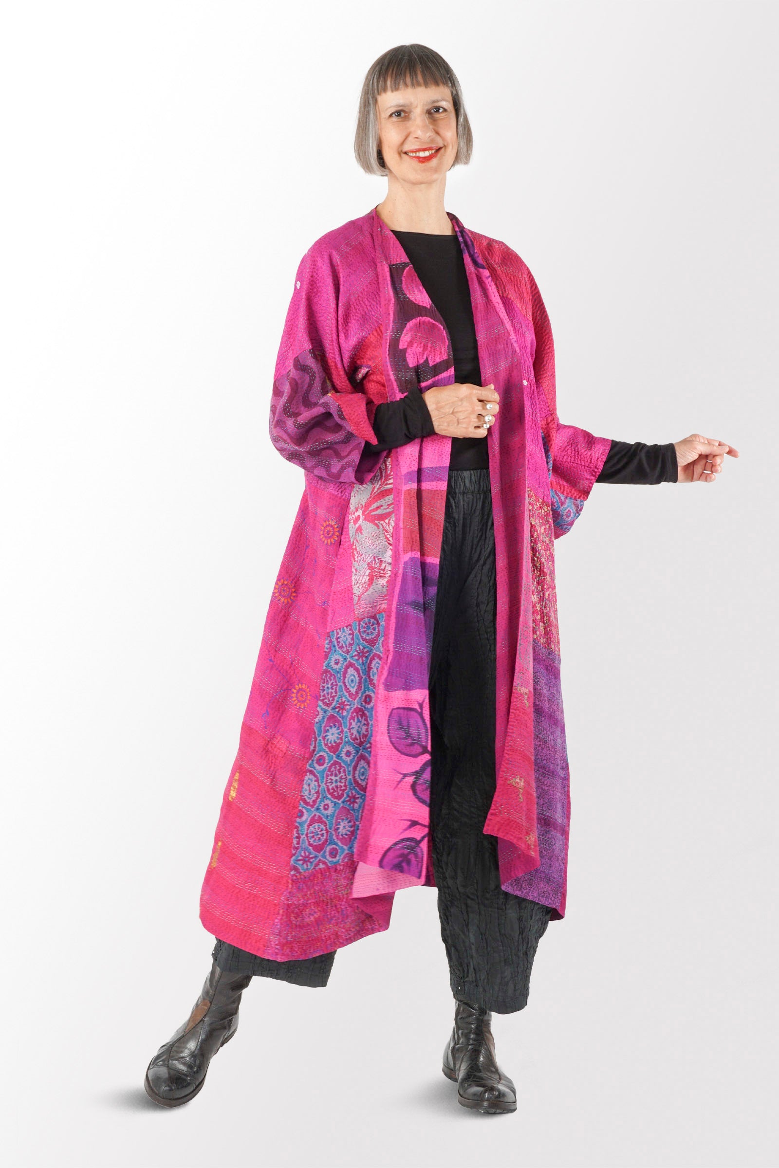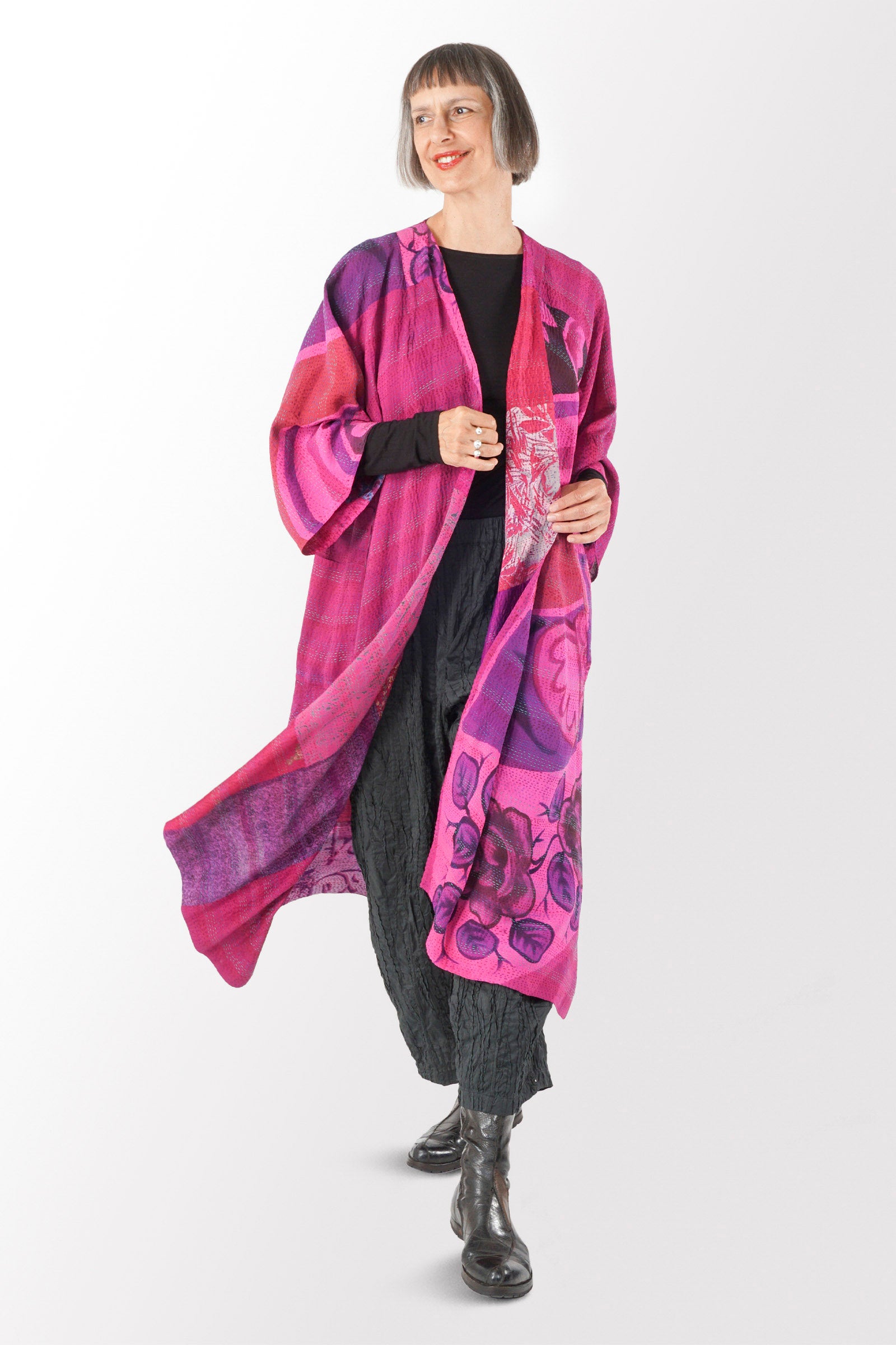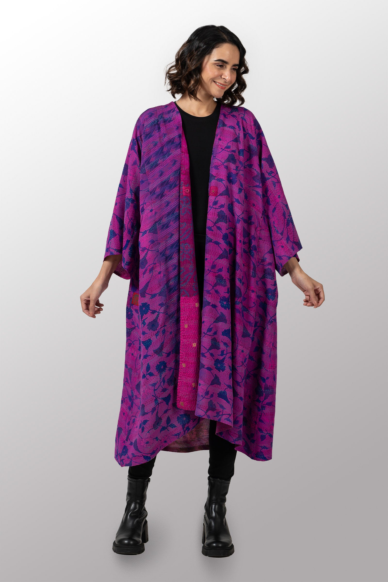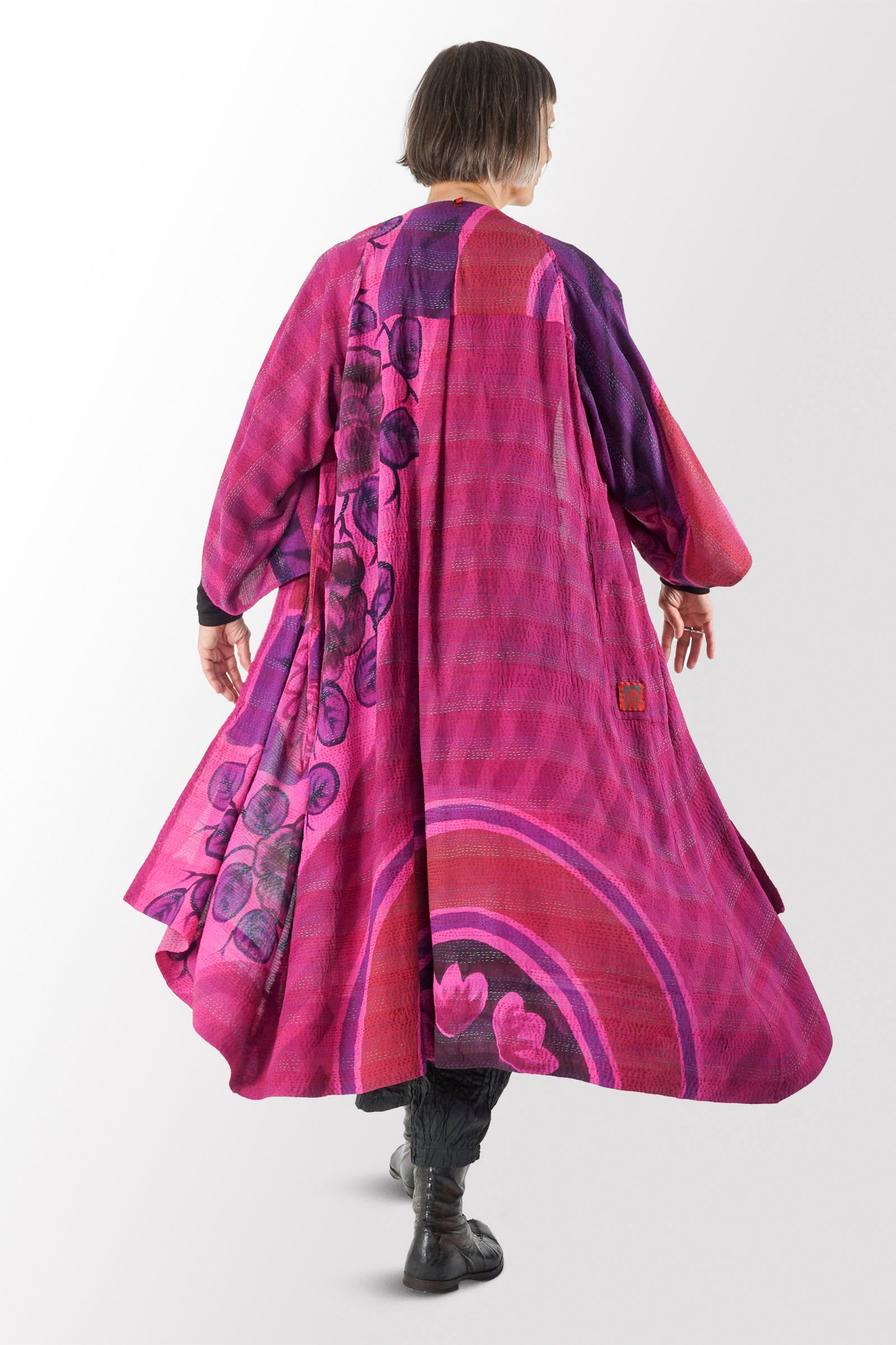 GEORGETTE VINTAGE SILK PATCH KANTHA KIMONO MAXI - gs2318-pik -