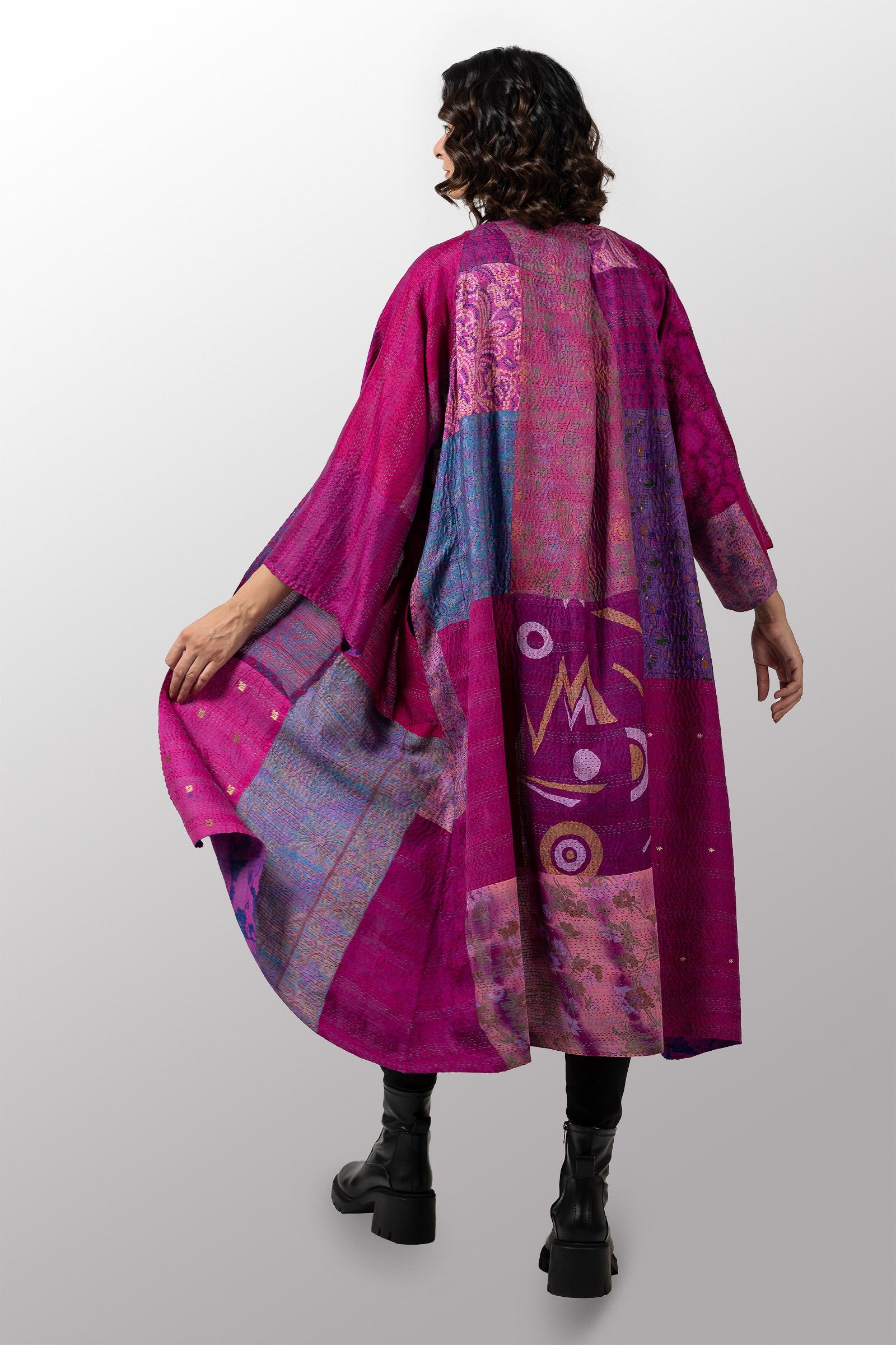 2 Layer Vintage Saris with Hand Stitches on Entire Garment - Reversible