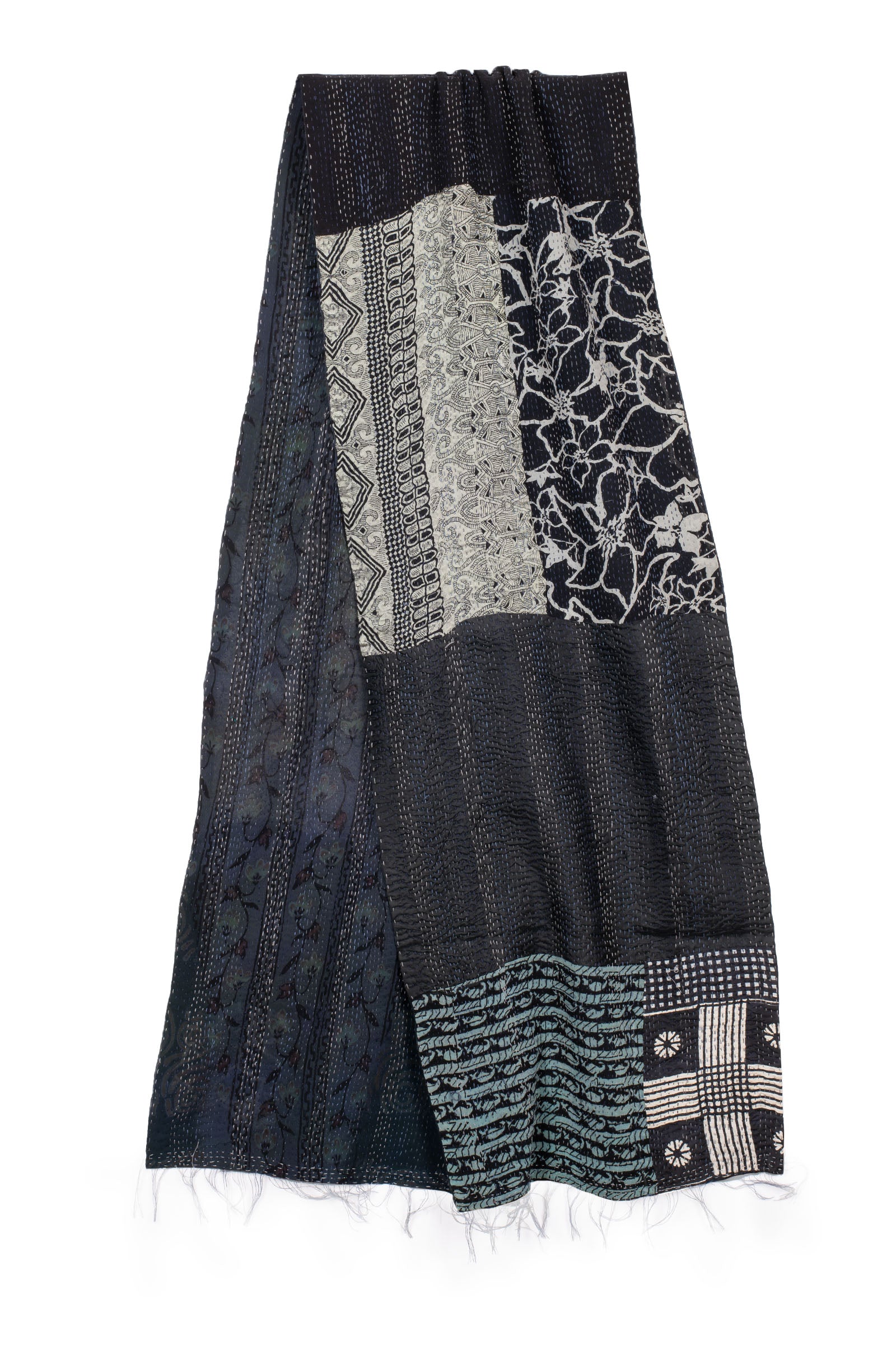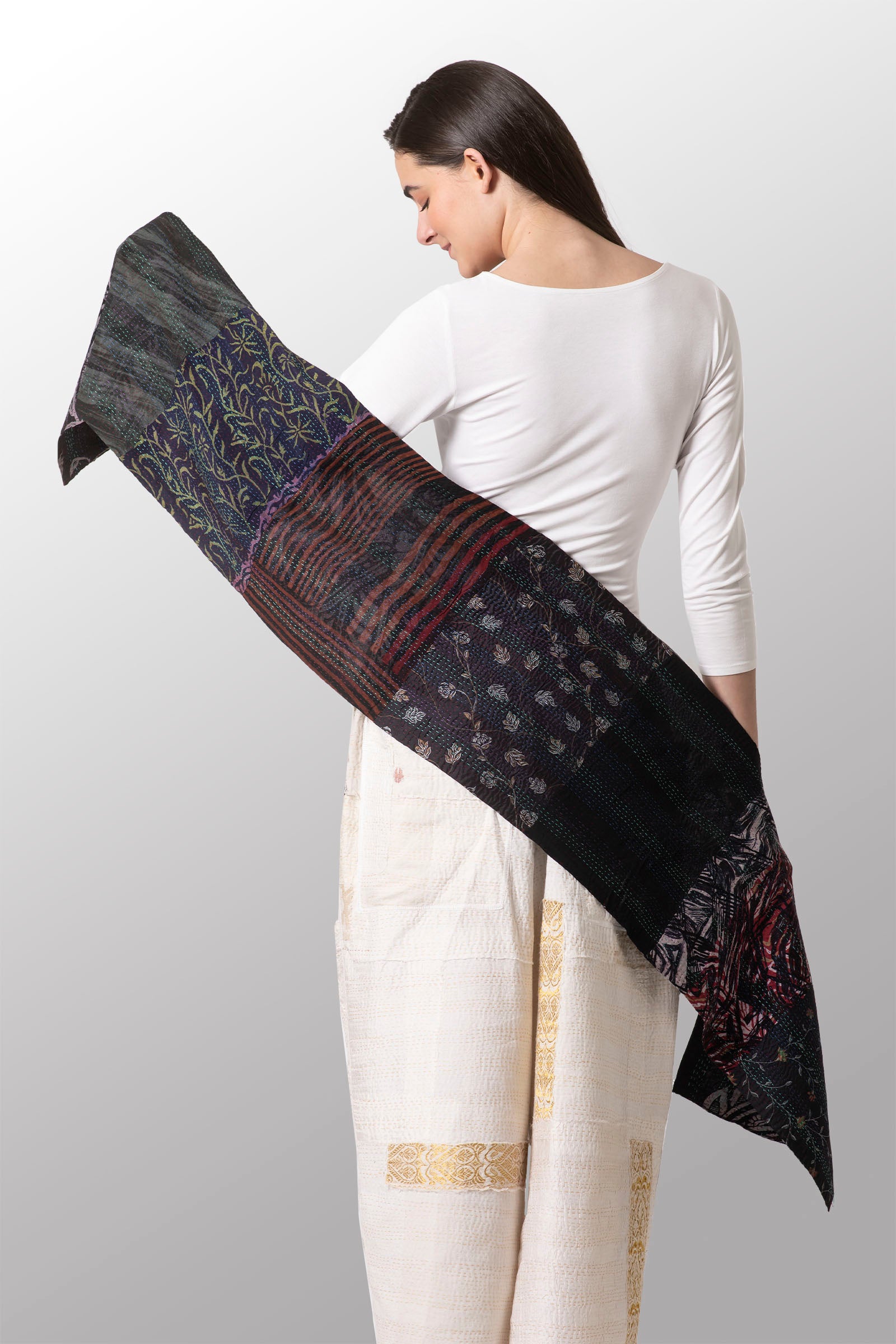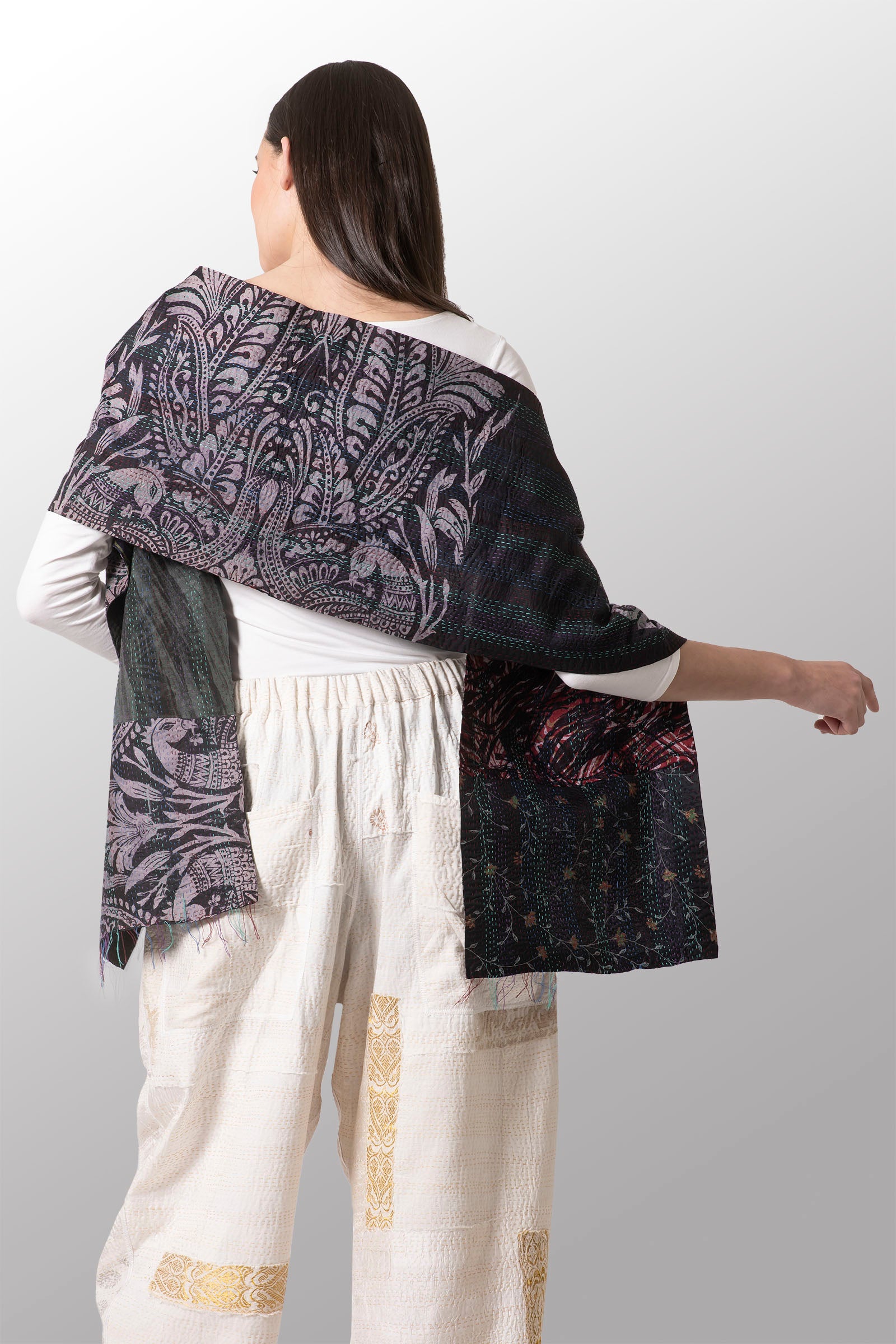 GEORGETTE VINTAGE SILK PATCH KANTHA SCARF SHORT - gs2805-blk -