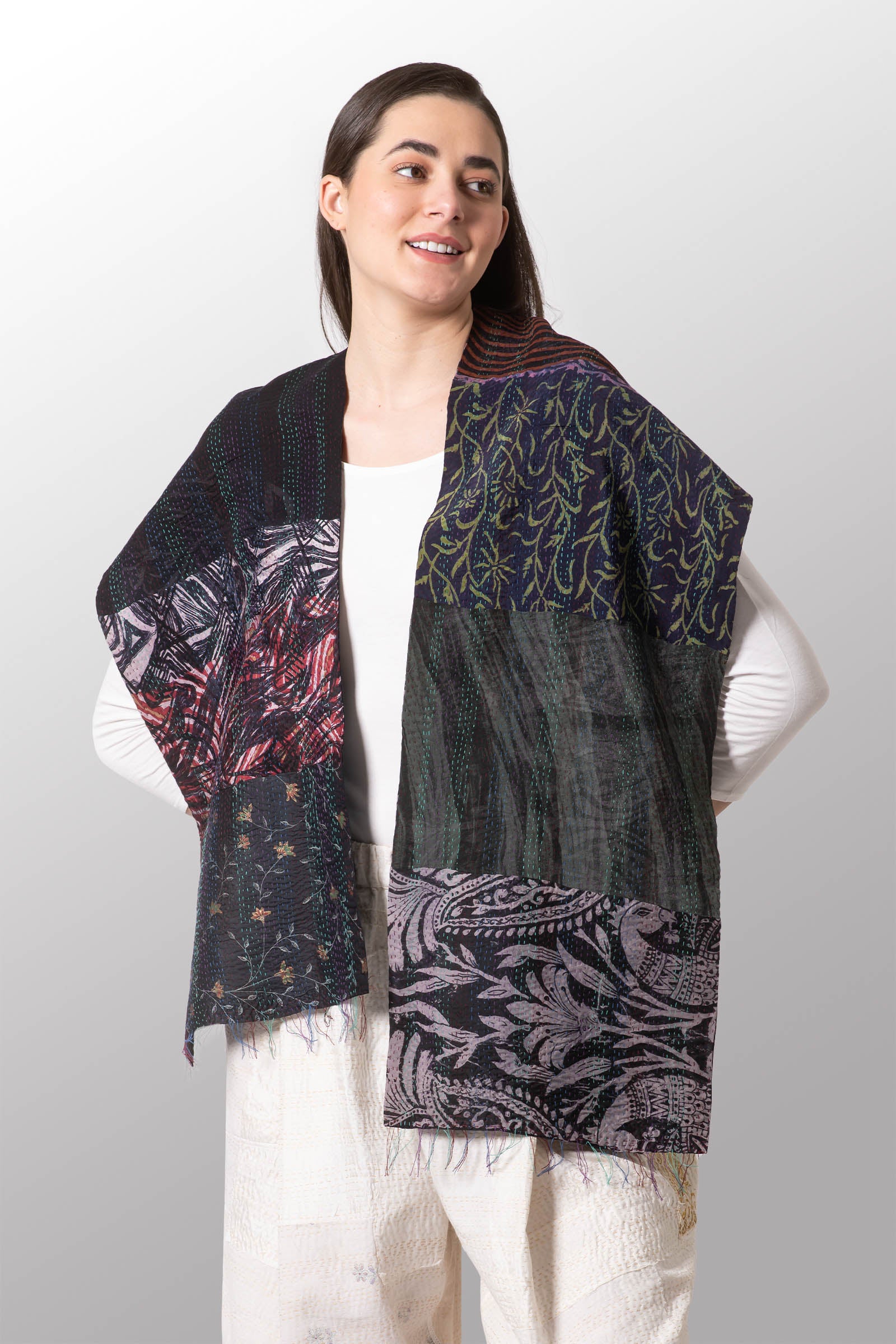2 Layer Vintage Saris with Hand Stitches on Entire Garment - Reversible