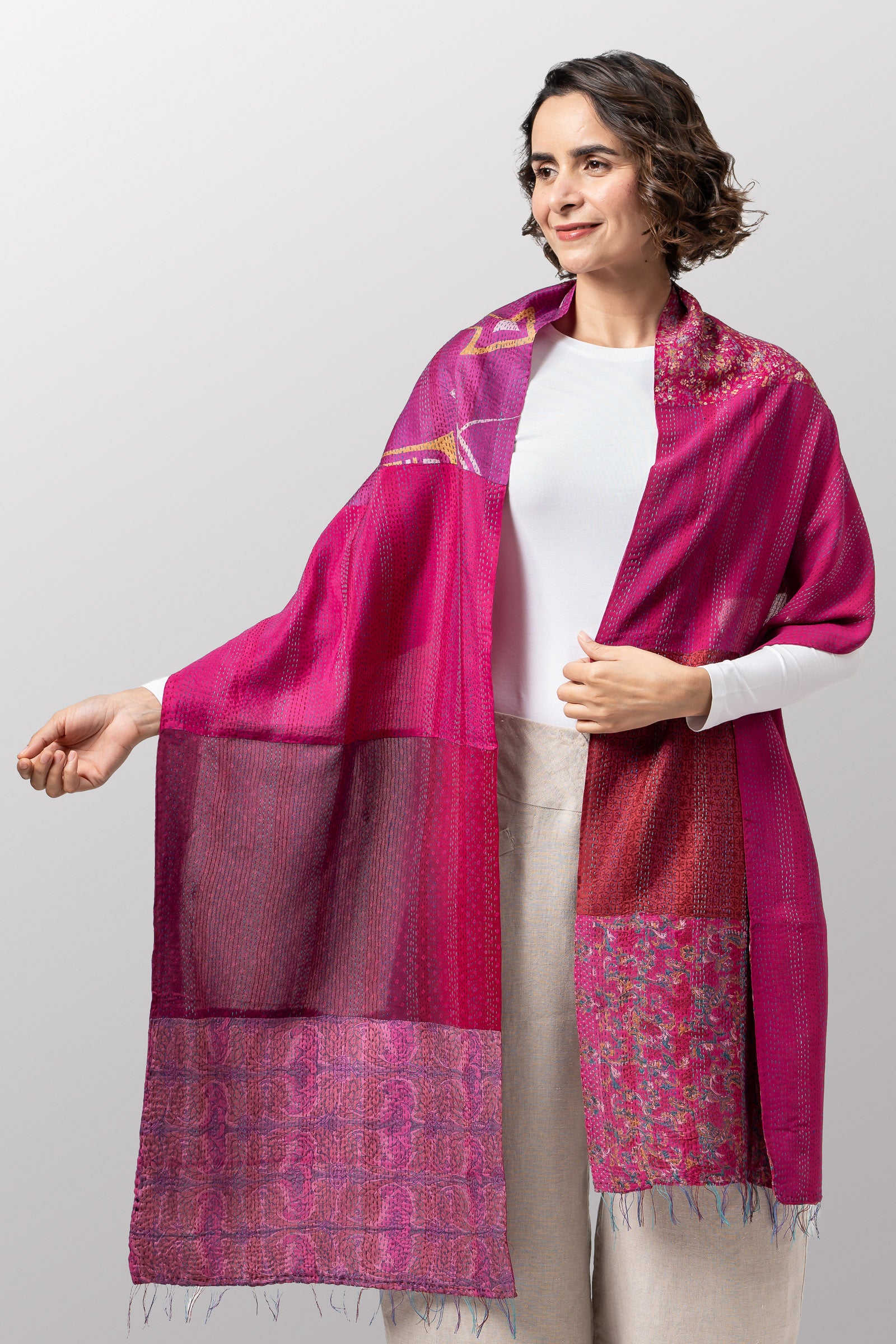 GEORGETTE VINTAGE SILK PATCH KANTHA SCARF STANDARD - gs2801-pik -