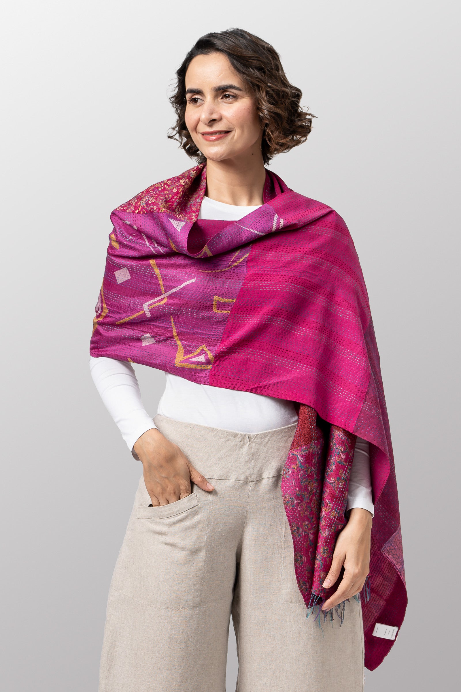 2 Layer Vintage Saris with Hand Stitches on Entire Garment - Reversible