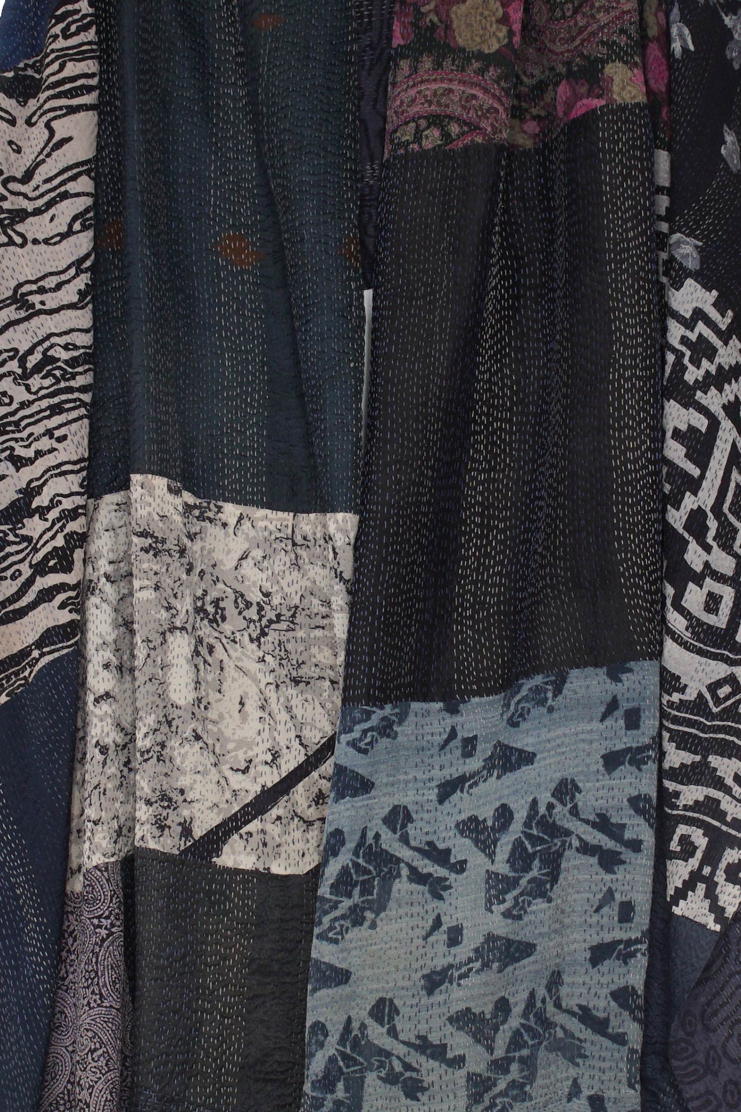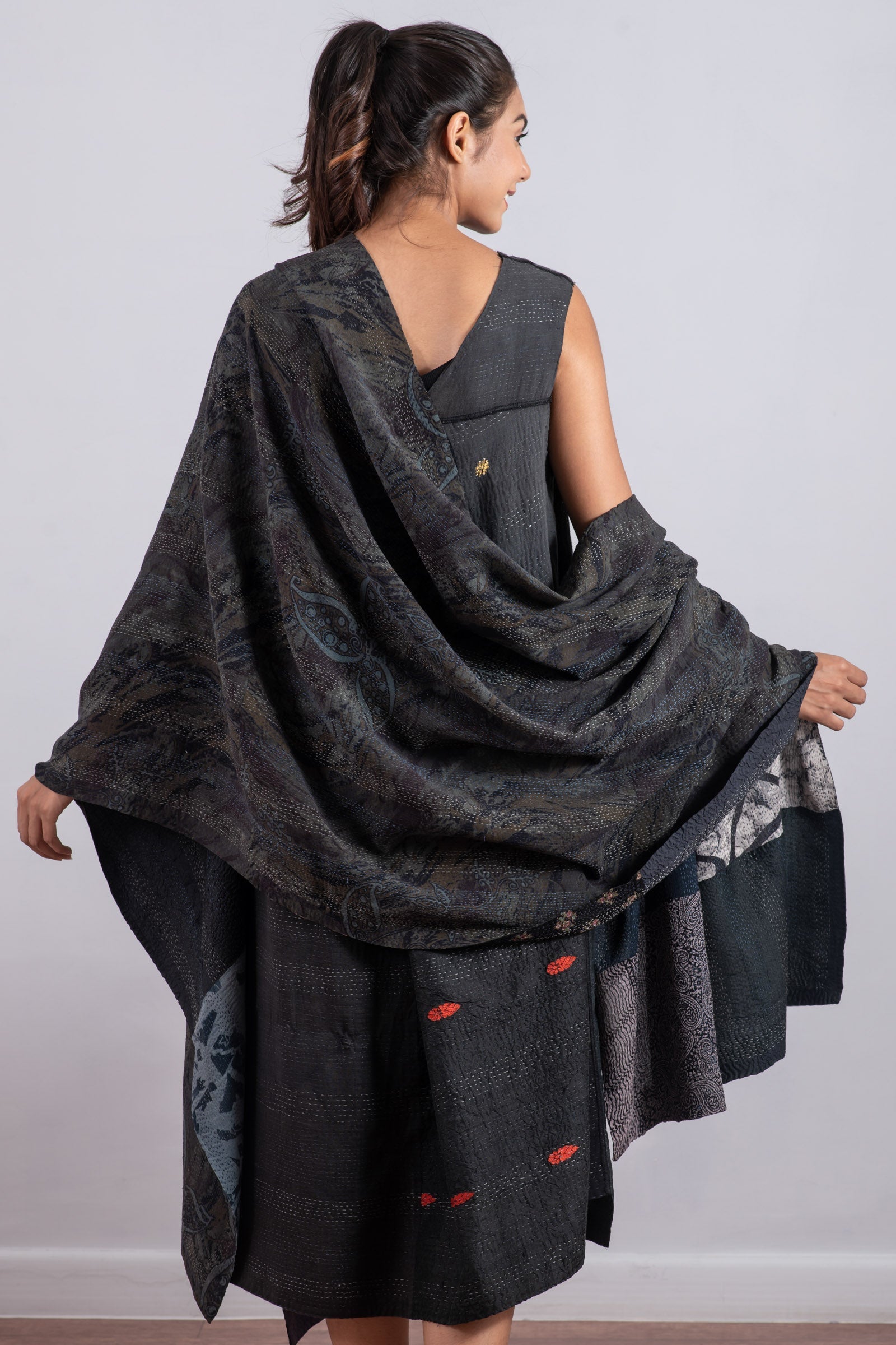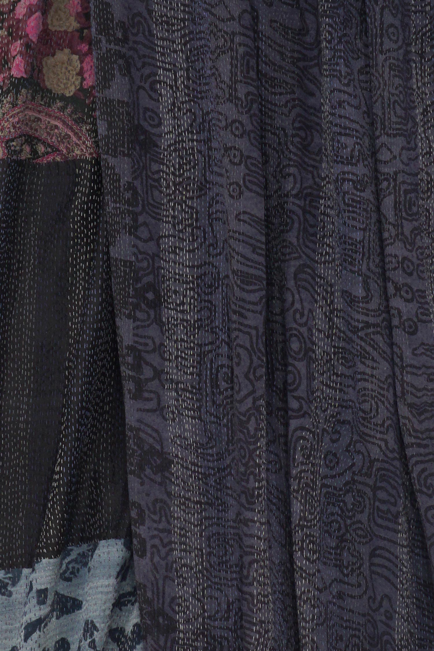 GEORGETTE VINTAGE SILK PATCH KANTHA SHAWL LARGE - gs2803-blk -