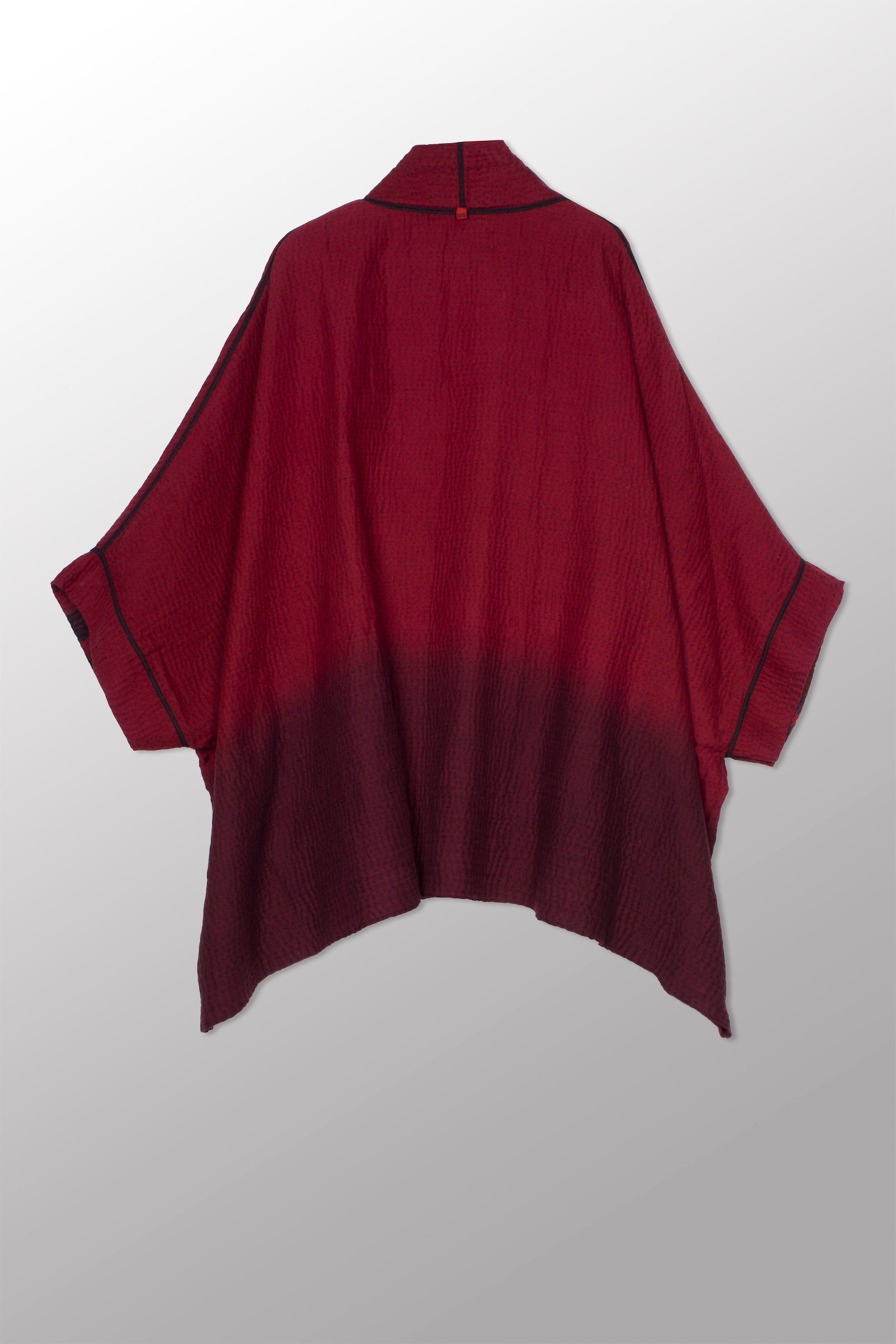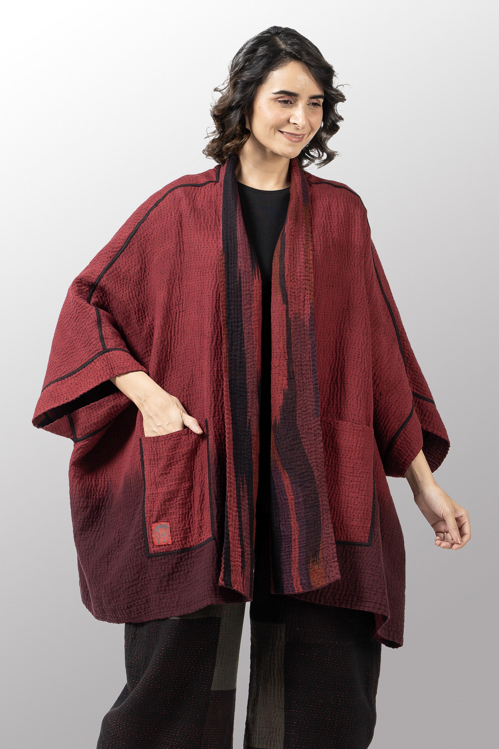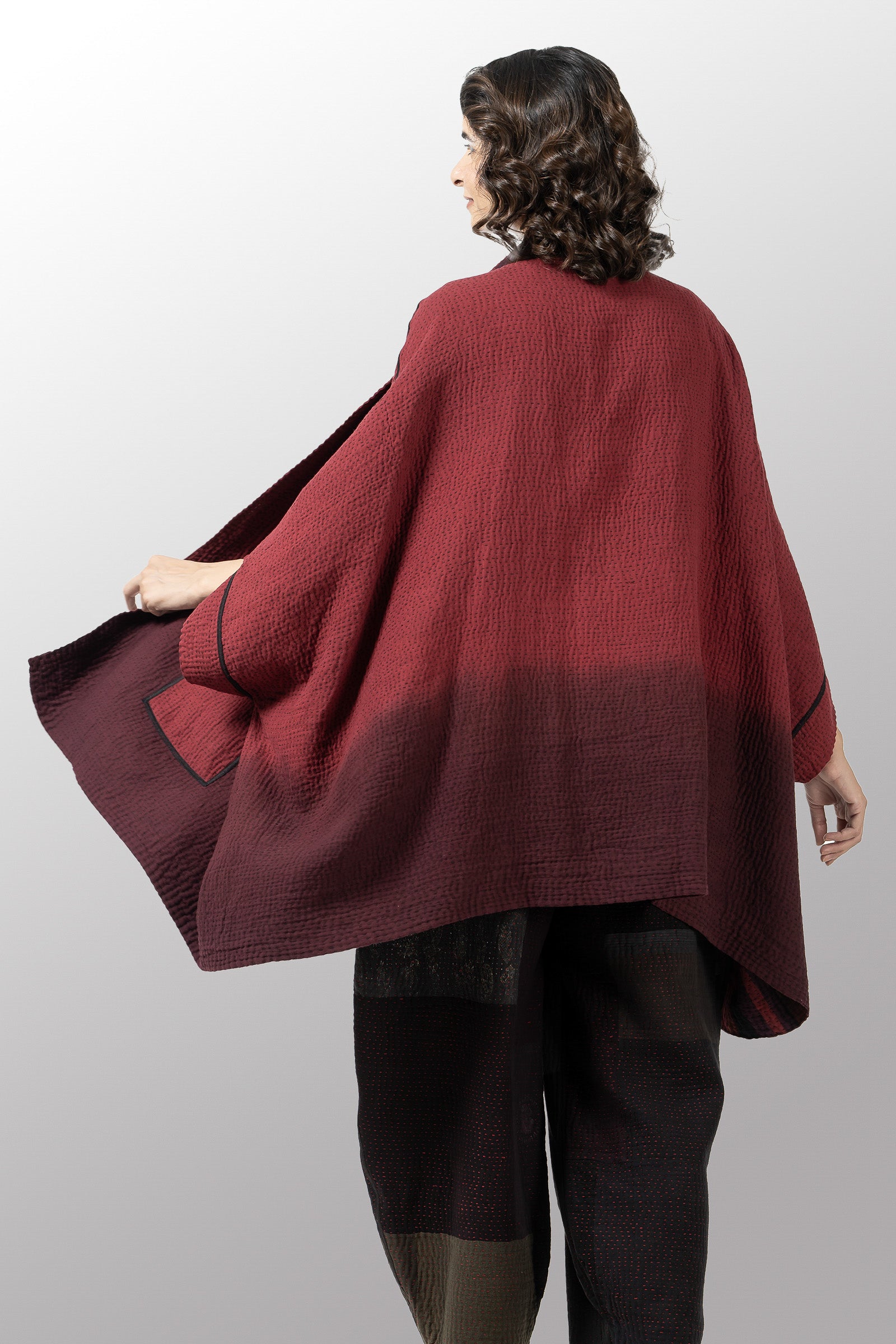 IKAT STRIPE KANTHA DOUBLE COLLAR PONCHO - is4323-DRD -