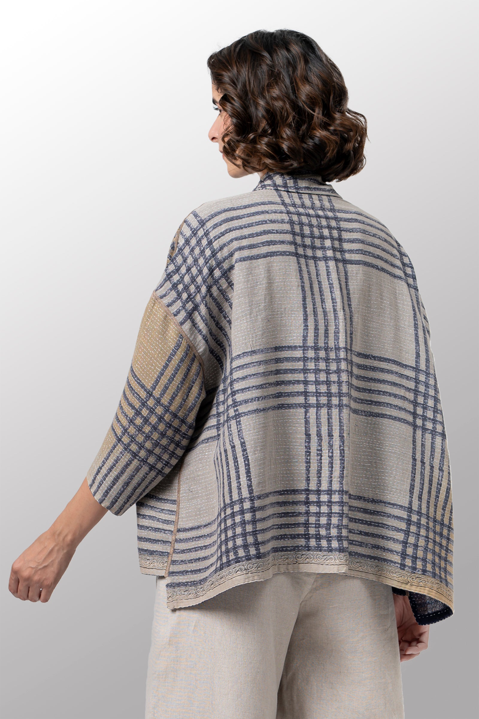 INDONESIAN PRINT VINTAGE INDIGO BACKING KANTHA CROPPED TENT SHIRT - bi2596-blu -