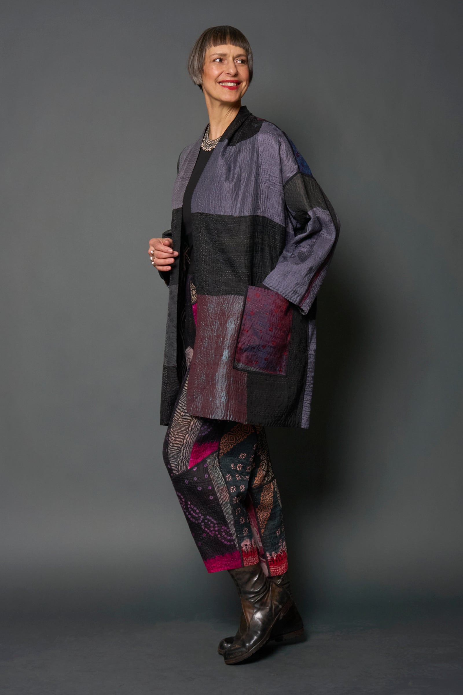 JACQUARD SILK KANTHA HAORI JACKET - js4068-blk -