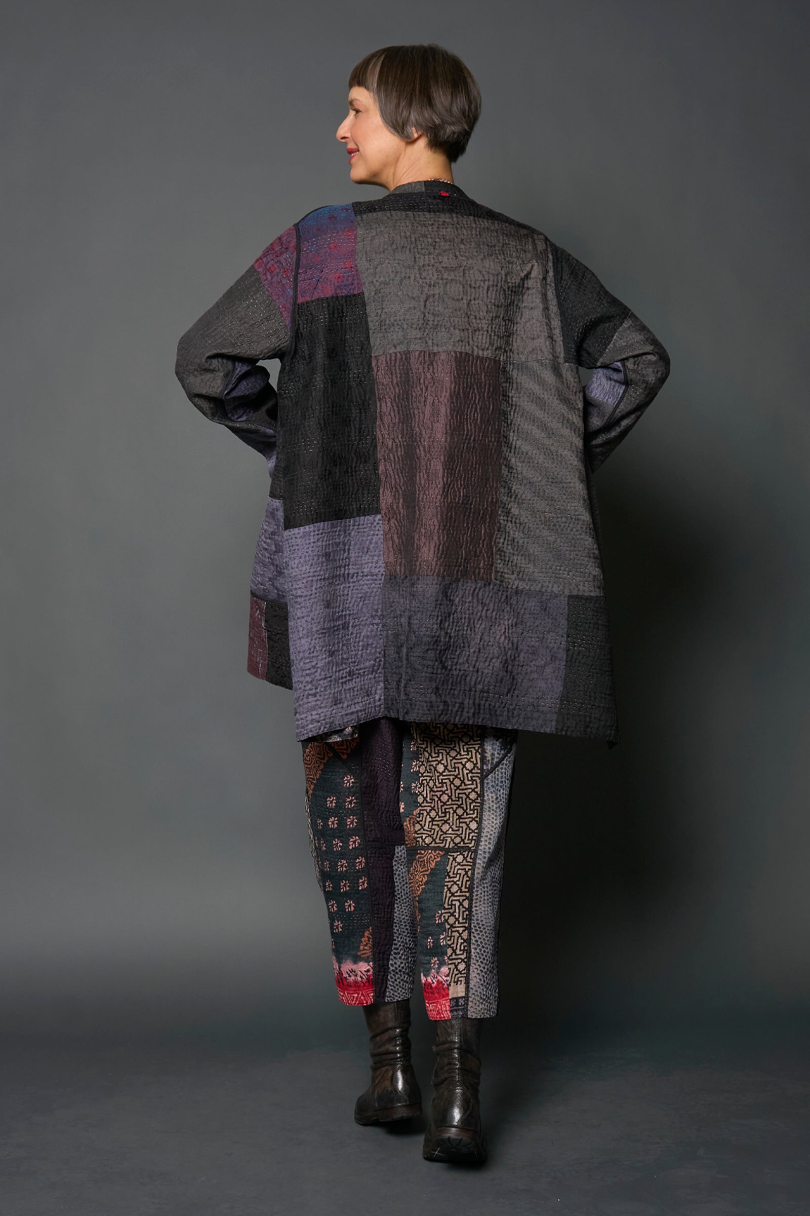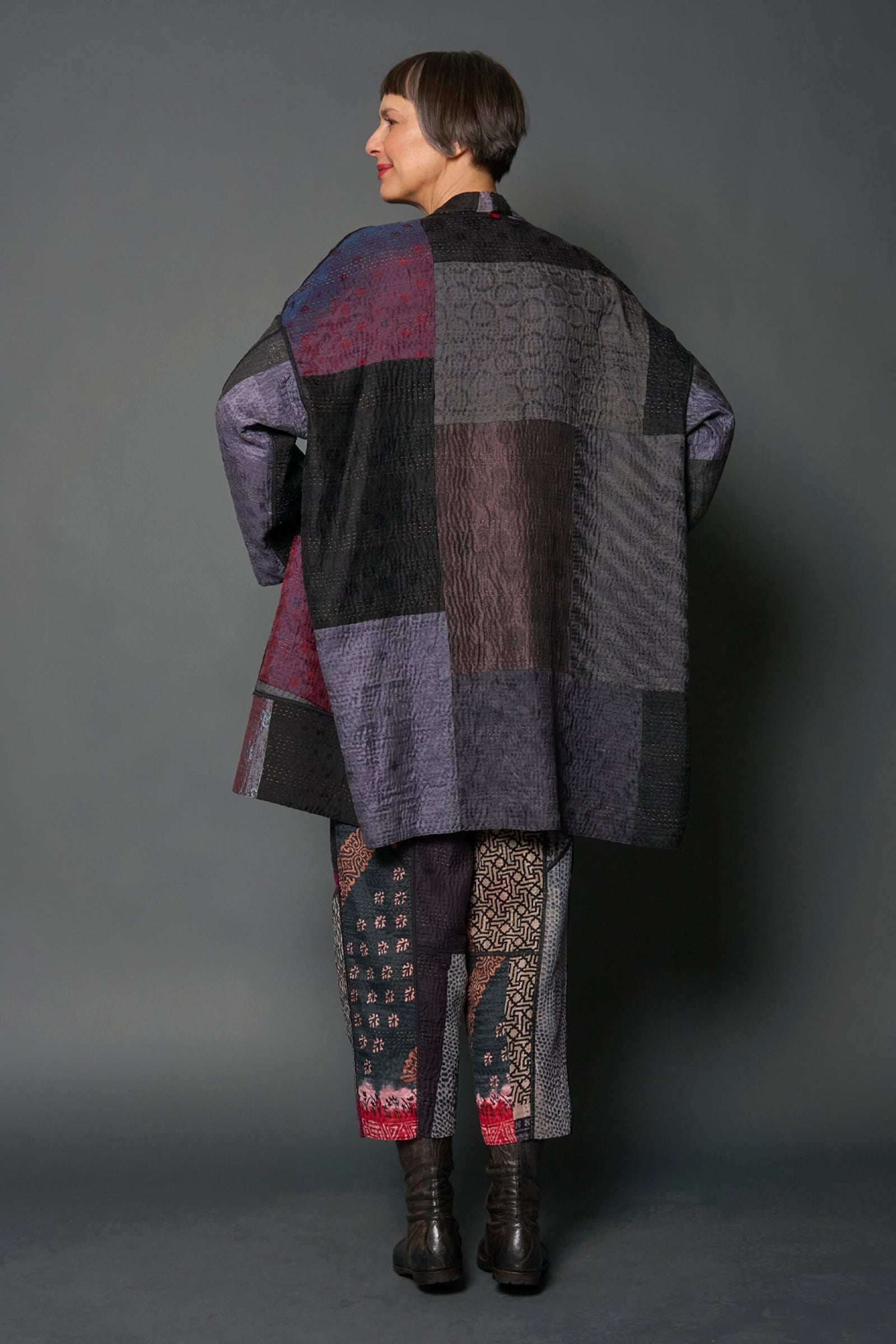 4 Layer Vintage Saris with Hand Stitches on Entire Garment - Reversible