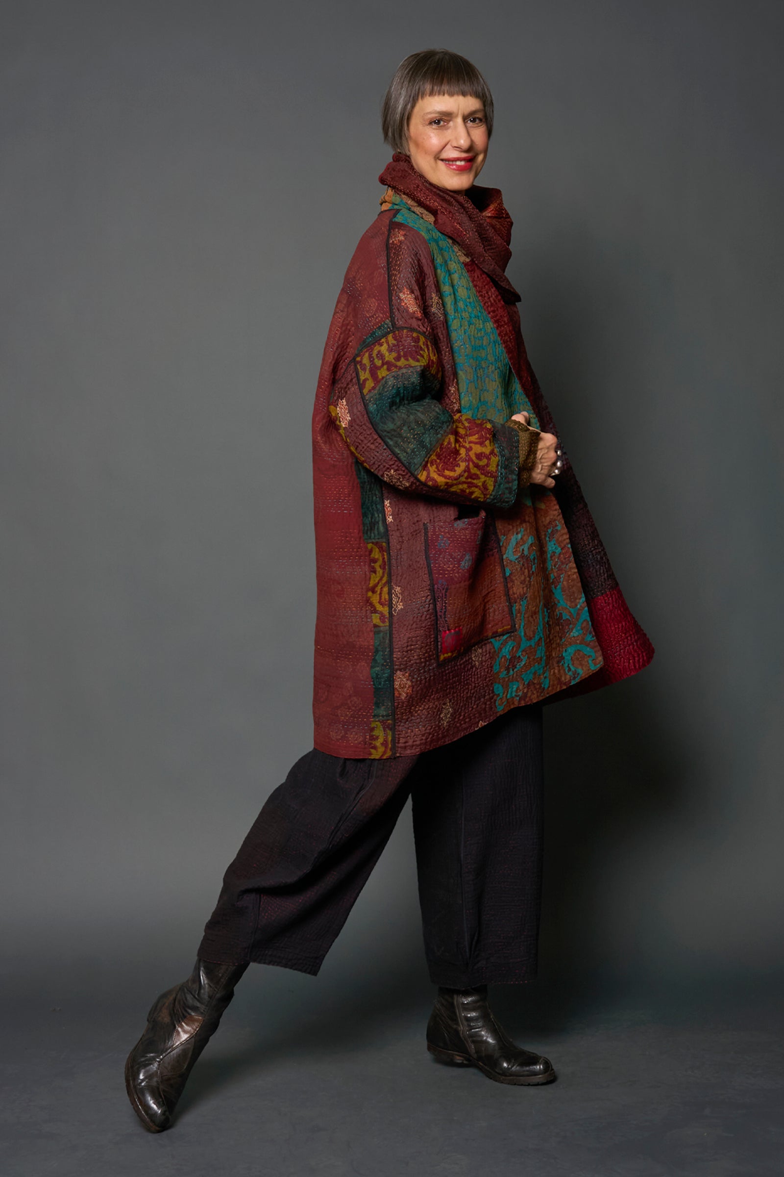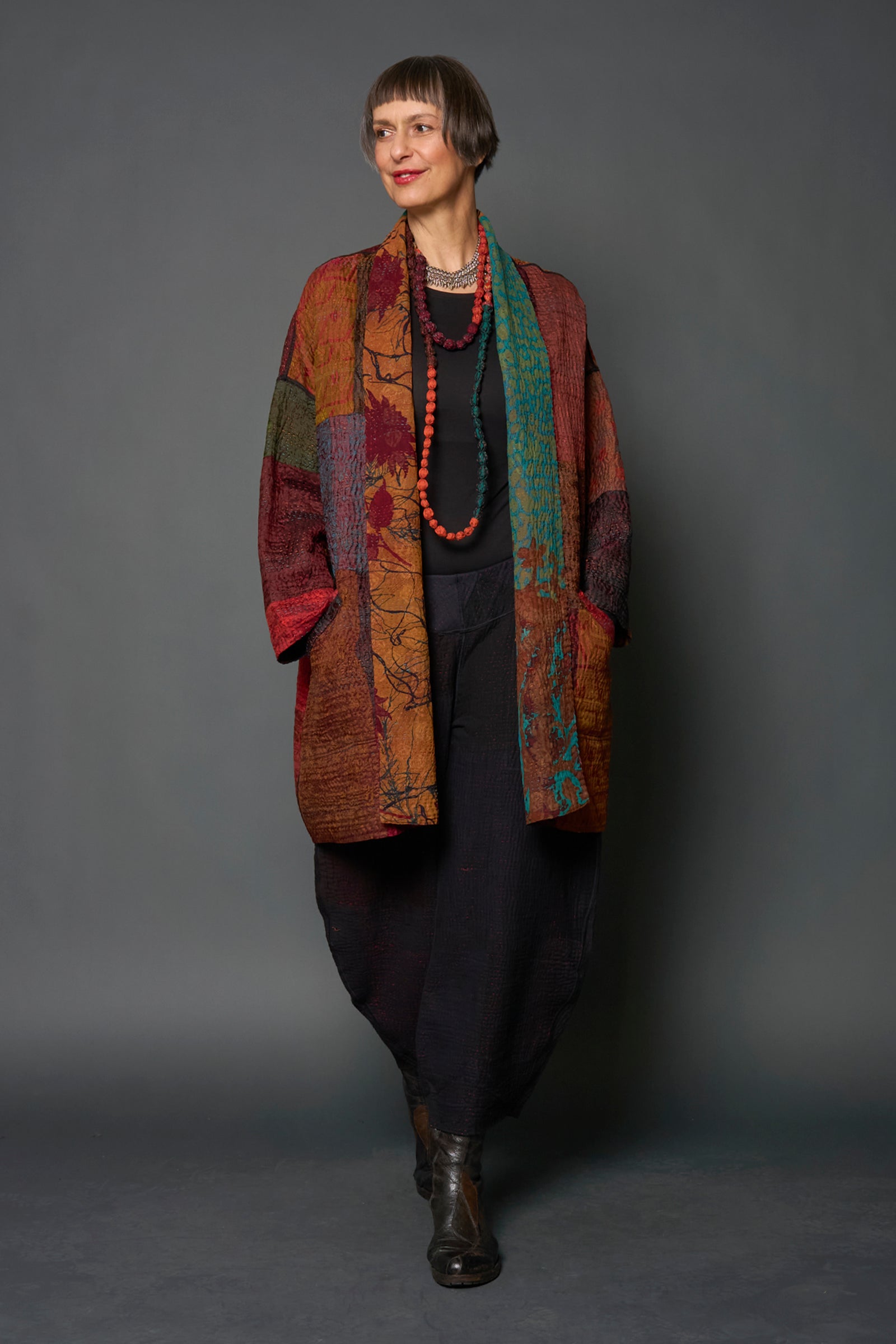 4 Layer Vintage Saris with Hand Stitches on Entire Garment - Reversible