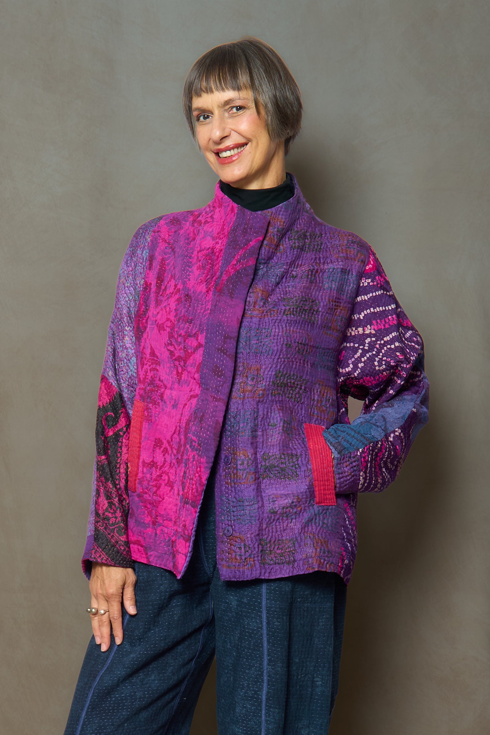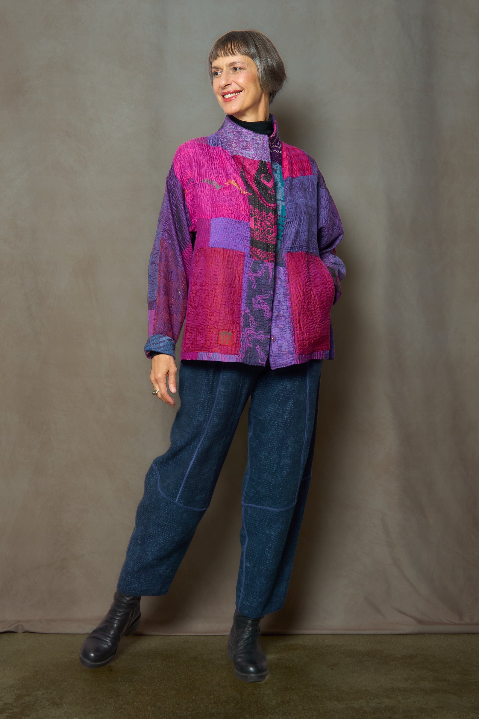 4 Layer Vintage Saris with Hand Stitches on Entire Garment - Reversible