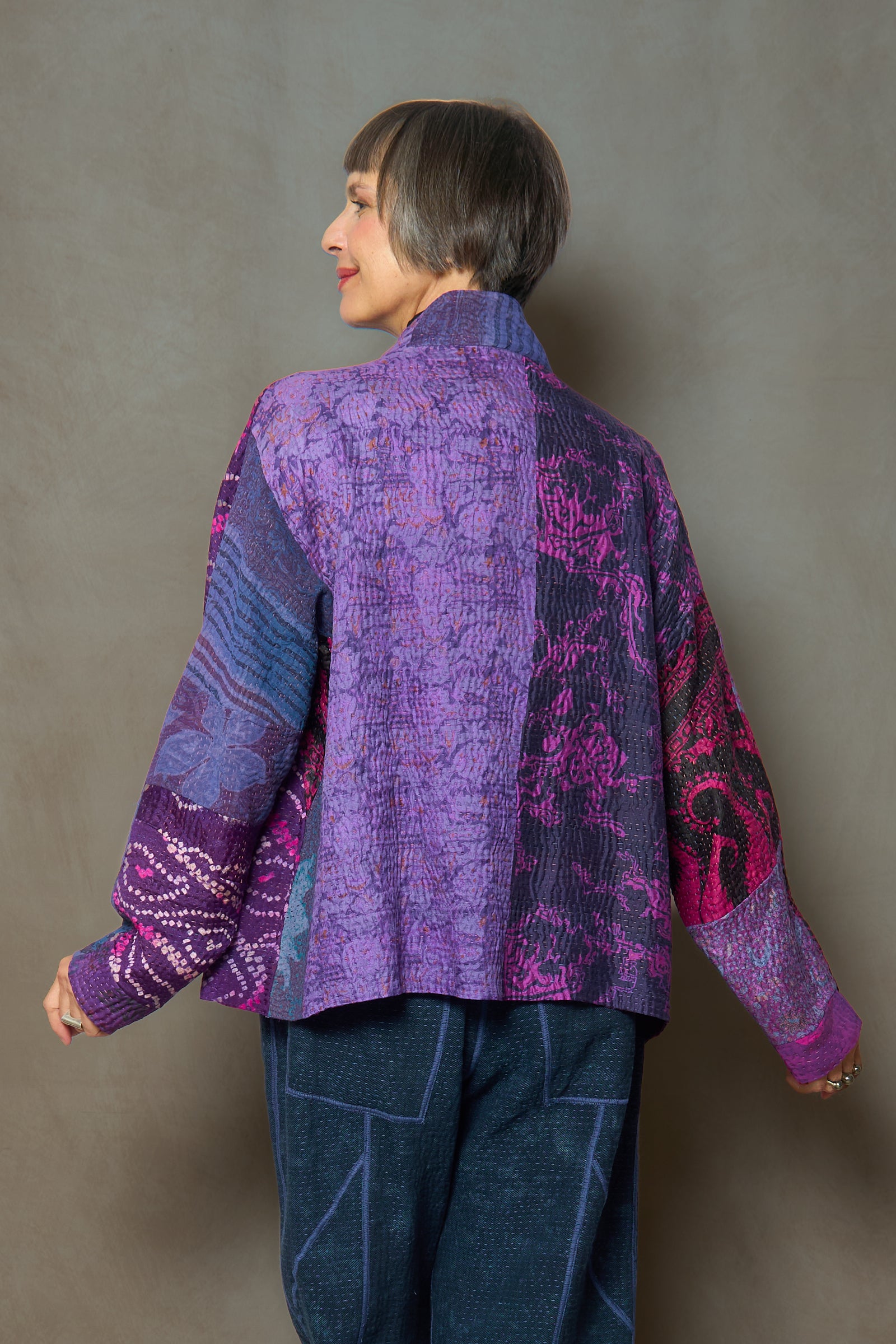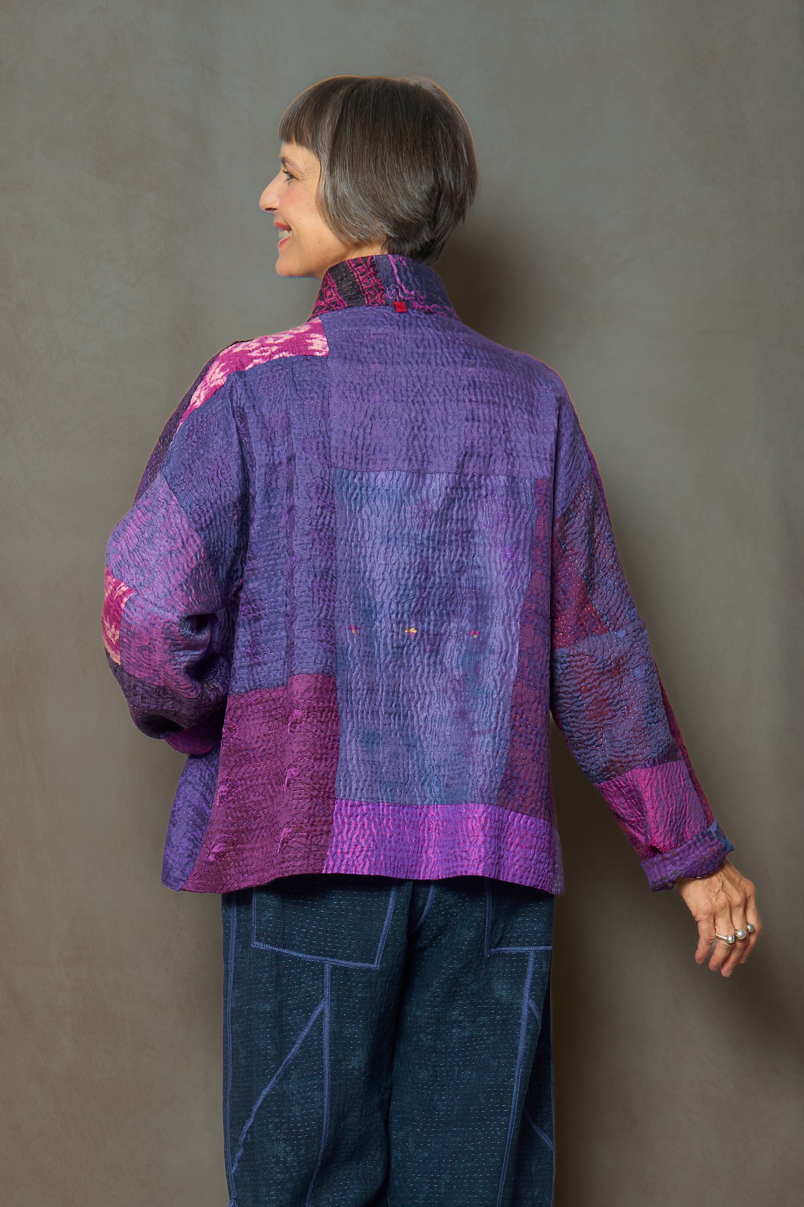 JACQUARD SILK KANTHA HIGH-NECK CROPPED JACKET - js4095-prp -