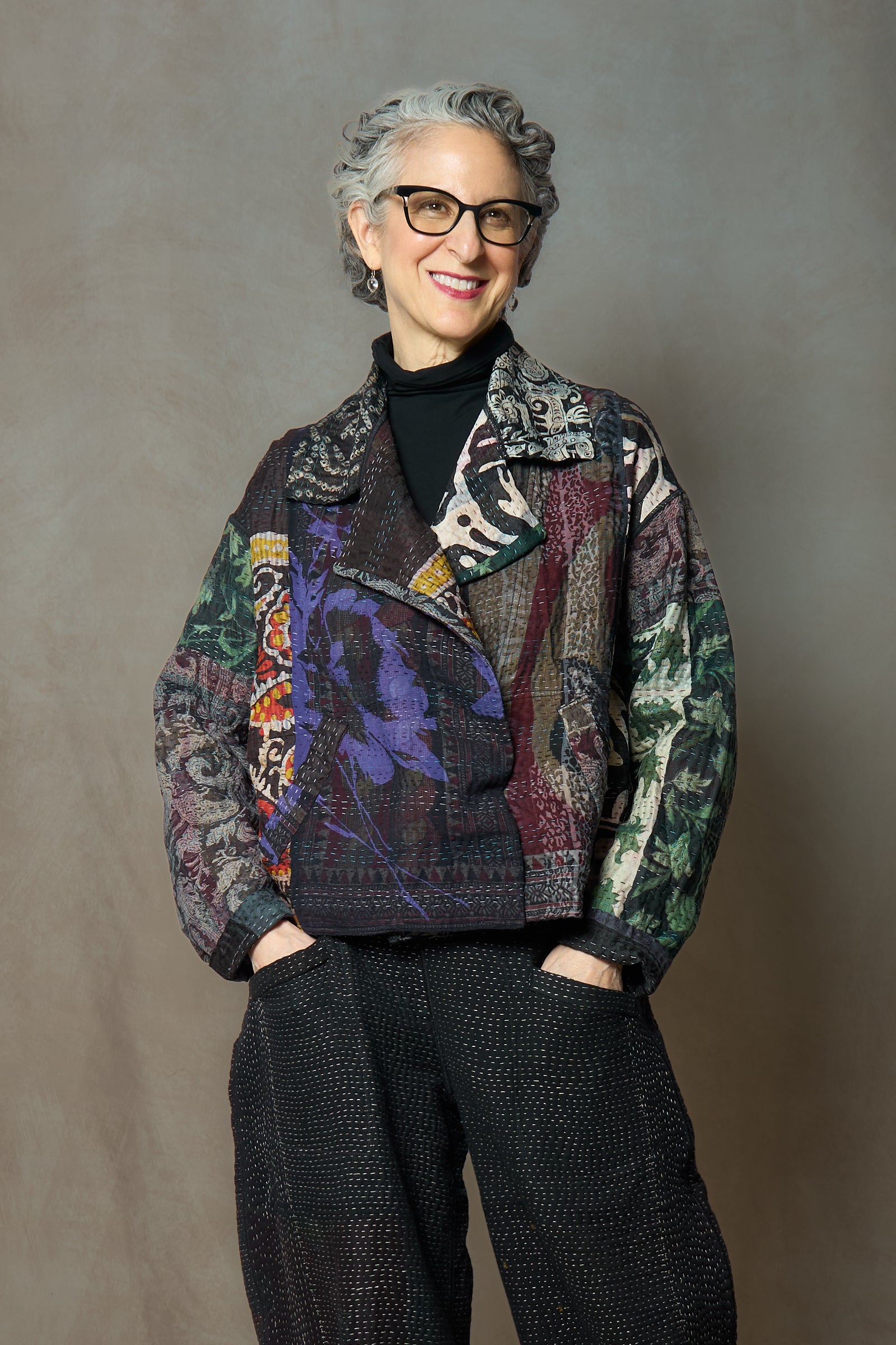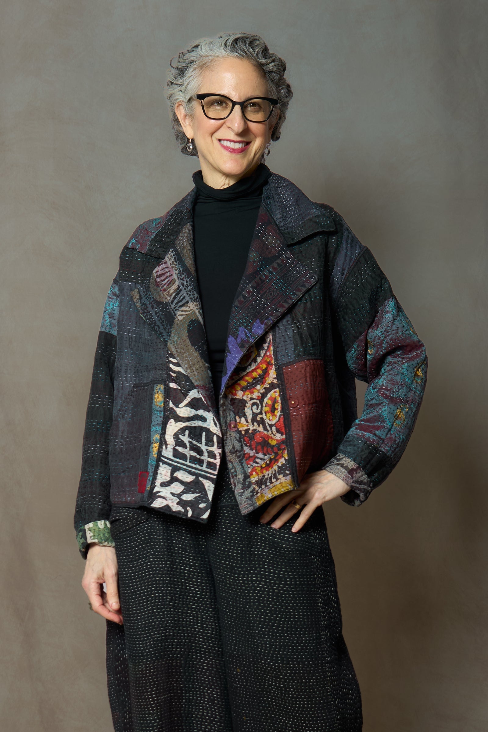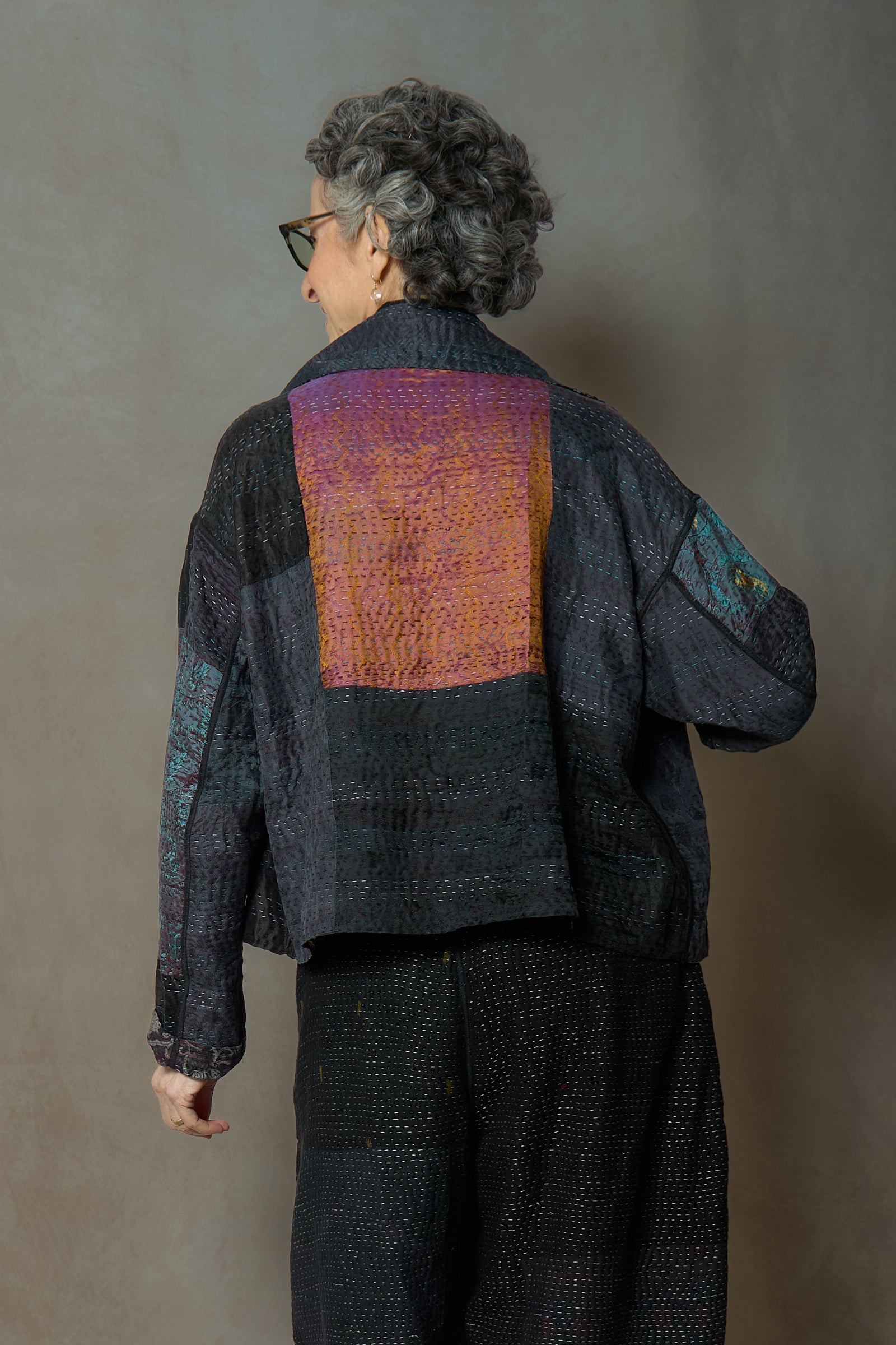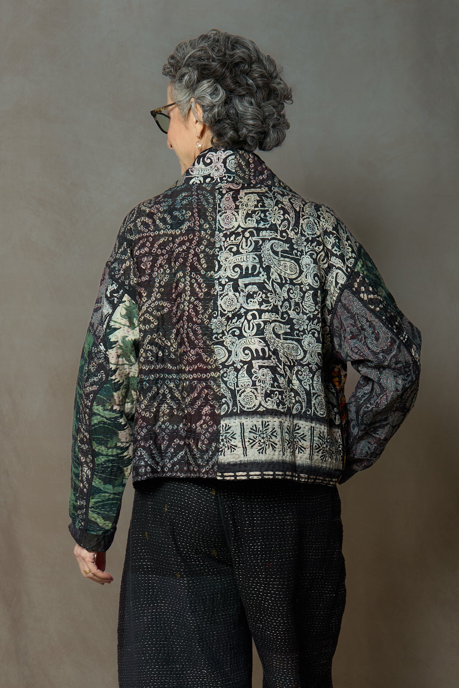 JACQUARD SILK KANTHA NEW LAPELED SHORT JACKET - js4j101-blk -
