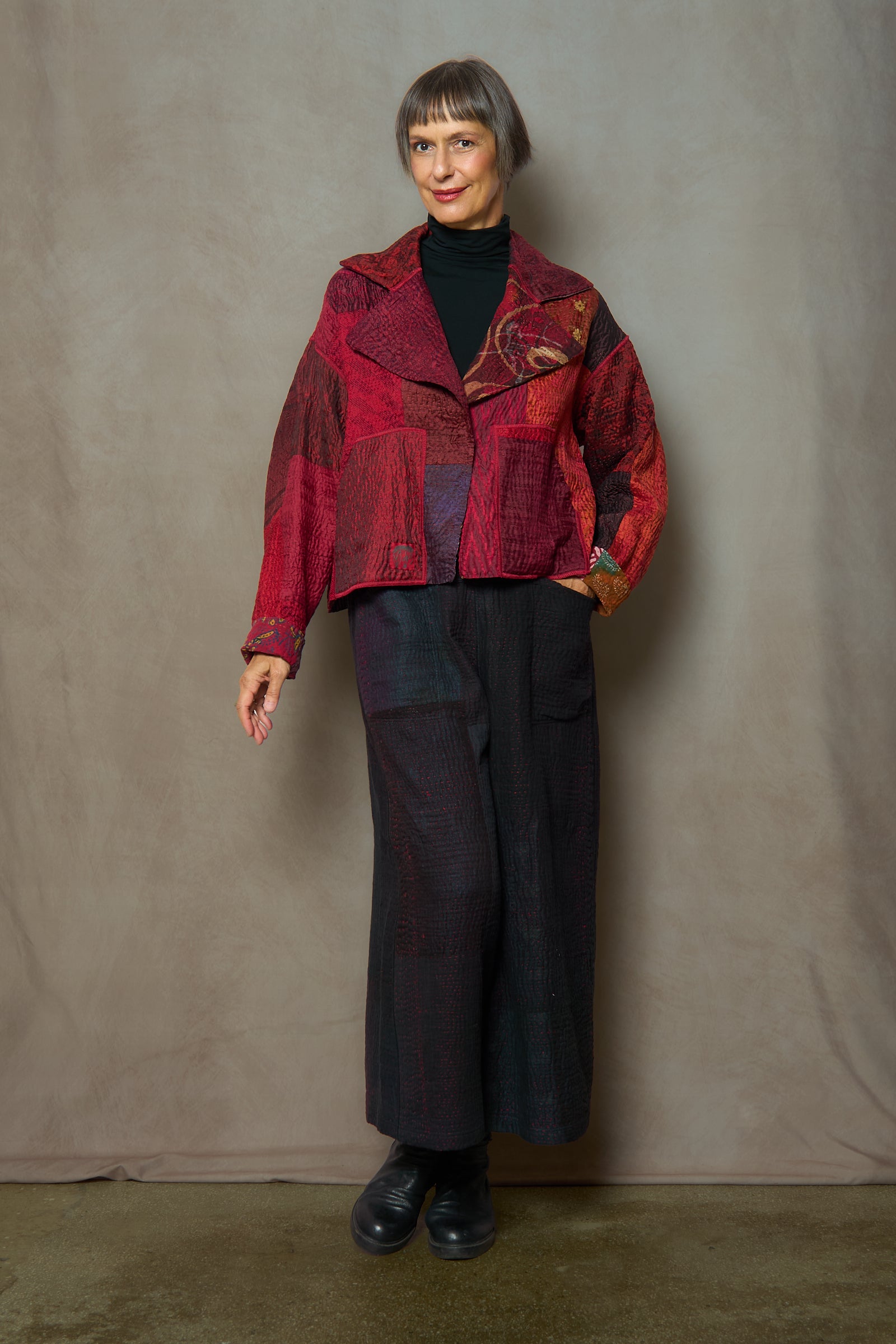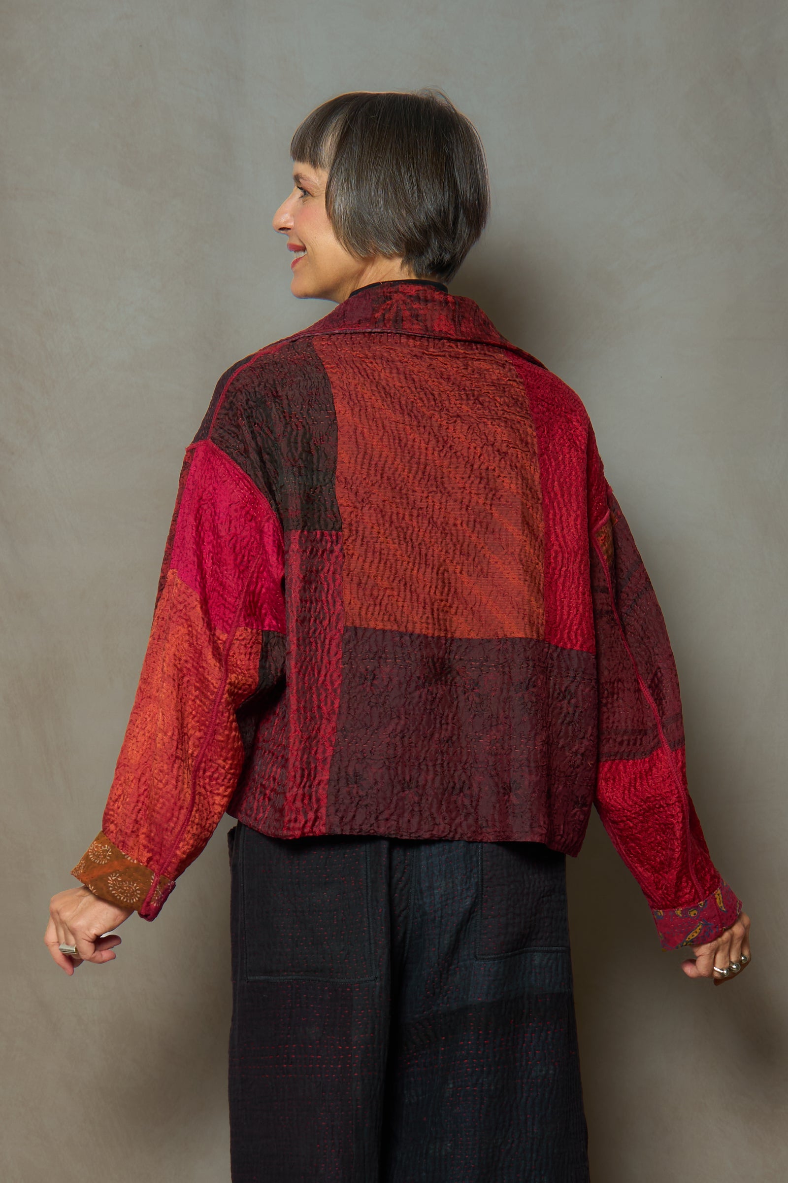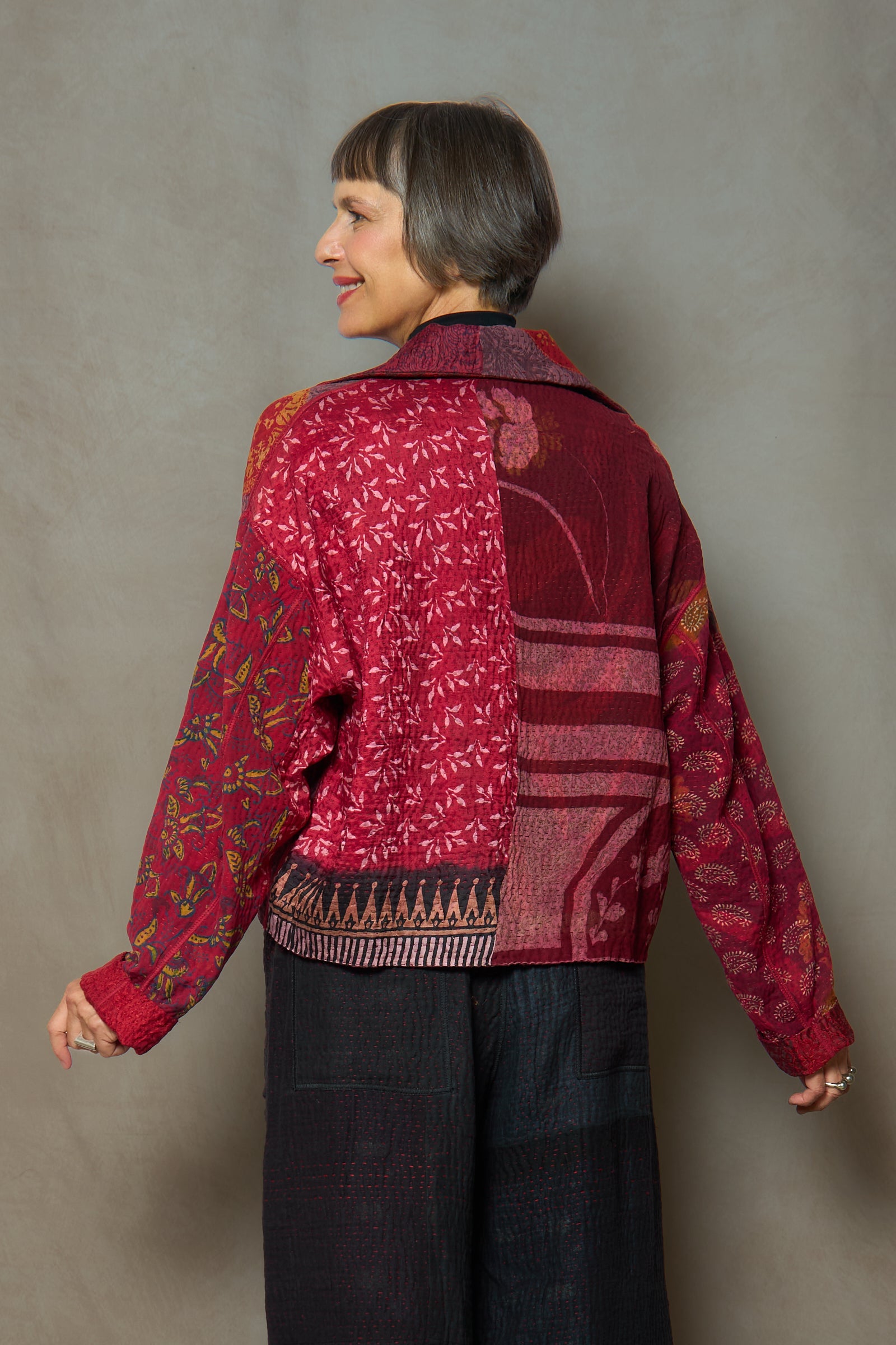 JACQUARD SILK KANTHA NEW LAPELED SHORT JACKET - js4j101-mar -