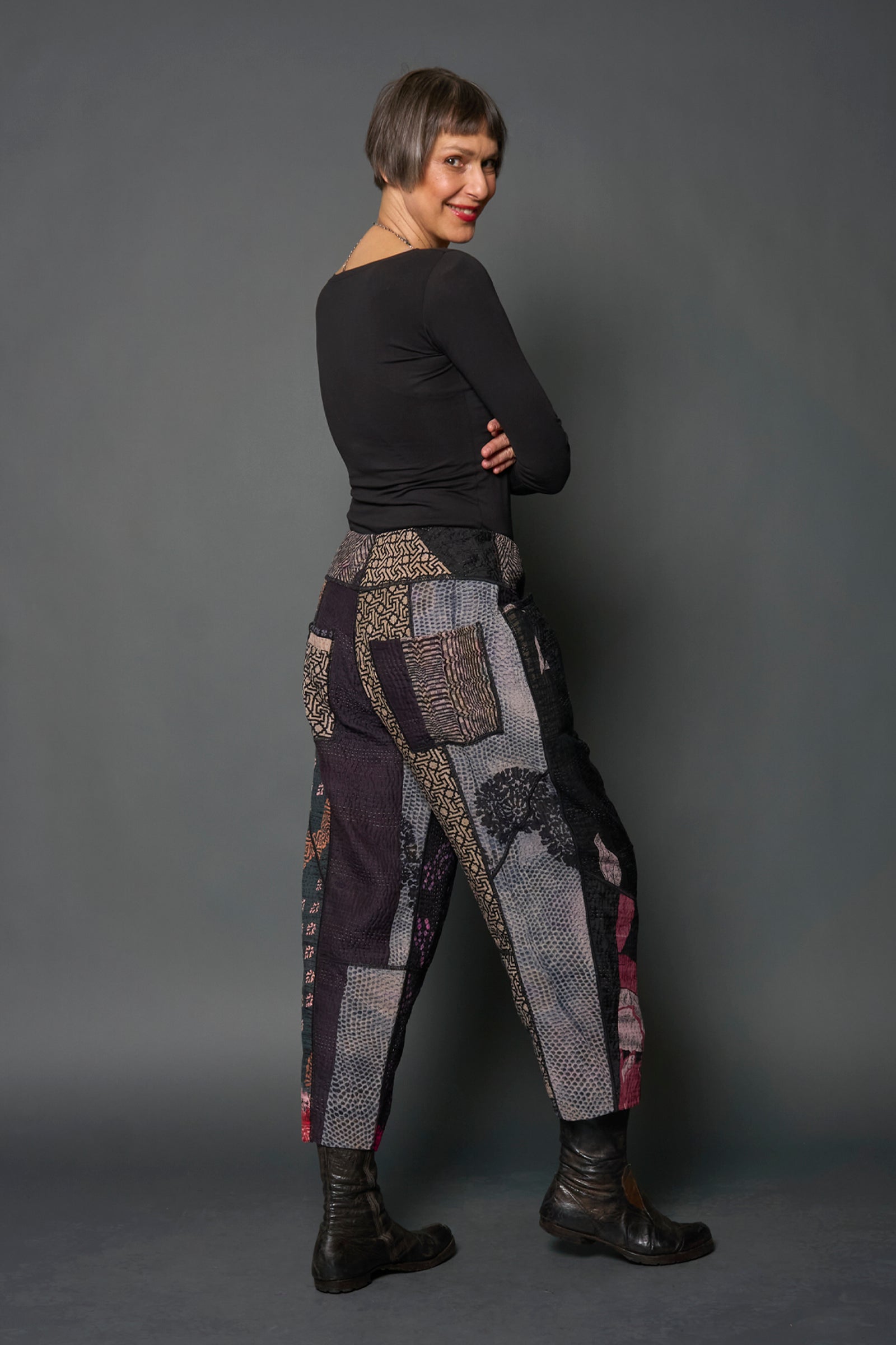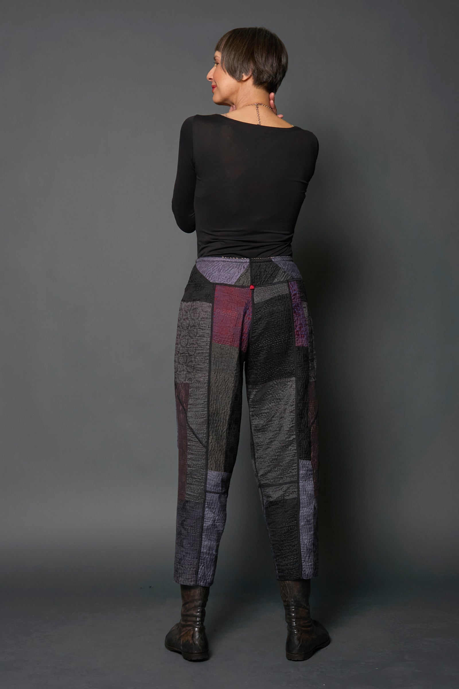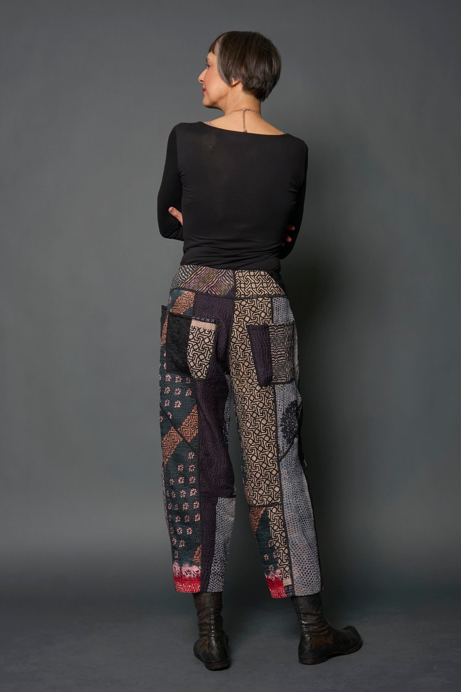 JACQUARD SILK KANTHA PANELED LANTERN PANTS - js4675-blk -