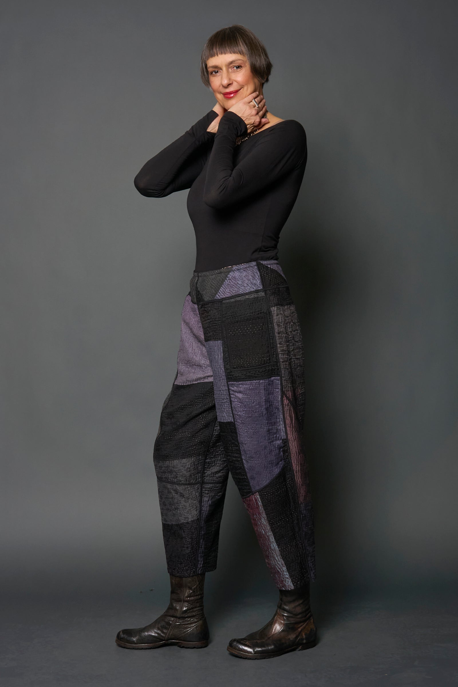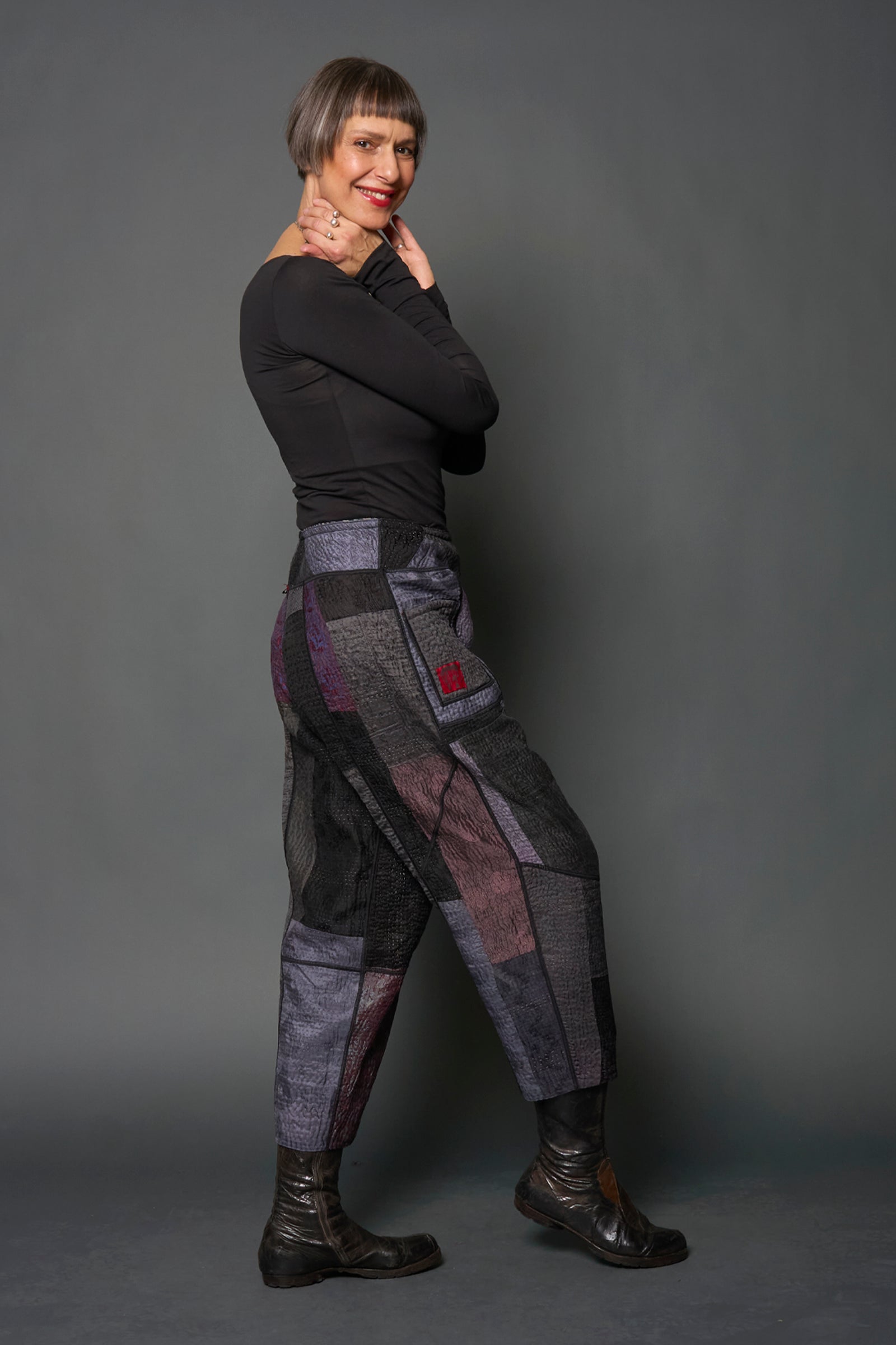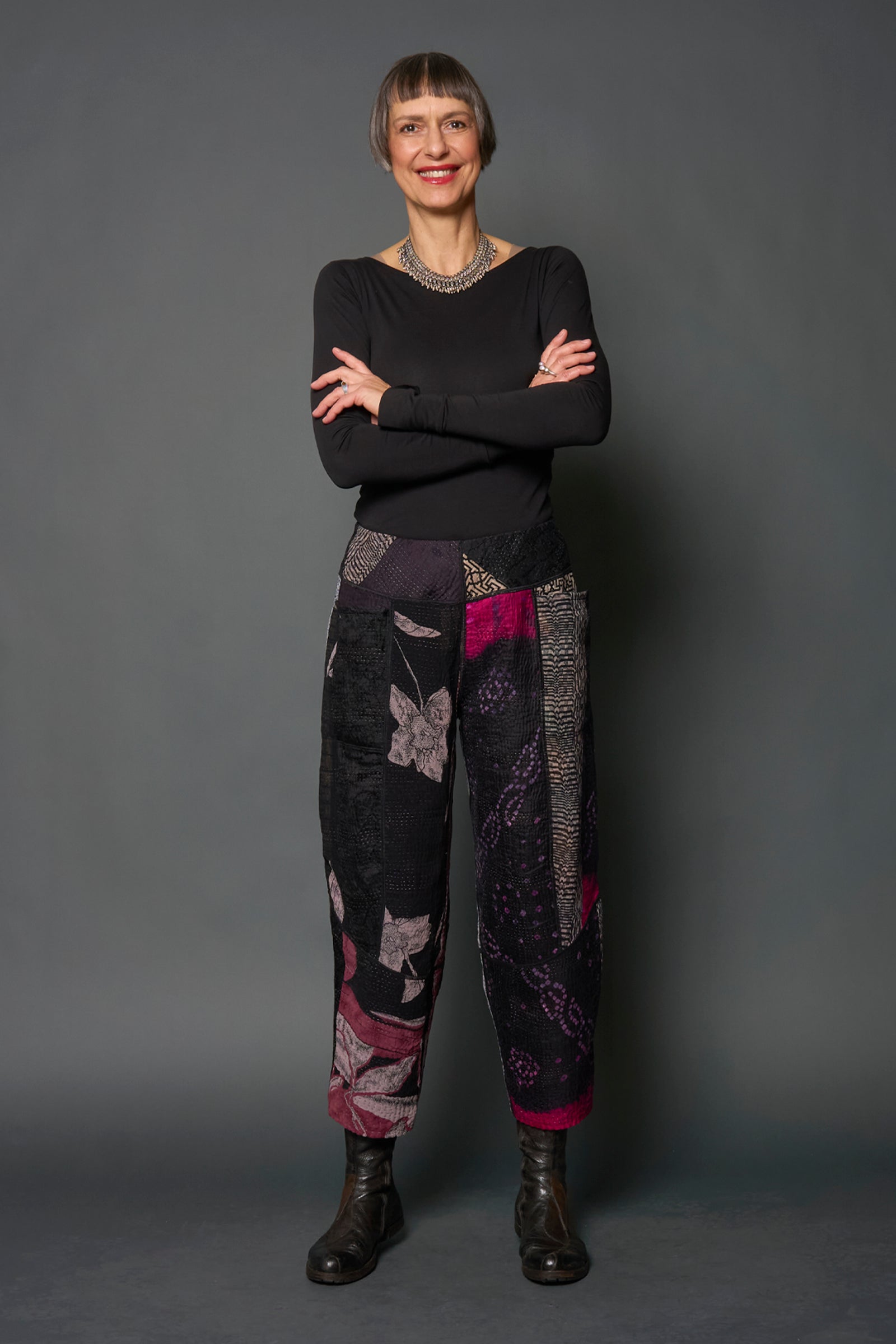JACQUARD SILK KANTHA PANELED LANTERN PANTS - js4675-blk -