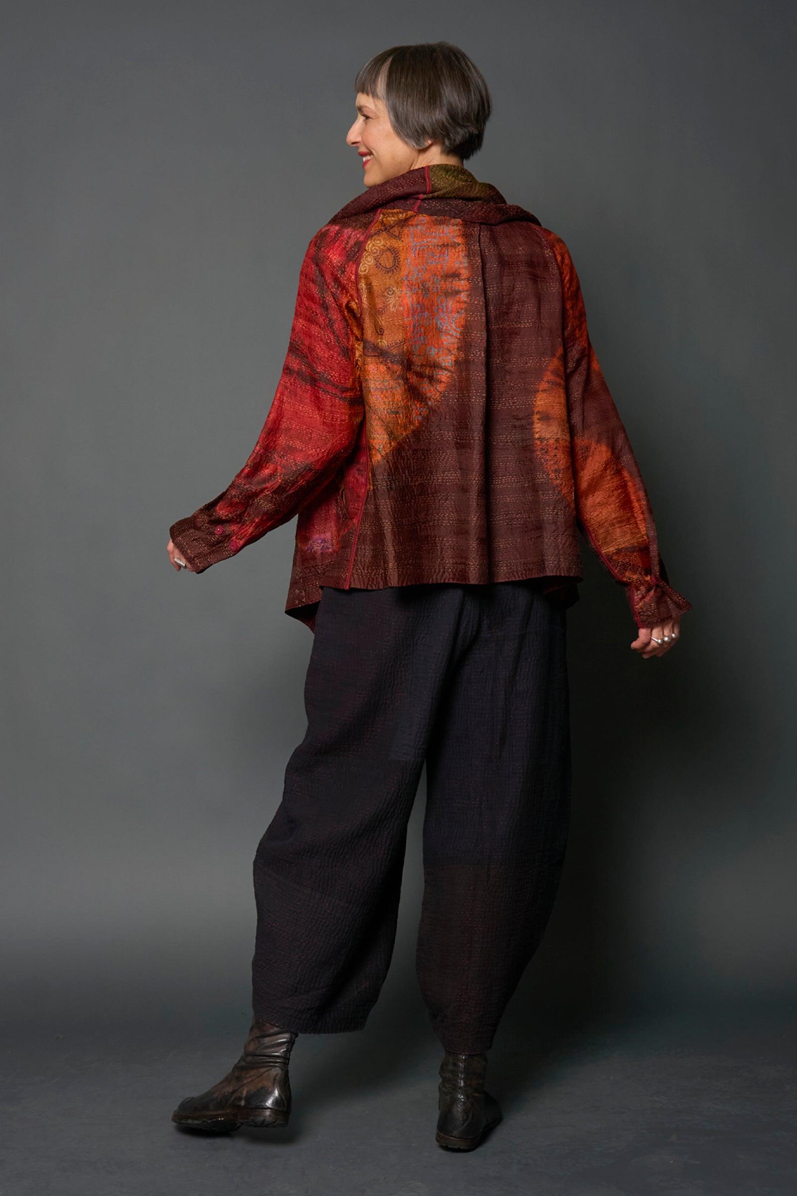 2 Layer Vintage Saris with Hand Stitches on Entire Garment - Reversible