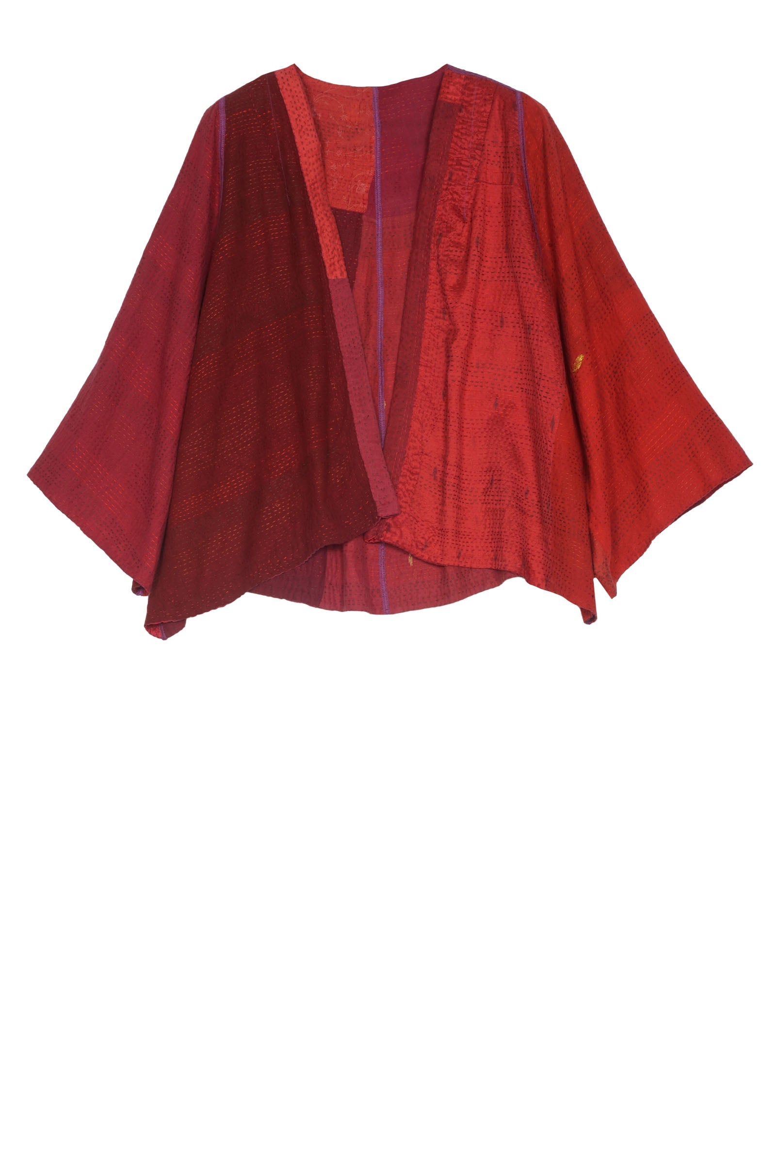 JAIPUR PATCH KANTHA BELL SHAPE JKT - jp2048-red -