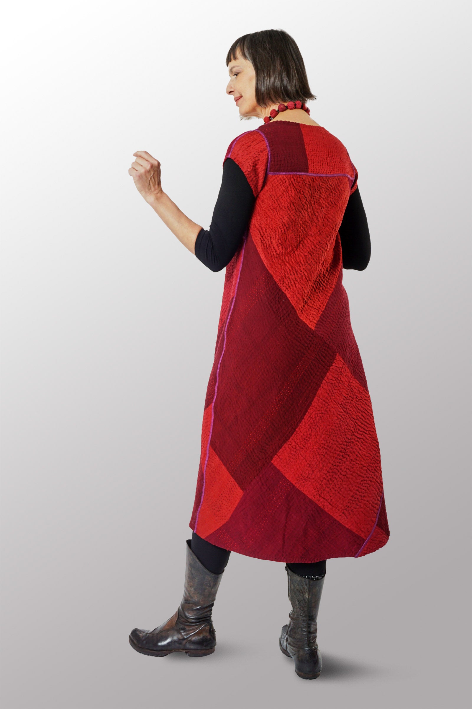4 Layer Vintage Saris with Hand Stitches on Entire Garment - Reversible