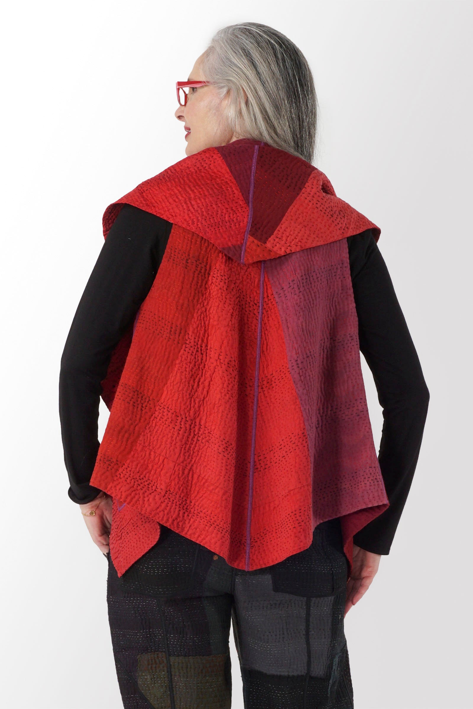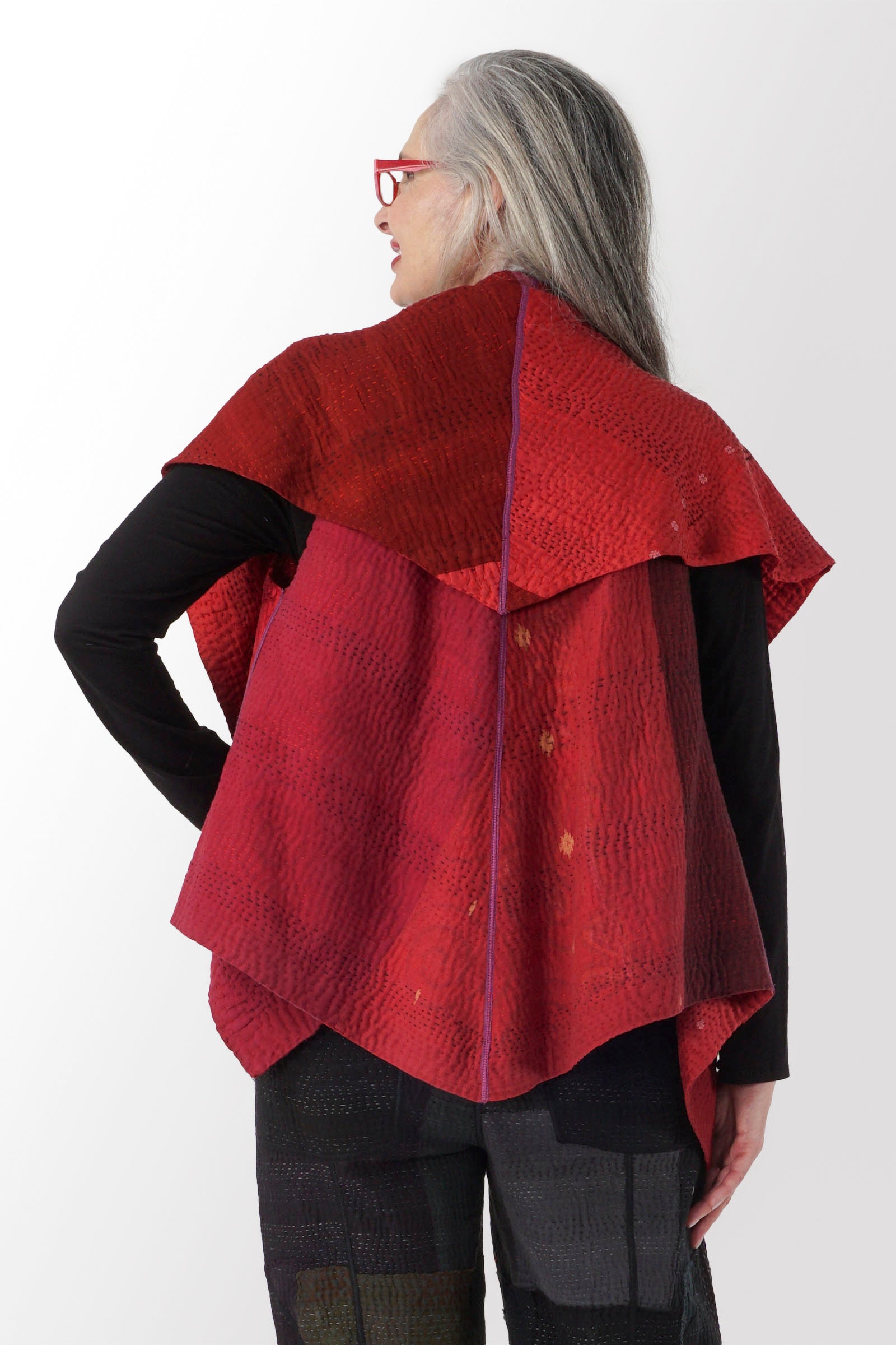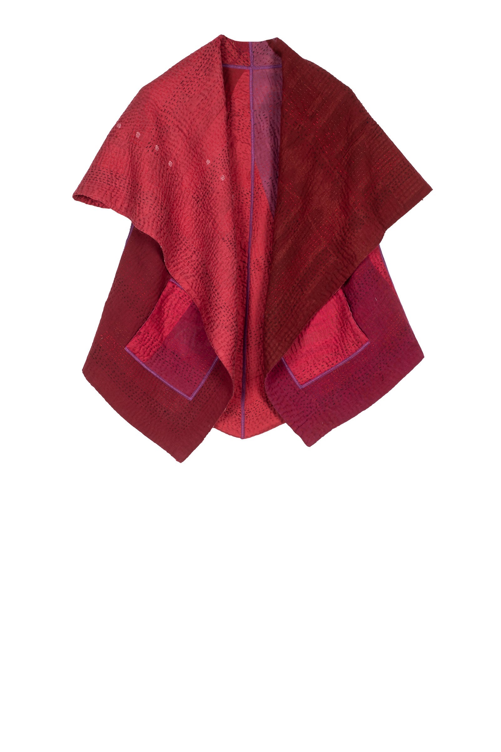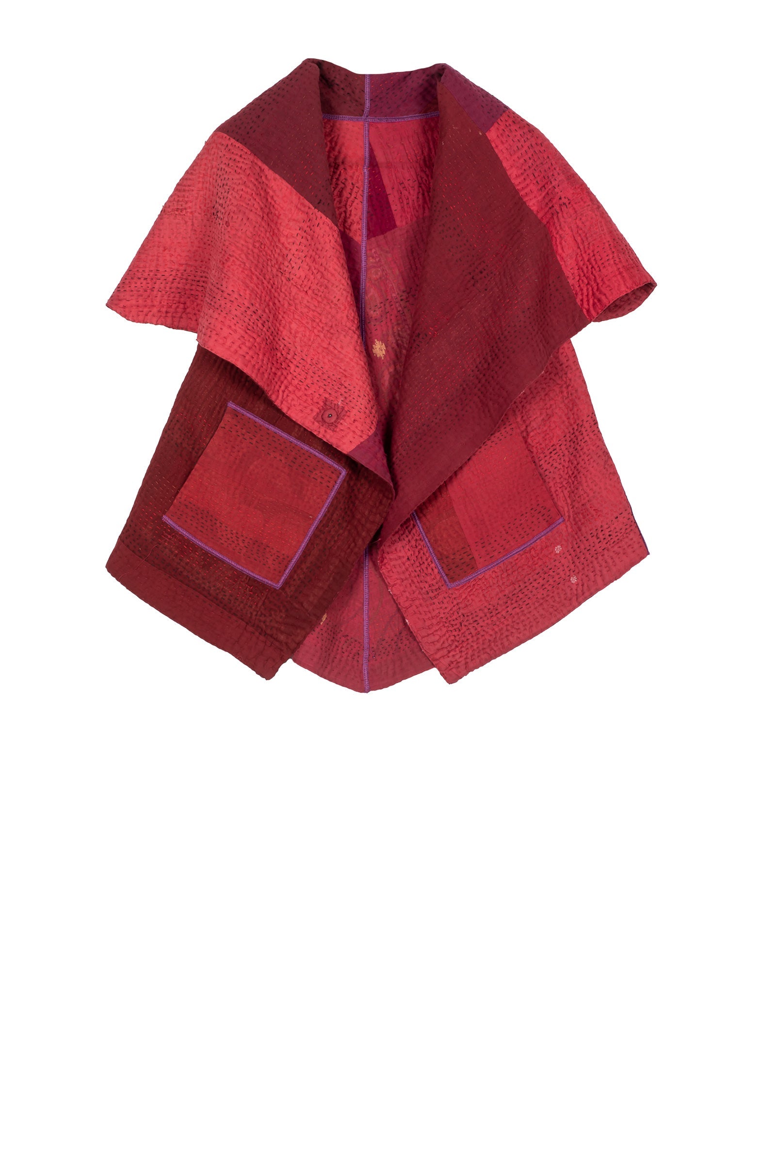 JAIPUR PATCH KANTHA CIRCULAR SHORT VEST - jp4202-red -