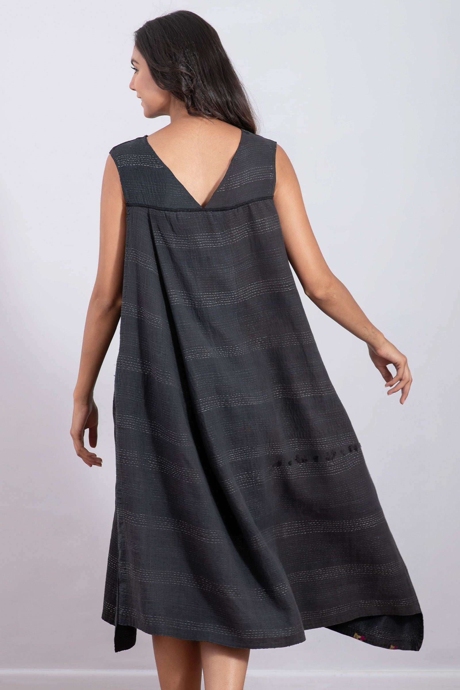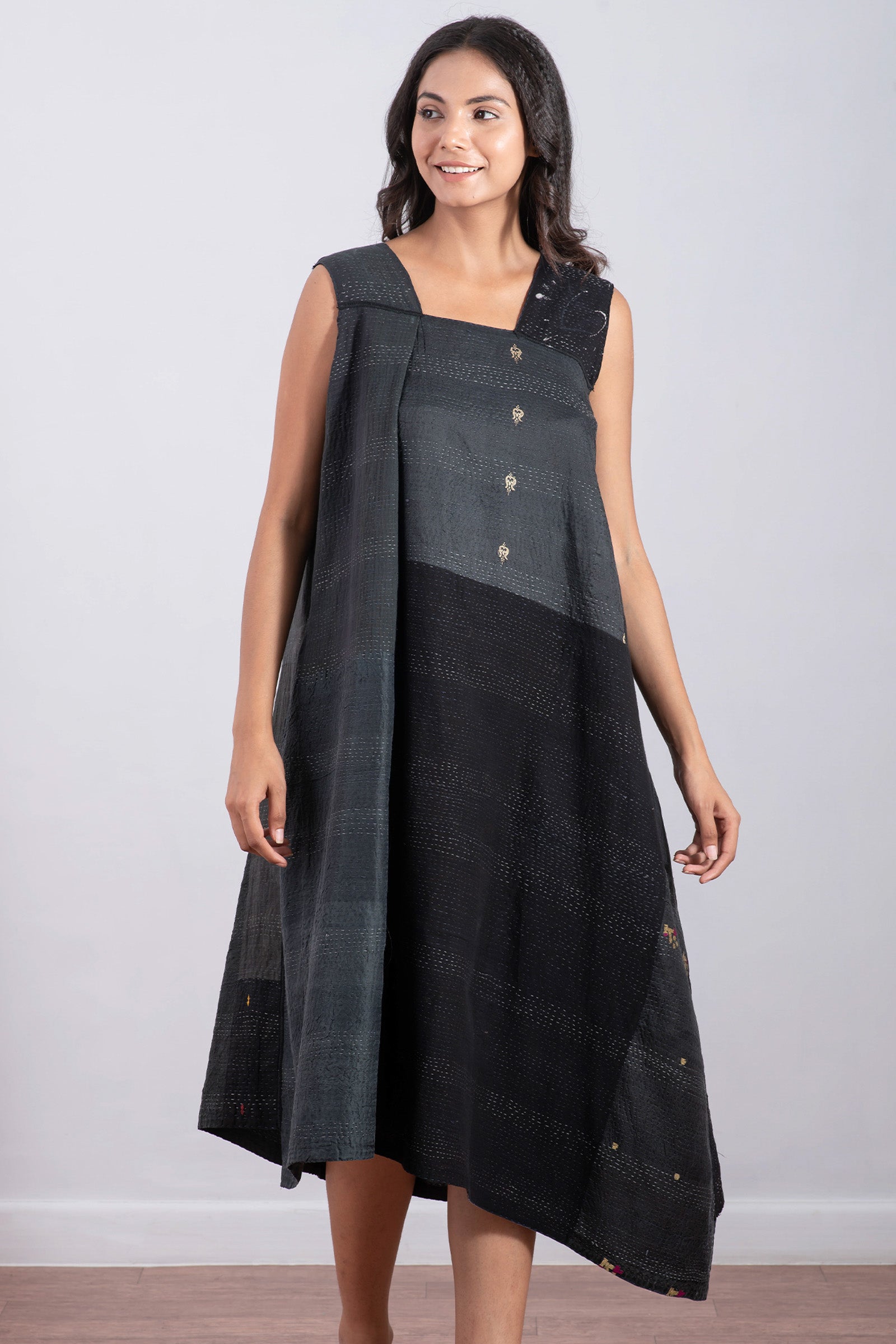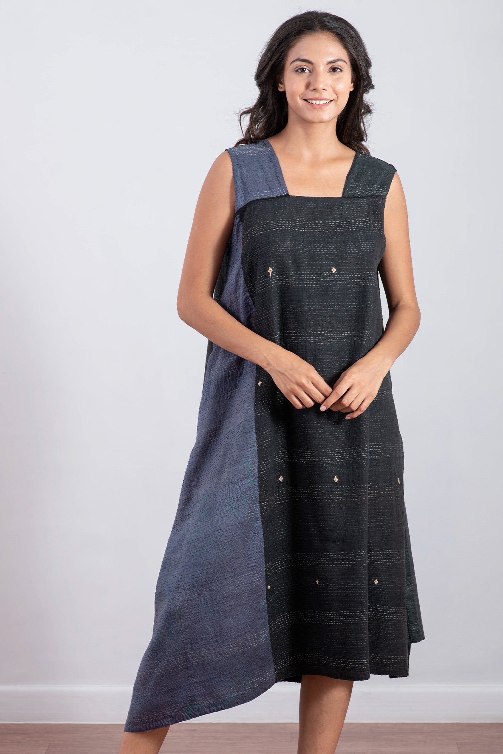 JAIPUR PATCH KANTHA JUMPER DRESS - jp2414-blk -