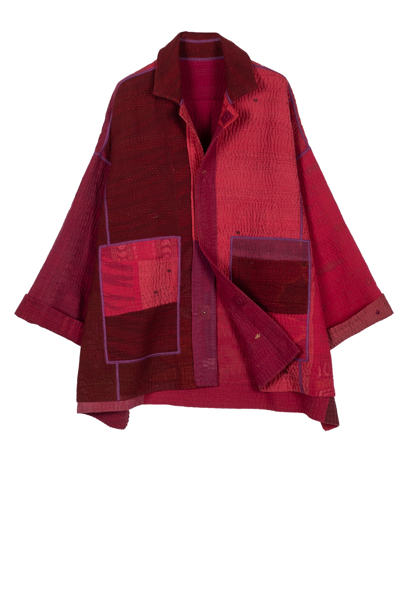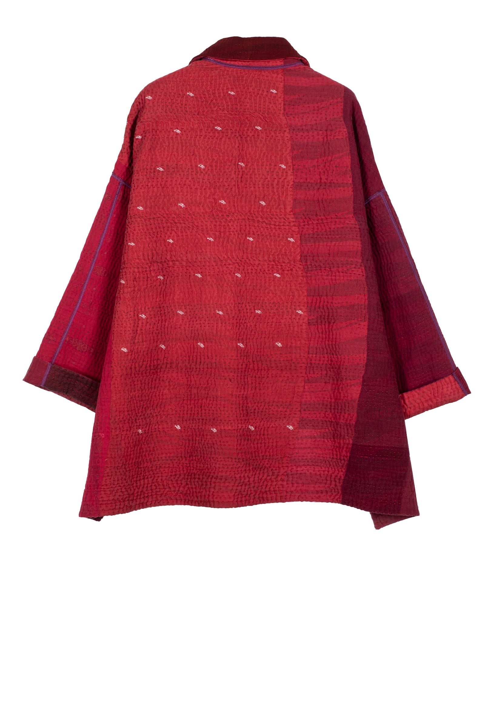 JAIPUR PATCH KANTHA OVERSIZED MINI COAT - jp4332-red -