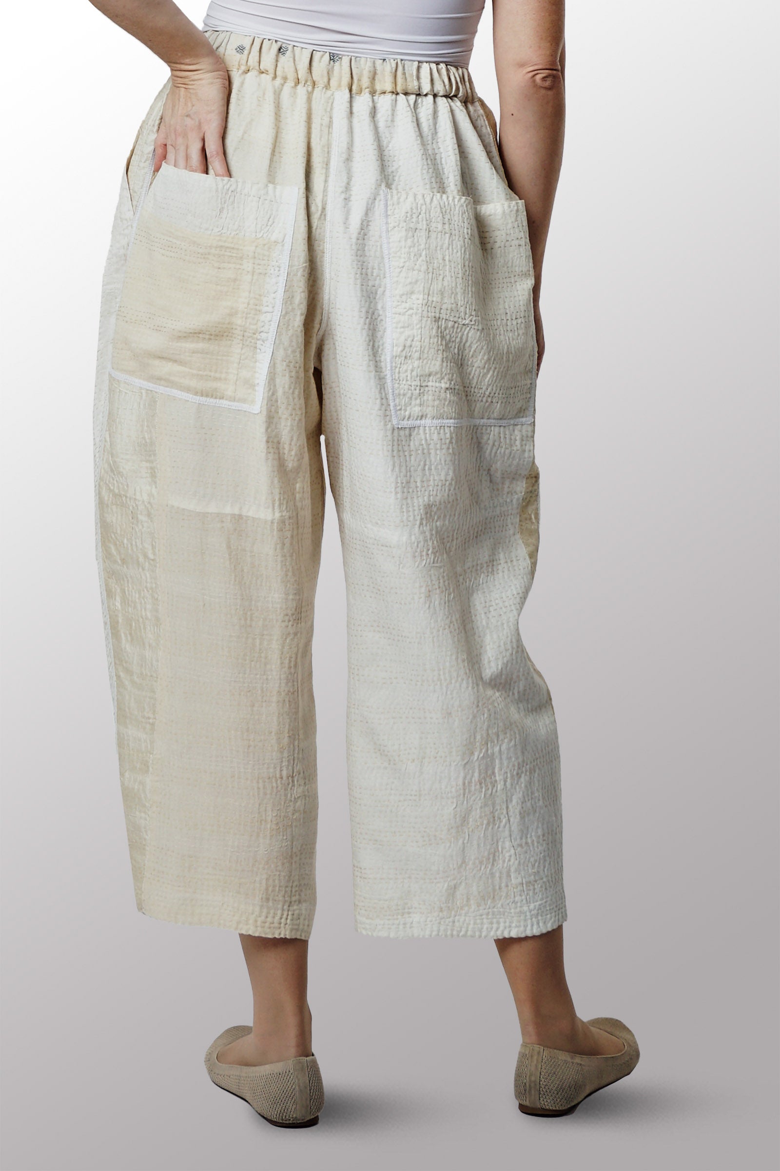 JAIPUR WHITE KANTHA BAGGY PANTS - jw2642-ivy -