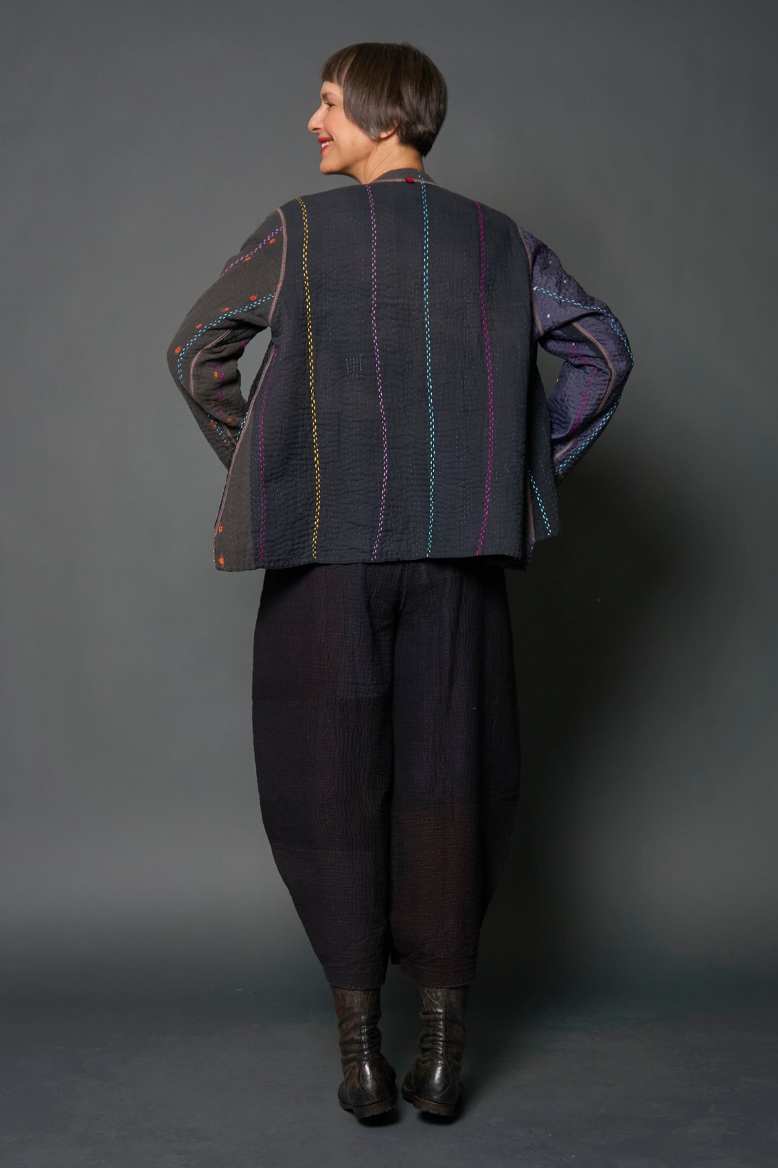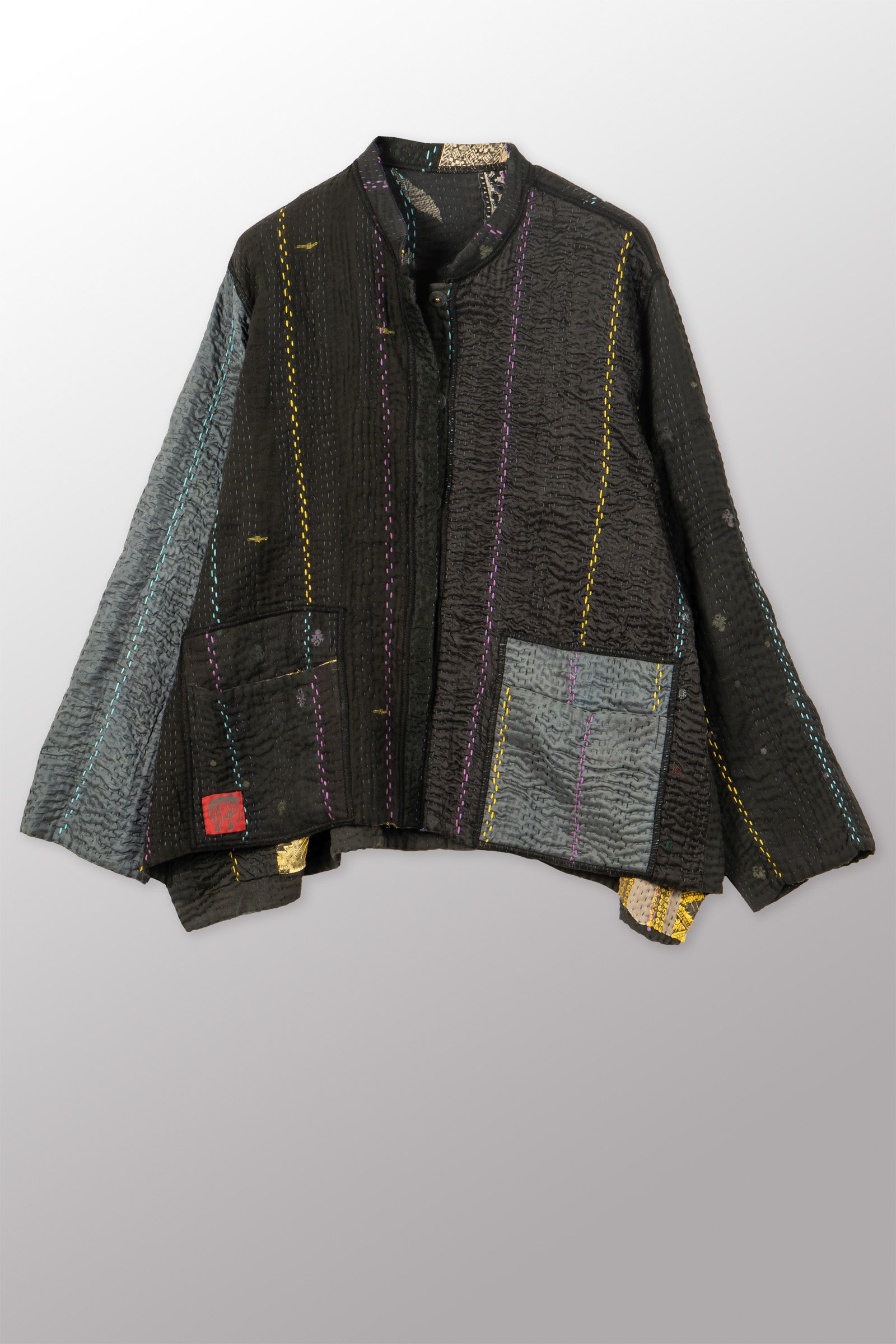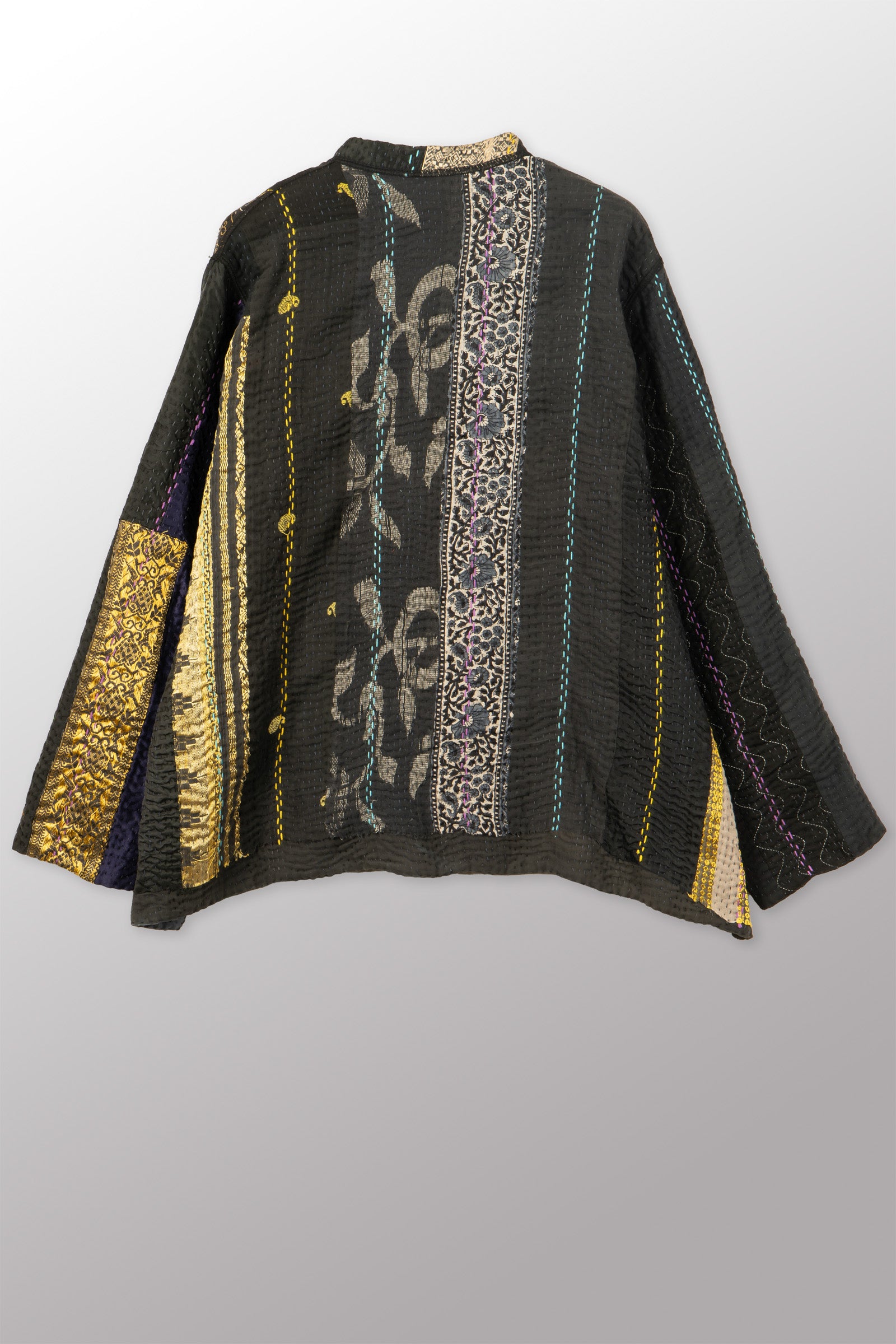 JEWEL WOVEN WITH VERTICAL PATCH KANTHA KAFTAN JACKET SHORT - jv4088-blk -