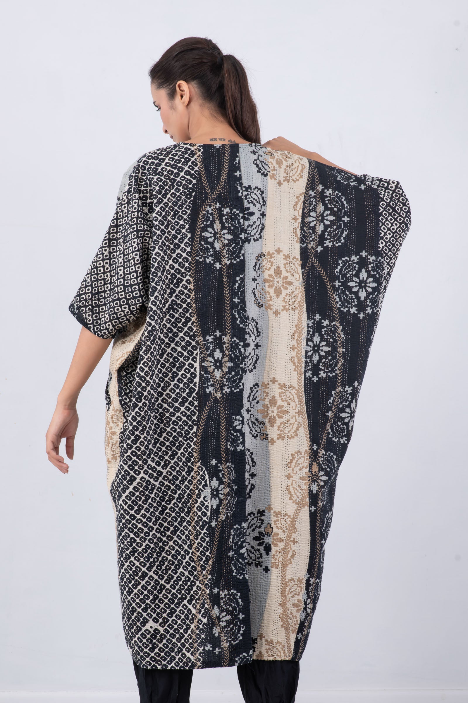 KIMONO COTTON KANTHA DOLMAN MAXI - kc2440-blk -