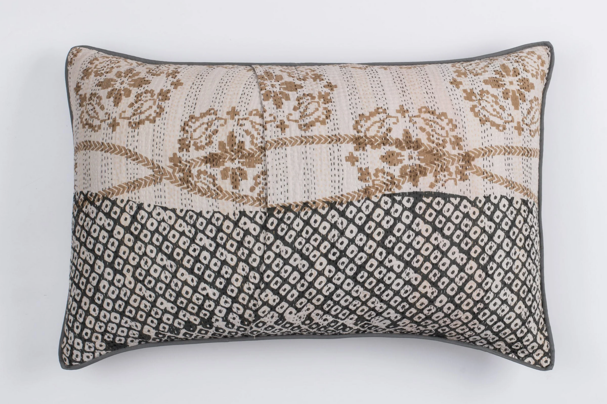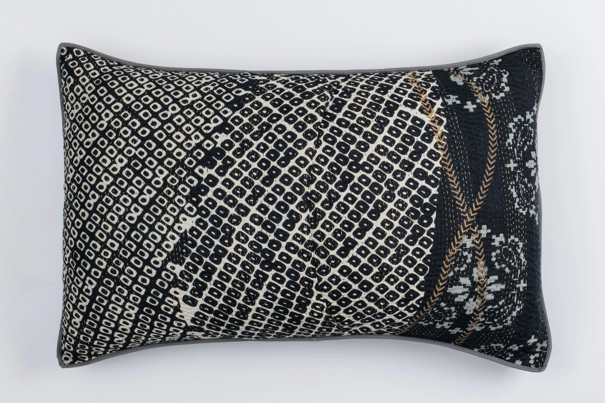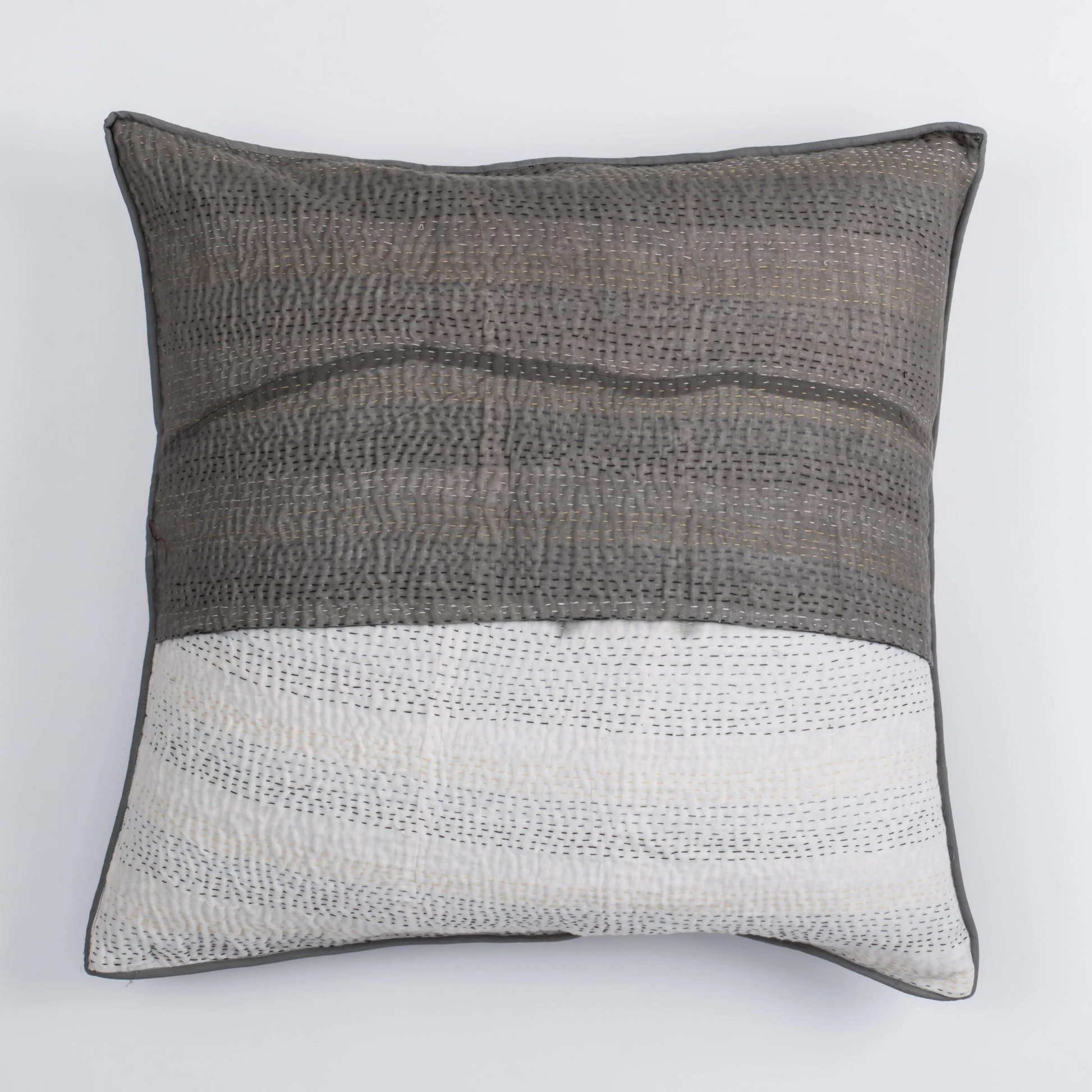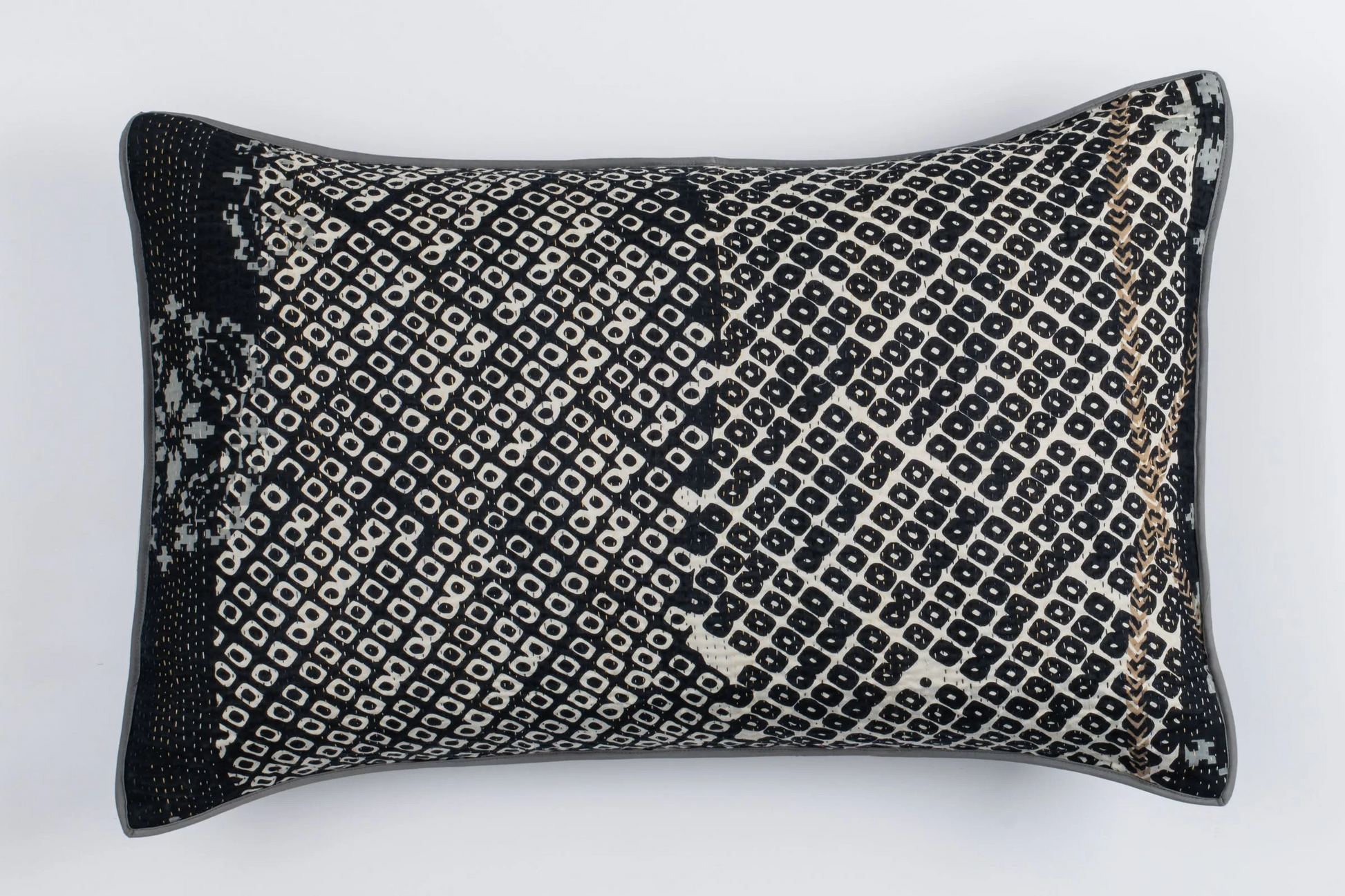 Kimono Cotton Kantha Pillow Sham -Gray -