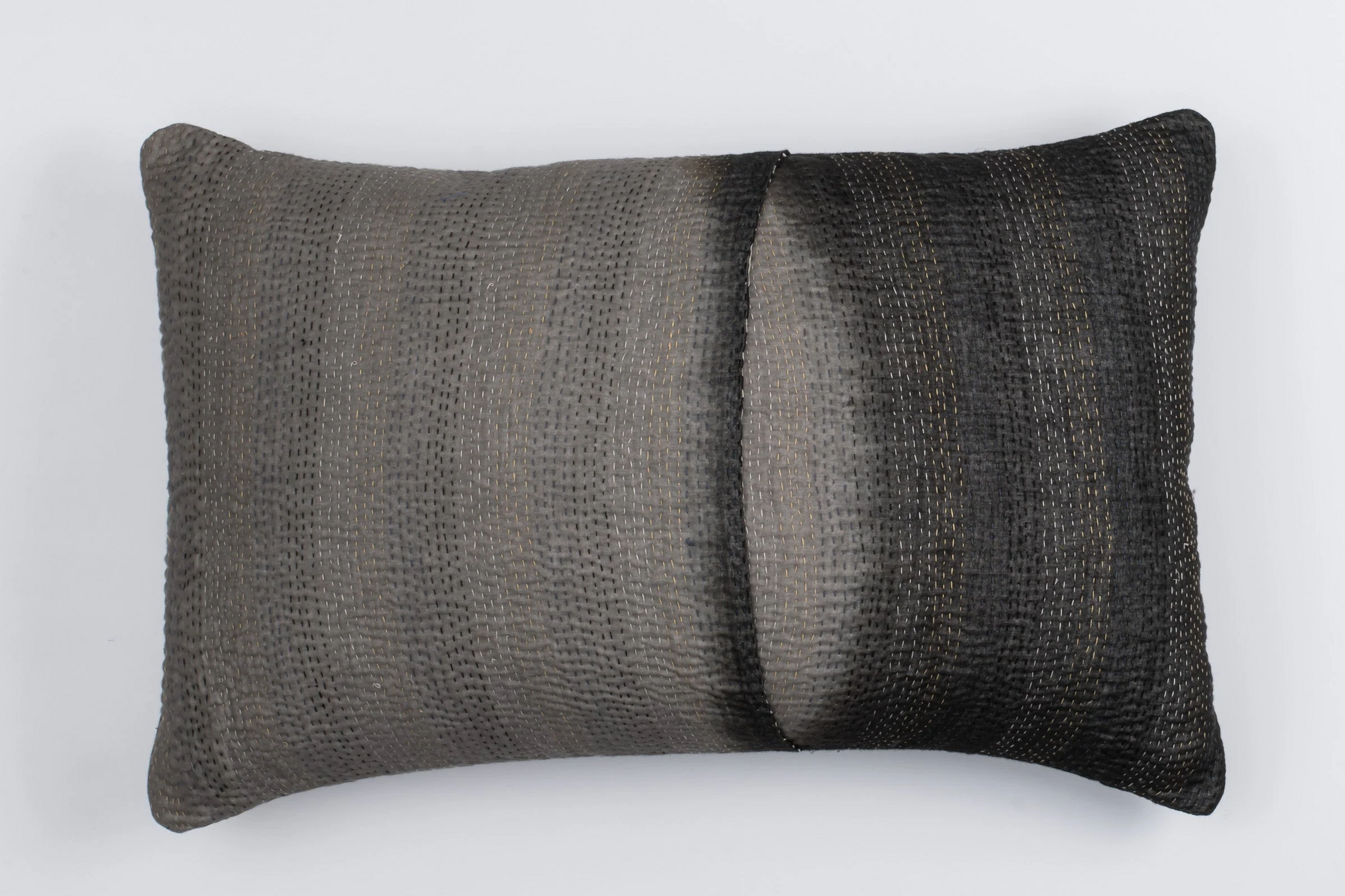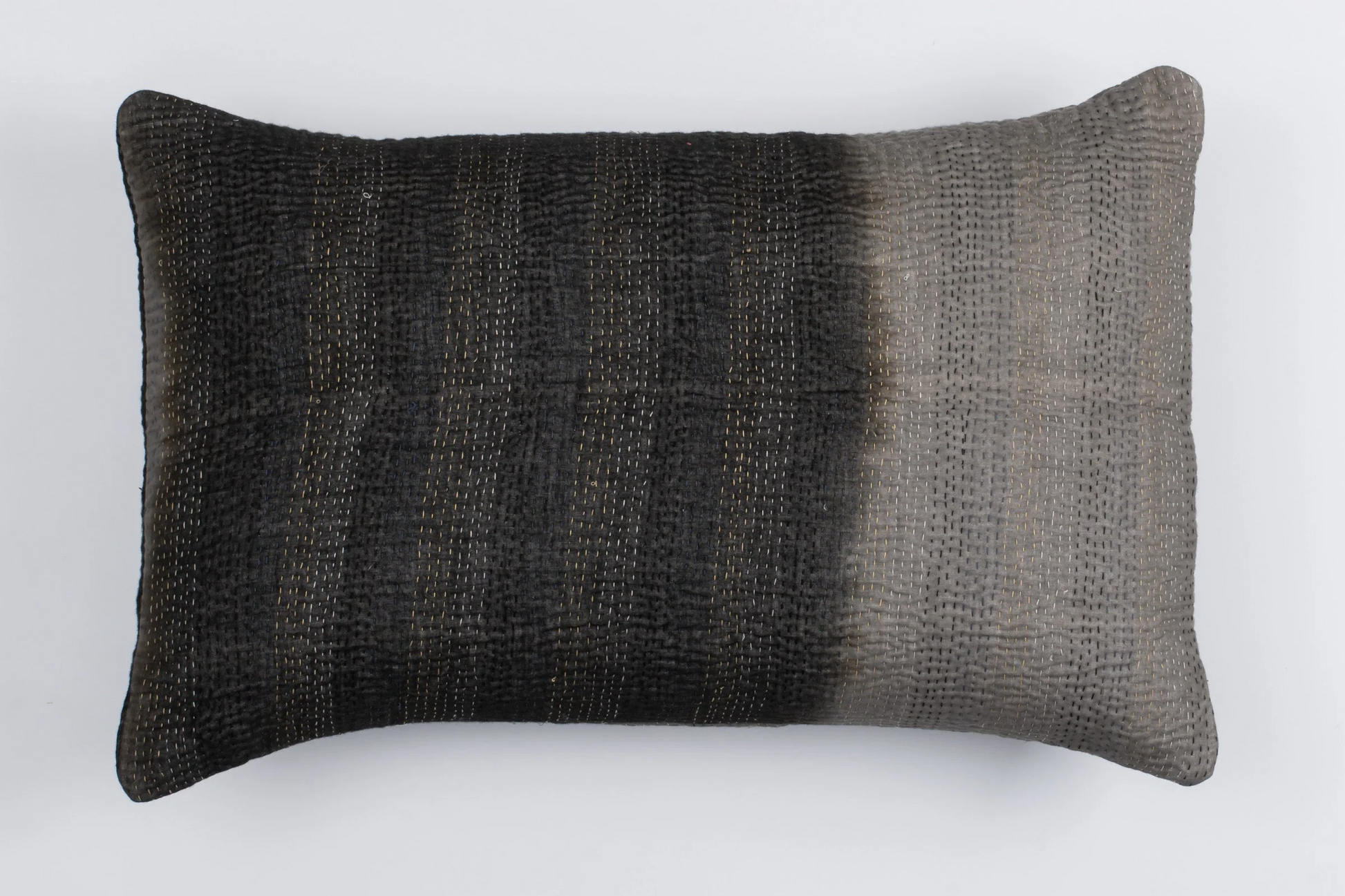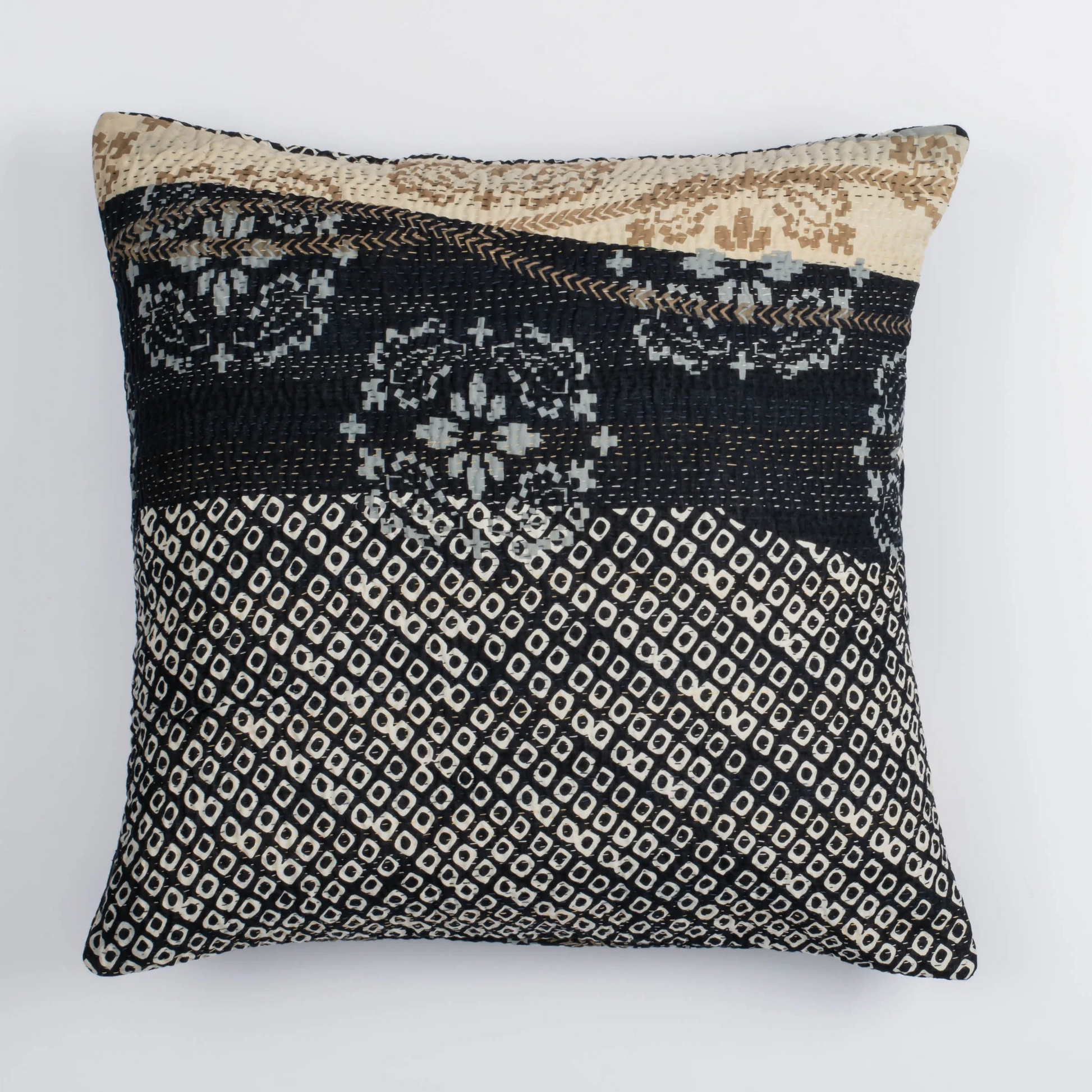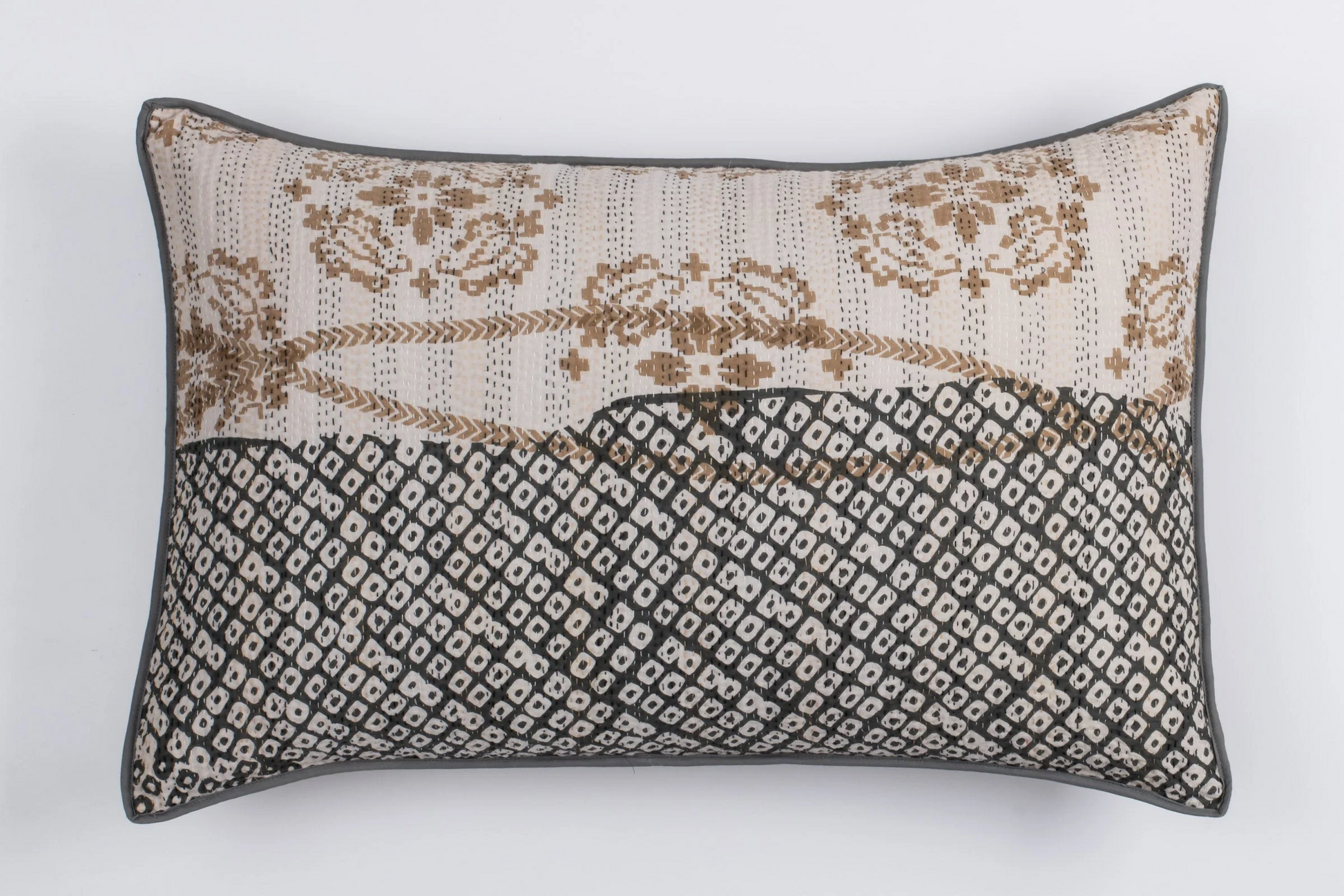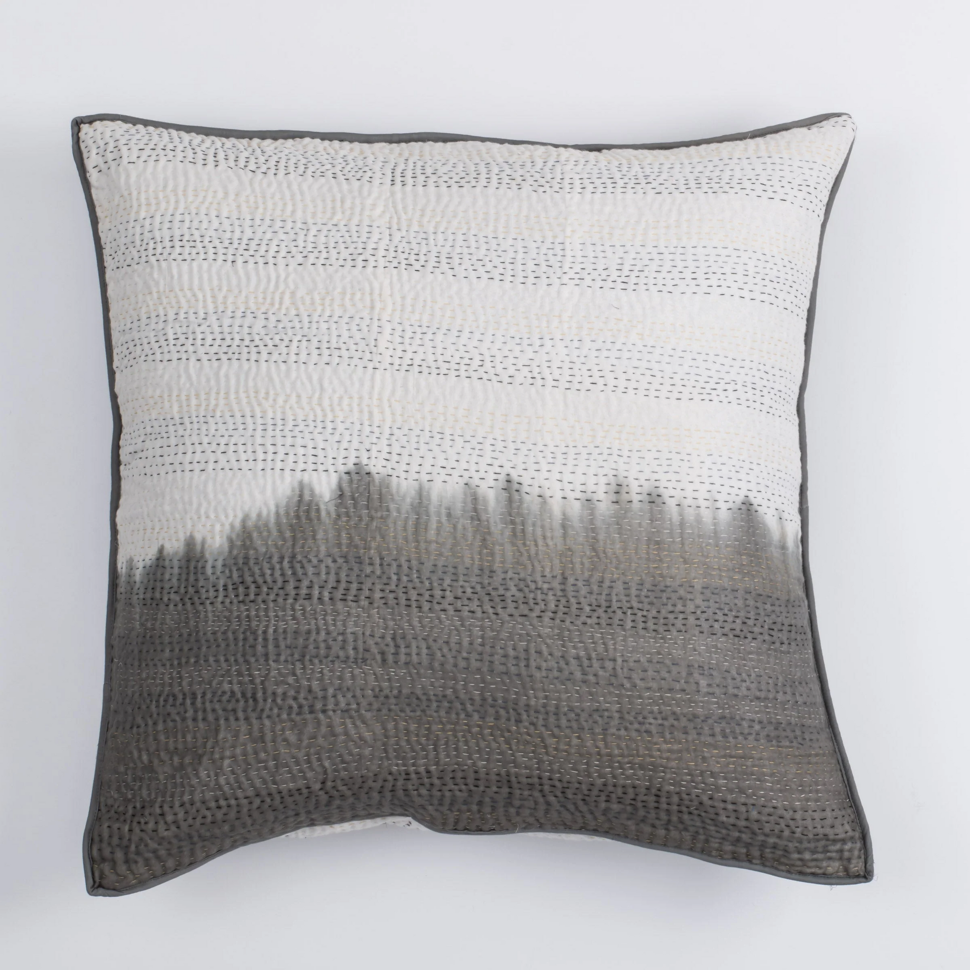 Kimono Cotton Kantha Pillow Sham -Gray -