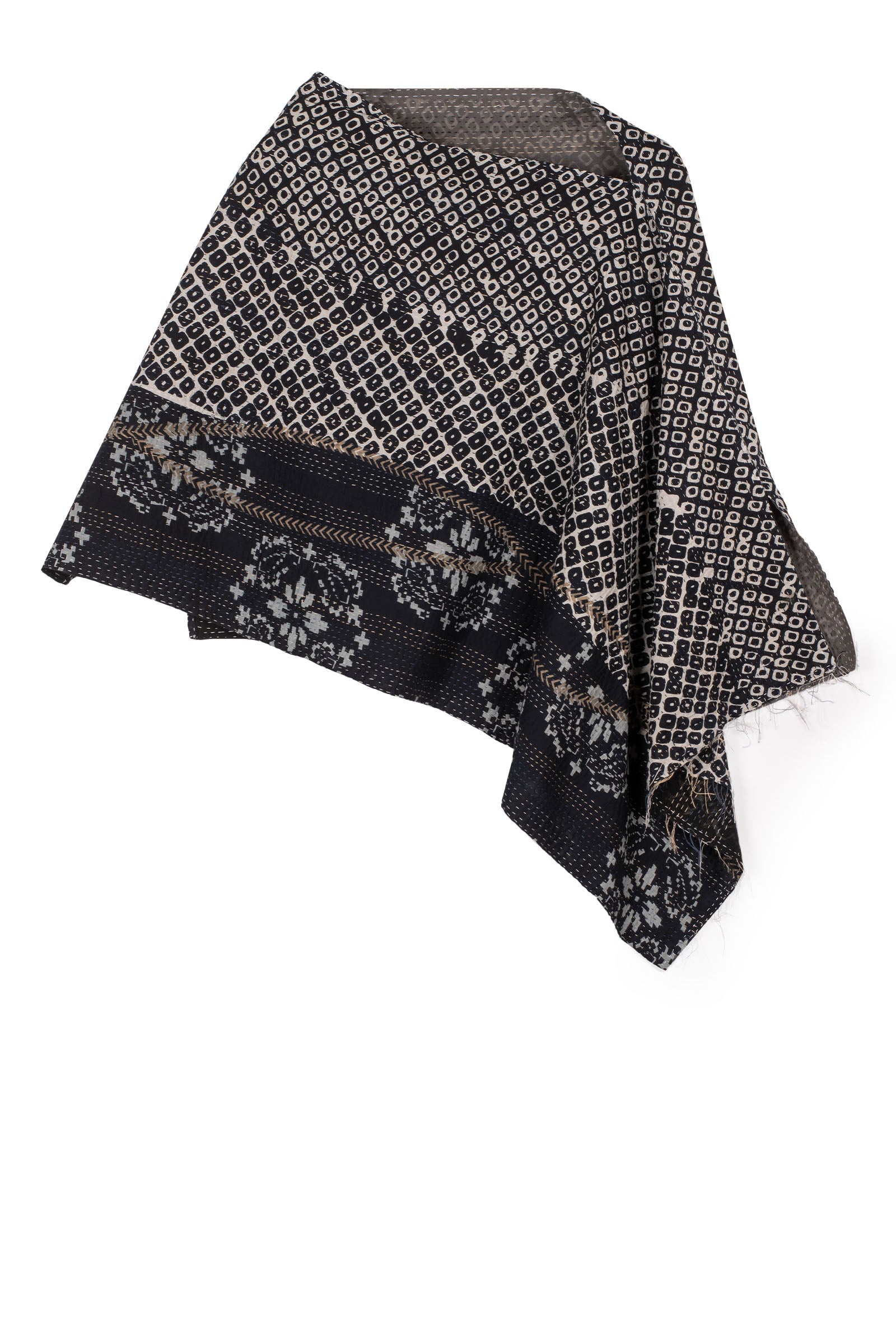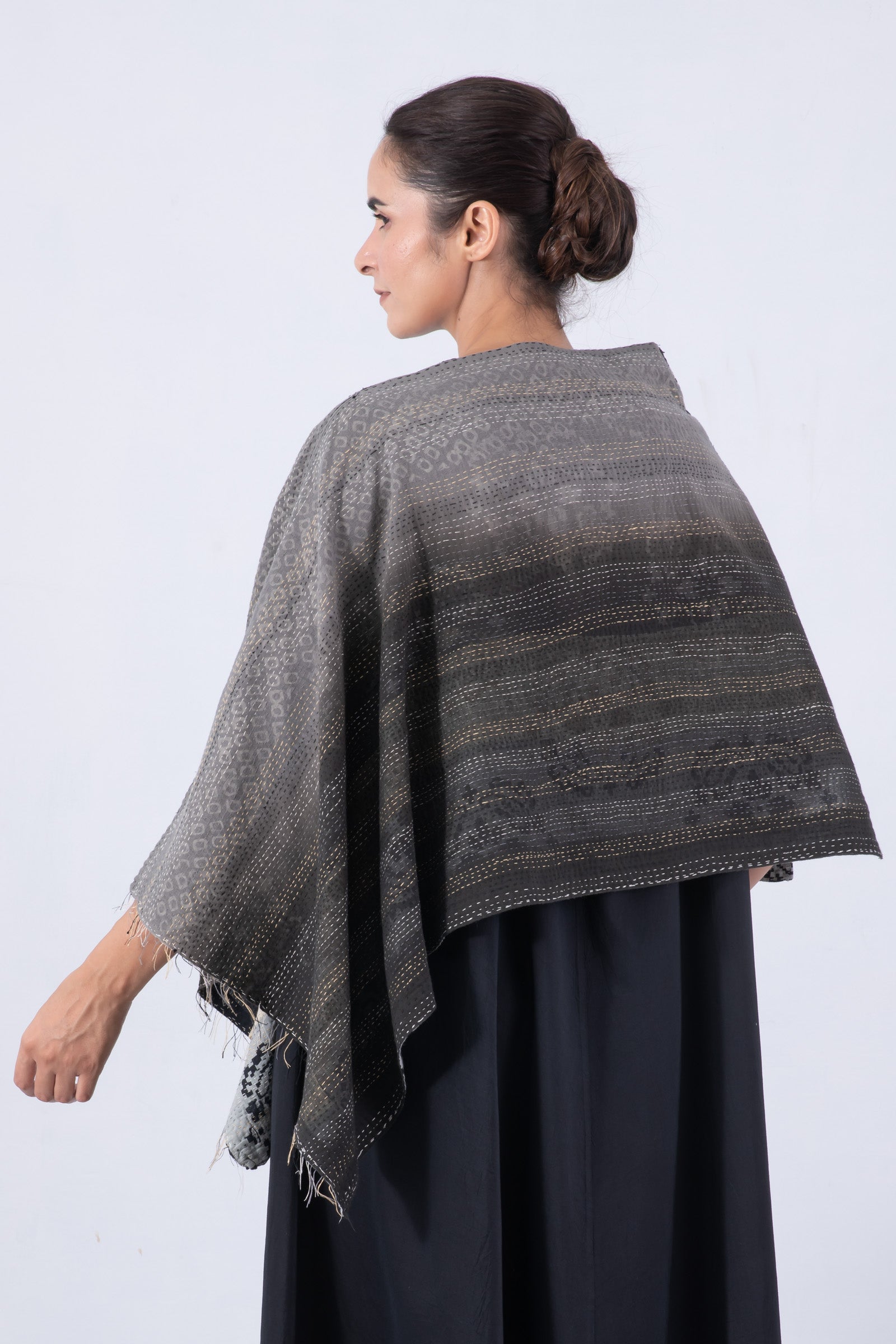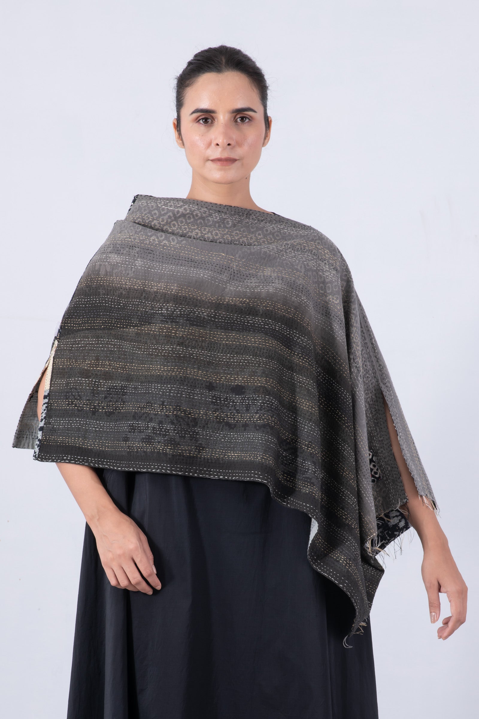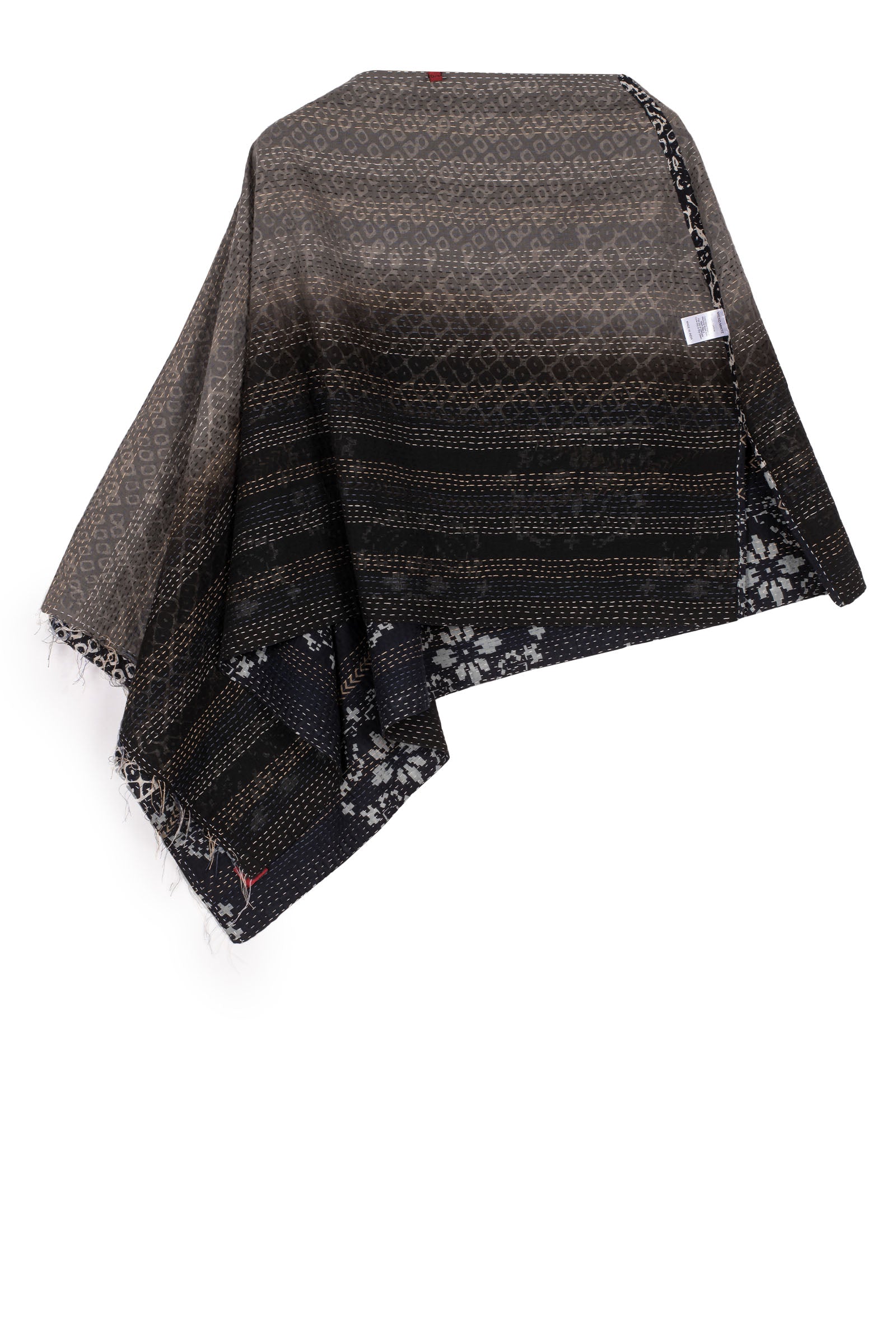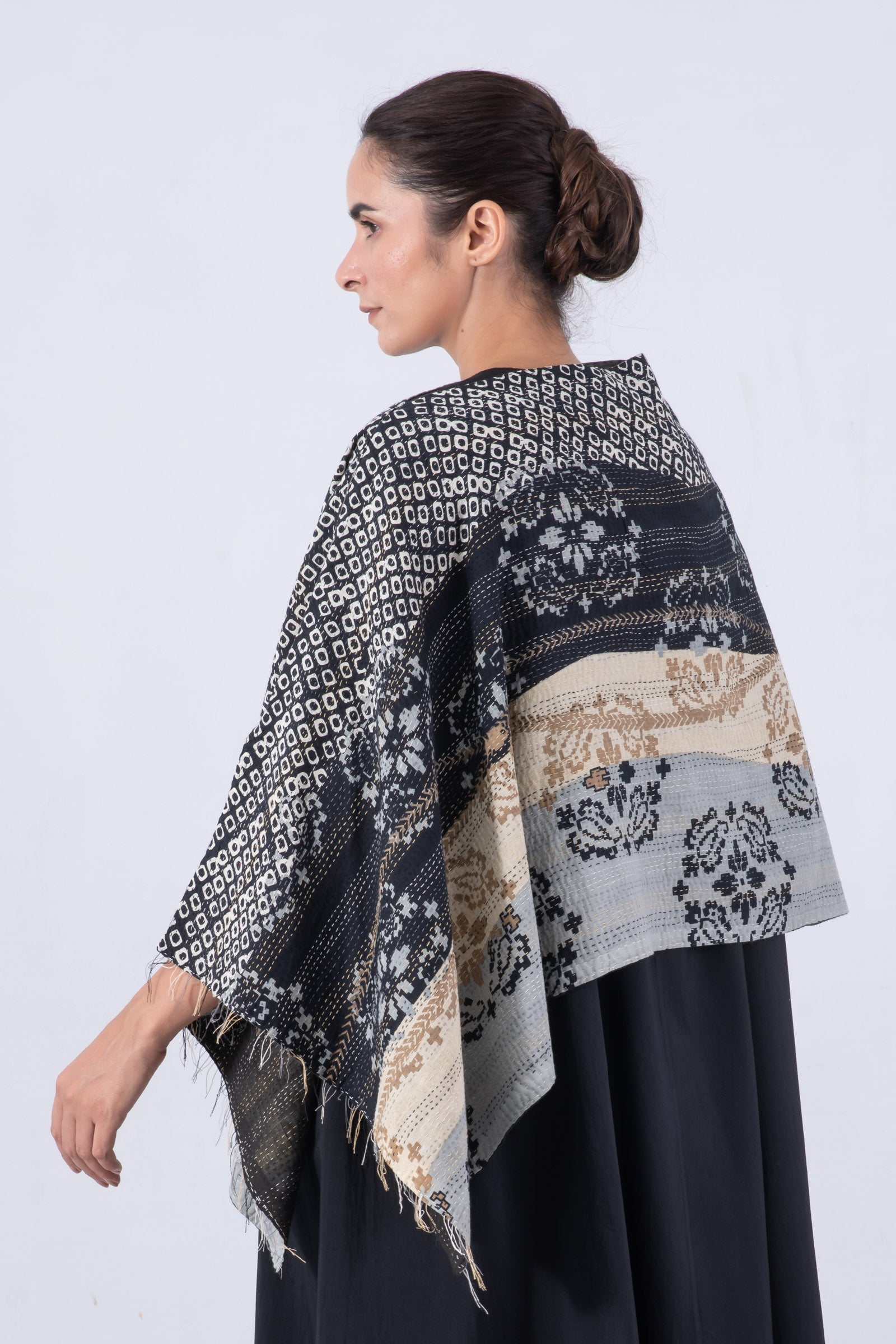 KIMONO COTTON KANTHA WIDE CAPE - kc2813-blk -