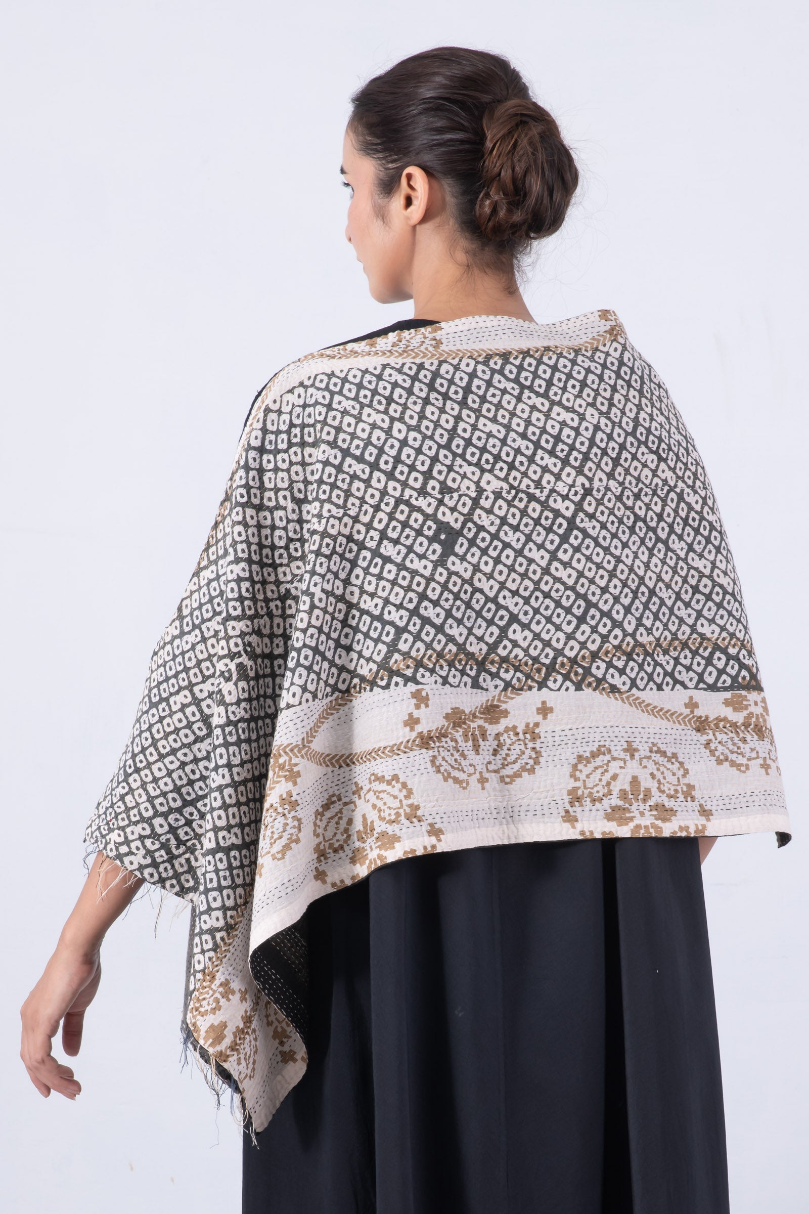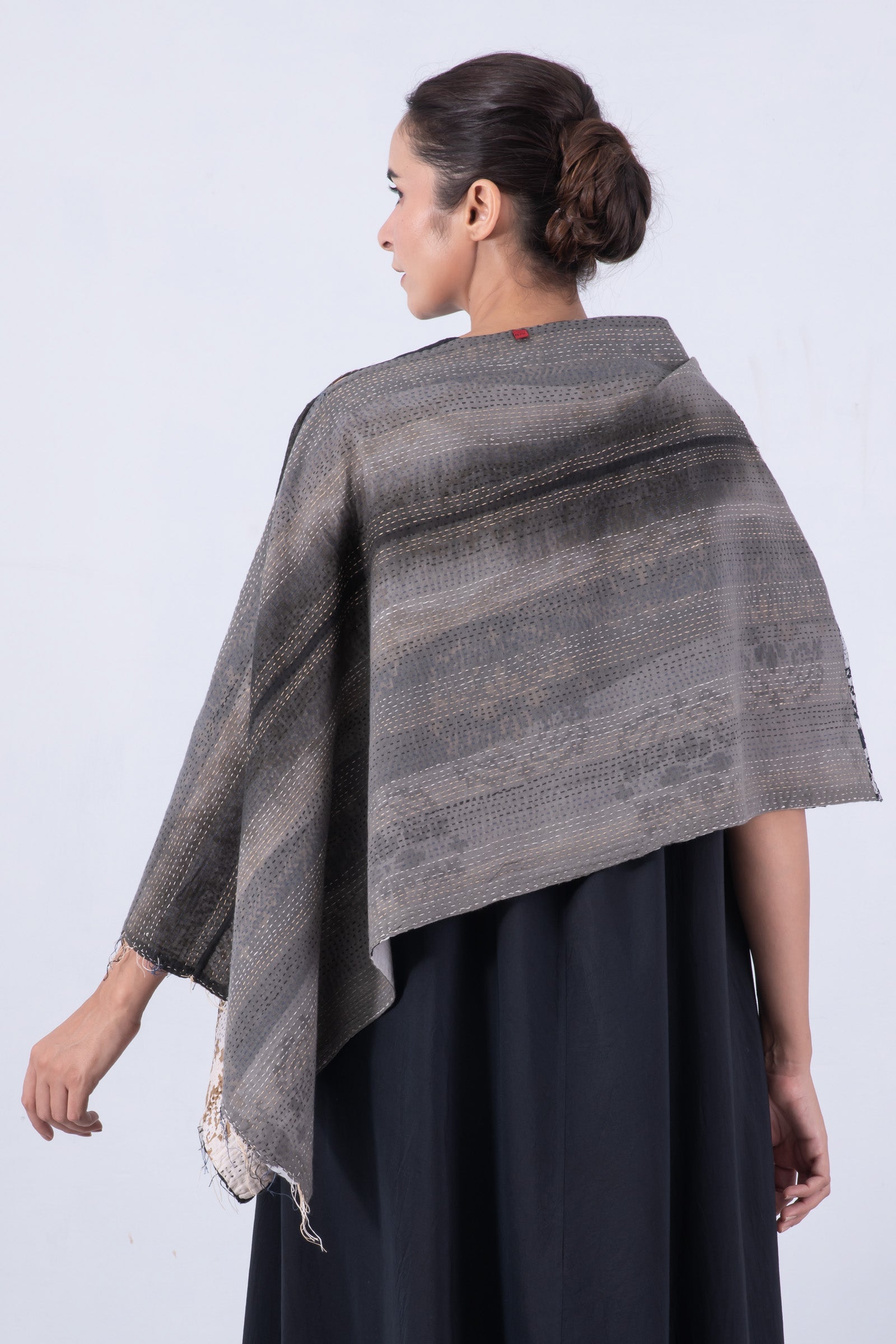KIMONO COTTON KANTHA WIDE CAPE - kc2813-gry -